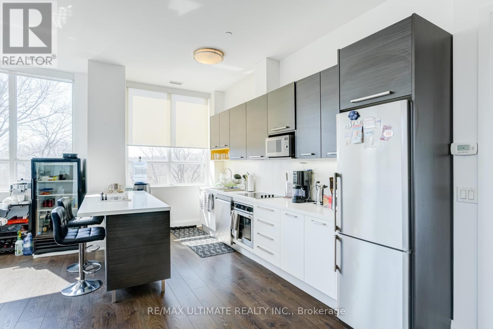 Experience exceptional waterfront living in one of the largest and most desirable layouts at Key West Condos. This sun-drenched 2-bedroom corner suite offers an impressive 1,212 square feet of thoughtfully designed interior space, complemented by an additional 268 square feet of outdoor living across two private balconies. Bathed in natural light from expansive windows throughout, the suite showcases serene southwest views over Mimico's lush, tree-lined surroundings. The functional, open-concept layout offers no wasted space, creating an effortless flow for both everyday living and entertaining. The spacious primary retreat features a generous walk-in closet and a beautifully appointed 4-piece ensuite, while the second bedroom offers its own private 3-piece ensuite and walk-out to a west-facing balcony - ideal for guests, family, or a stylish home office. At the heart of the home, the modern kitchen is equipped with top-of-the-line stainless steel appliances, ample cabinetry, and expansive counter space, seamlessly connecting to the dining area through a convenient breakfast bar - perfect for hosting or casual meals. Set in a vibrant yet peaceful lakeside community, this location offers the best of both worlds. Enjoy effortless access to the TTC, Metro, Shoppers Drug Mart, medical clinics, banks, cafés, and an array of highly rated restaurants, all just steps from your door. For outdoor enthusiasts, the nearby waterfront, scenic trails, and parks provide a stunning natural escape right in your neighbourhood. (id:64974)