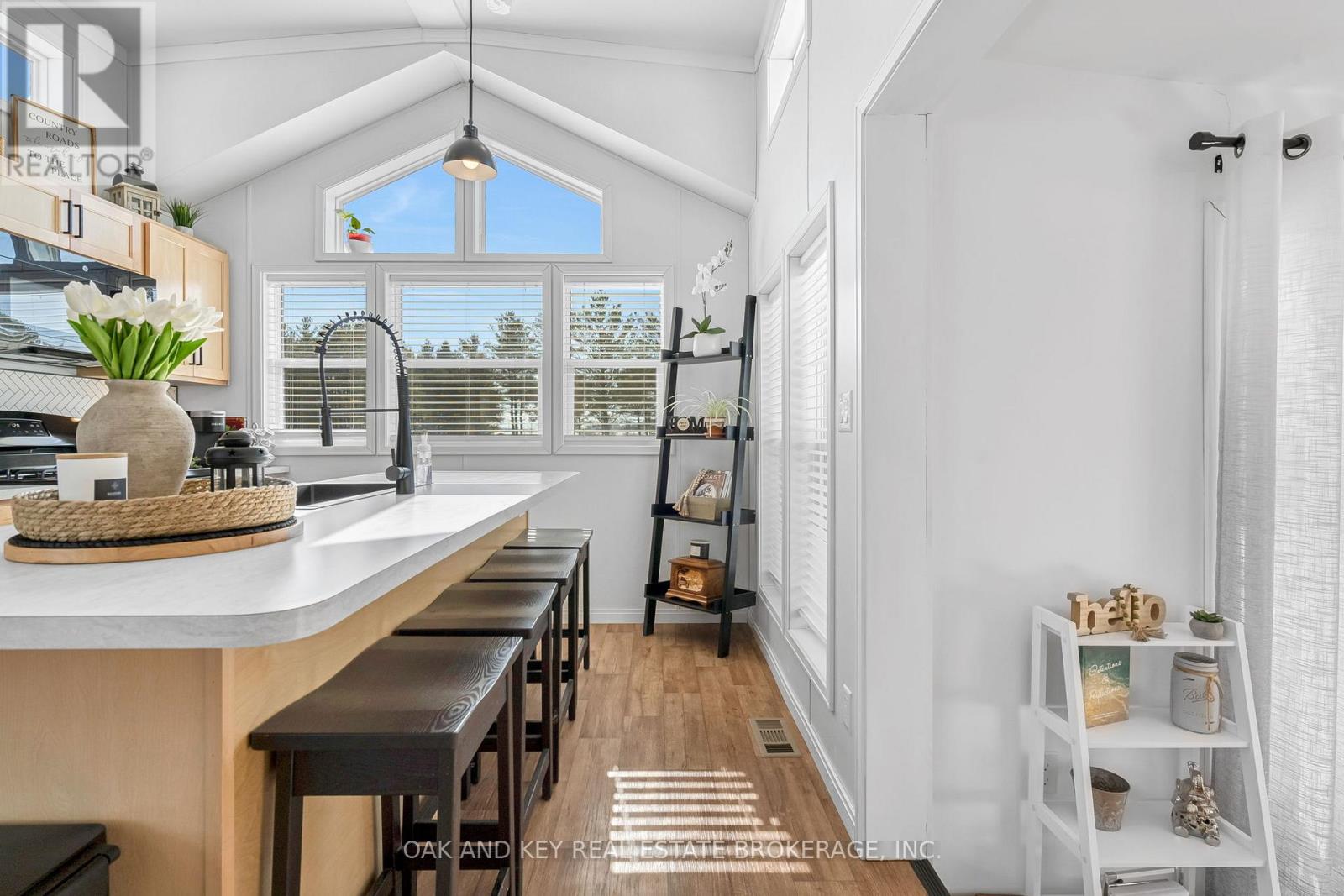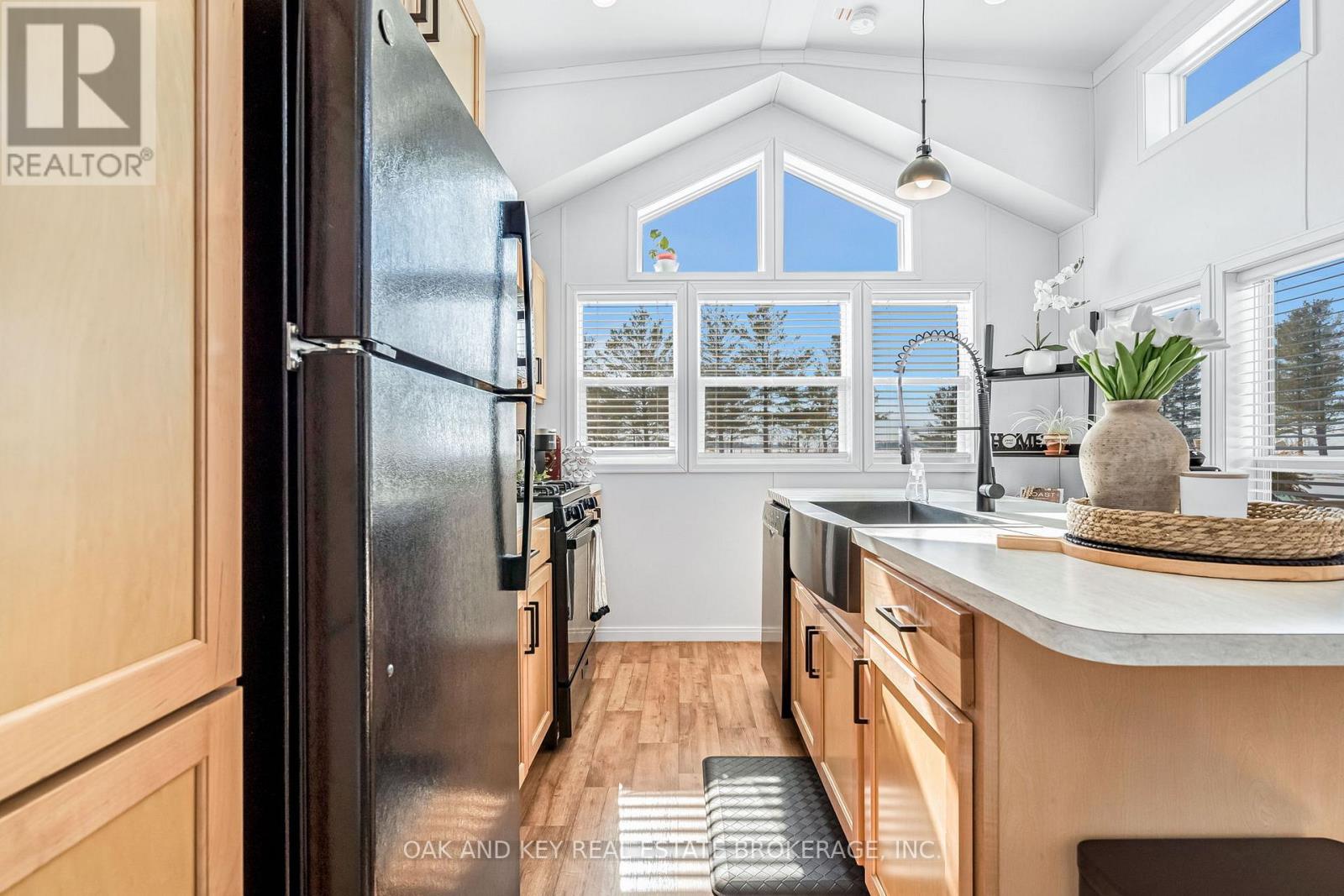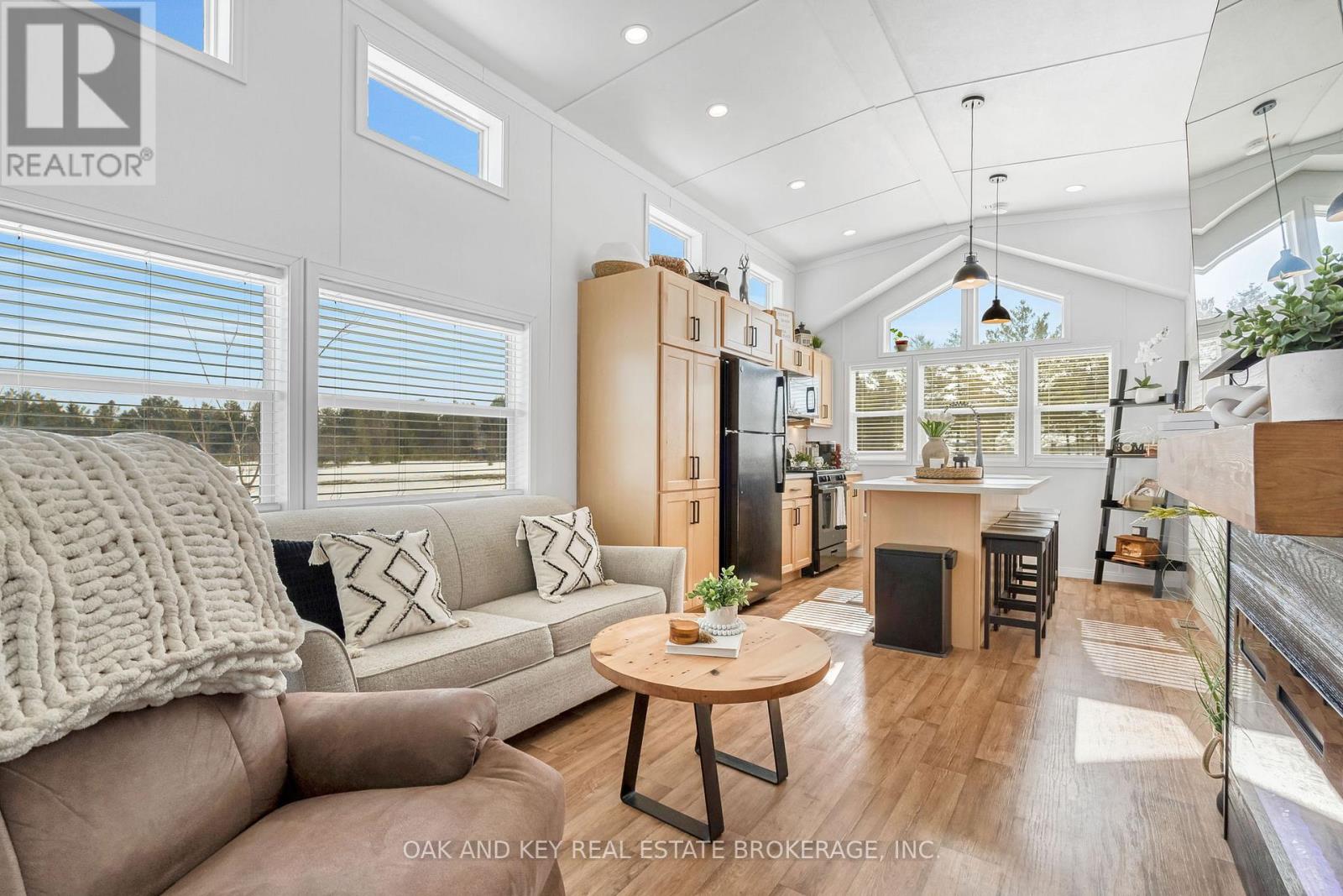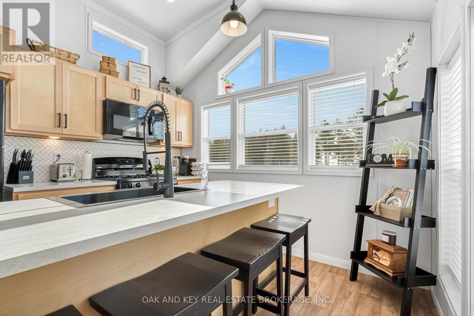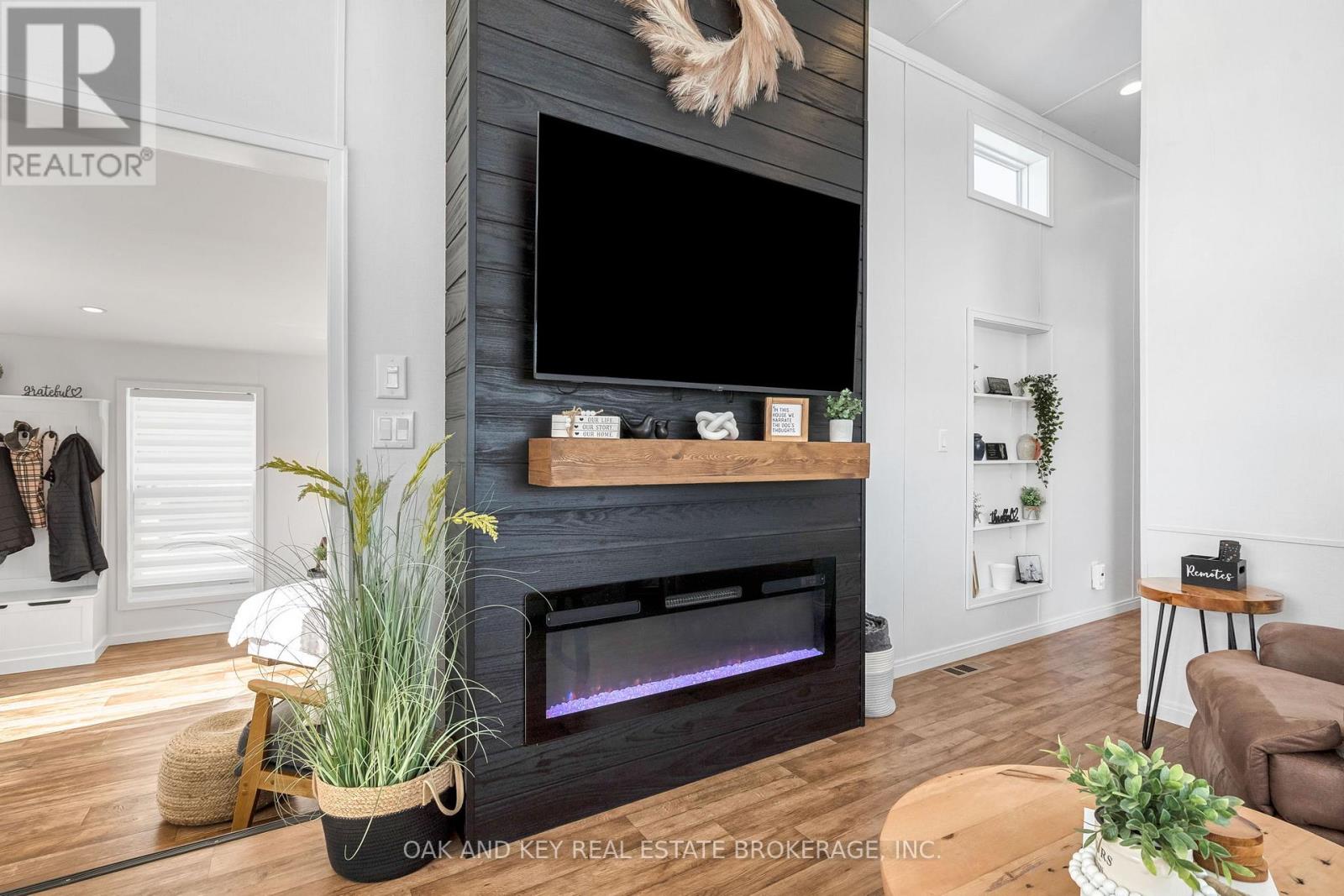 Welcome to Silver Dove Estates and this beautifully maintained 2023 Elevation Park Model home, offering 2 bedrooms, 1 full bath, a dedicated laundry room, and a spacious 12' x 30' add-on that fills the home with natural light through an abundance of windows. Perfectly positioned to capture breathtaking sunset views, this property faces peaceful meadowland protected by the Lower Thames Valley Conservation Authority-ensuring your scenic outlook and privacy remain untouched. Designed for comfortable four-season living, this home is an excellent option for those looking to downsize, anyone wanting the feel of cottage living or snowbirds seeking a low-maintenance retreat all at a remarkably affordable price. Outdoor living is just as impressive, featuring a 12' x 12' stamped concrete fire pit patio (2025) used year round for cozy evenings under the stars, plus an additional 10' x 12' stamped concrete pad in front of the shed (2025). The 10' x 20' insulated workshop (built summer 2024) is equipped with hydro-ideal for hobbies, storage, or projects year-round. This property also comes fully equipped with a generator, surveillance cameras, and even a 2008 Club Car Precedent golf cart complete with a new 6" lift, new rims and tires, and a 48-volt lithium battery. Surrounded by mature trees, scenic trails, and a nearby ravine, this home offers exceptional privacy with the added reassurance that no future development will interrupt your view. Conveniently located 30 minutes to London, 25 minutes to the beach, and 10 minutes to Dutton, Silver Dove Estates blends peaceful country living with easy access to amenities. Residents enjoy a swimming pool (2014), Rec Hall (open May 1-Oct 31), a picturesque pond (2021), vintage mini golf, shuffleboard, horseshoe pits, and natural hiking trails-making this an ideal retreat for relaxation, recreation, and connection with nature all year long. Land lease fees $634.85 includes property taxes and water. Seller can accommodate a quick close. (id:64974)