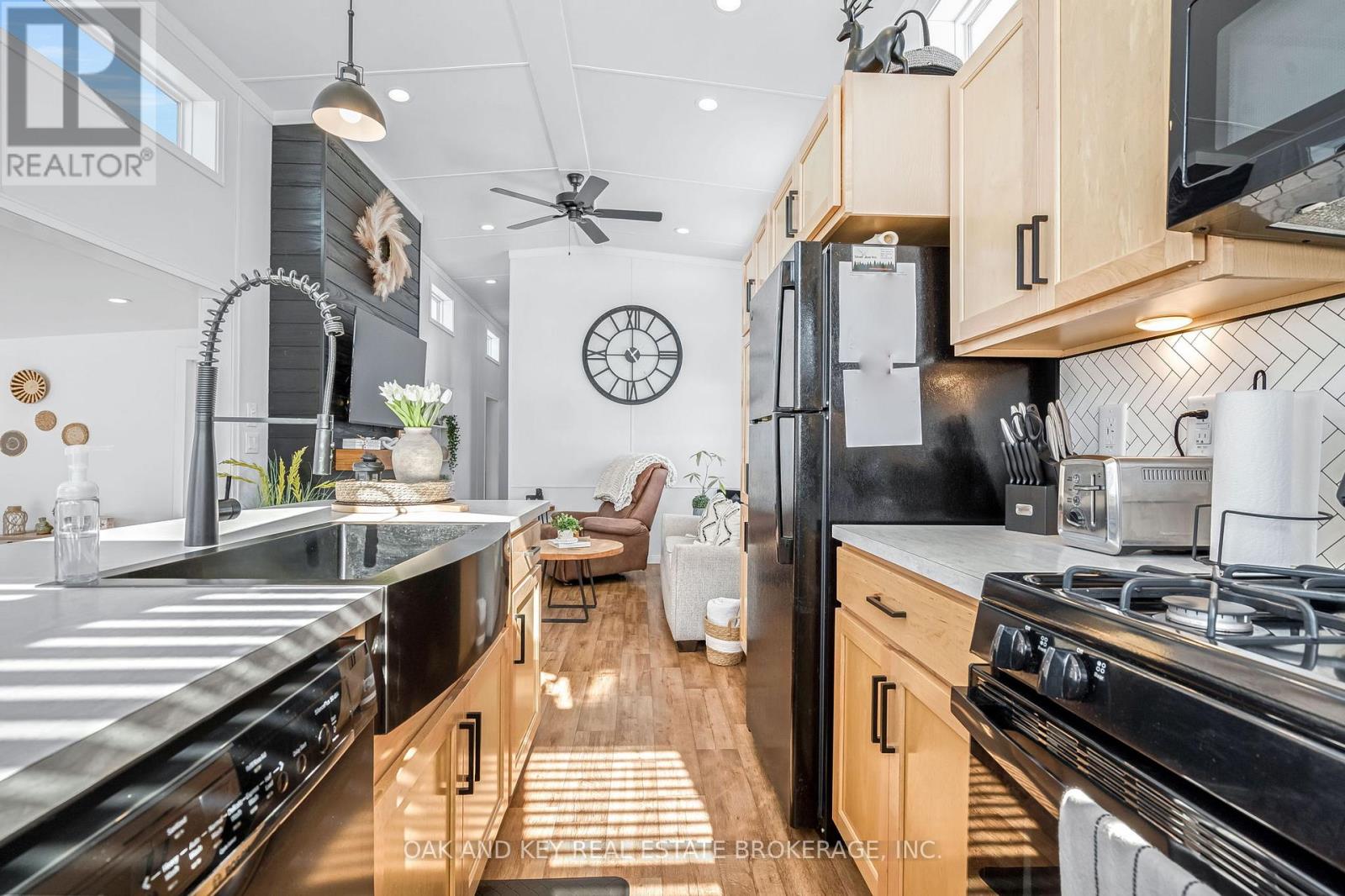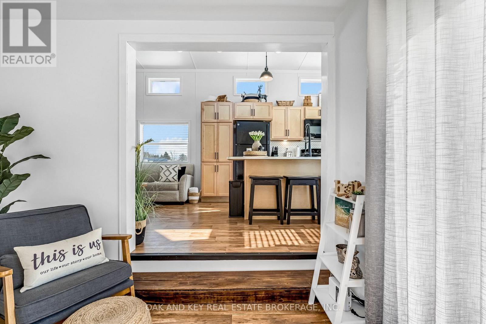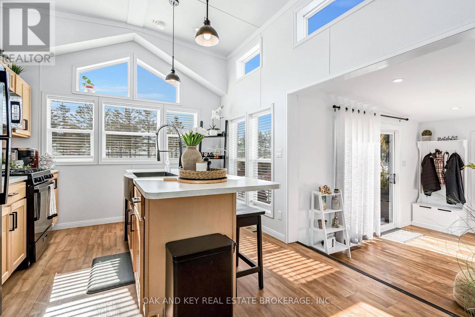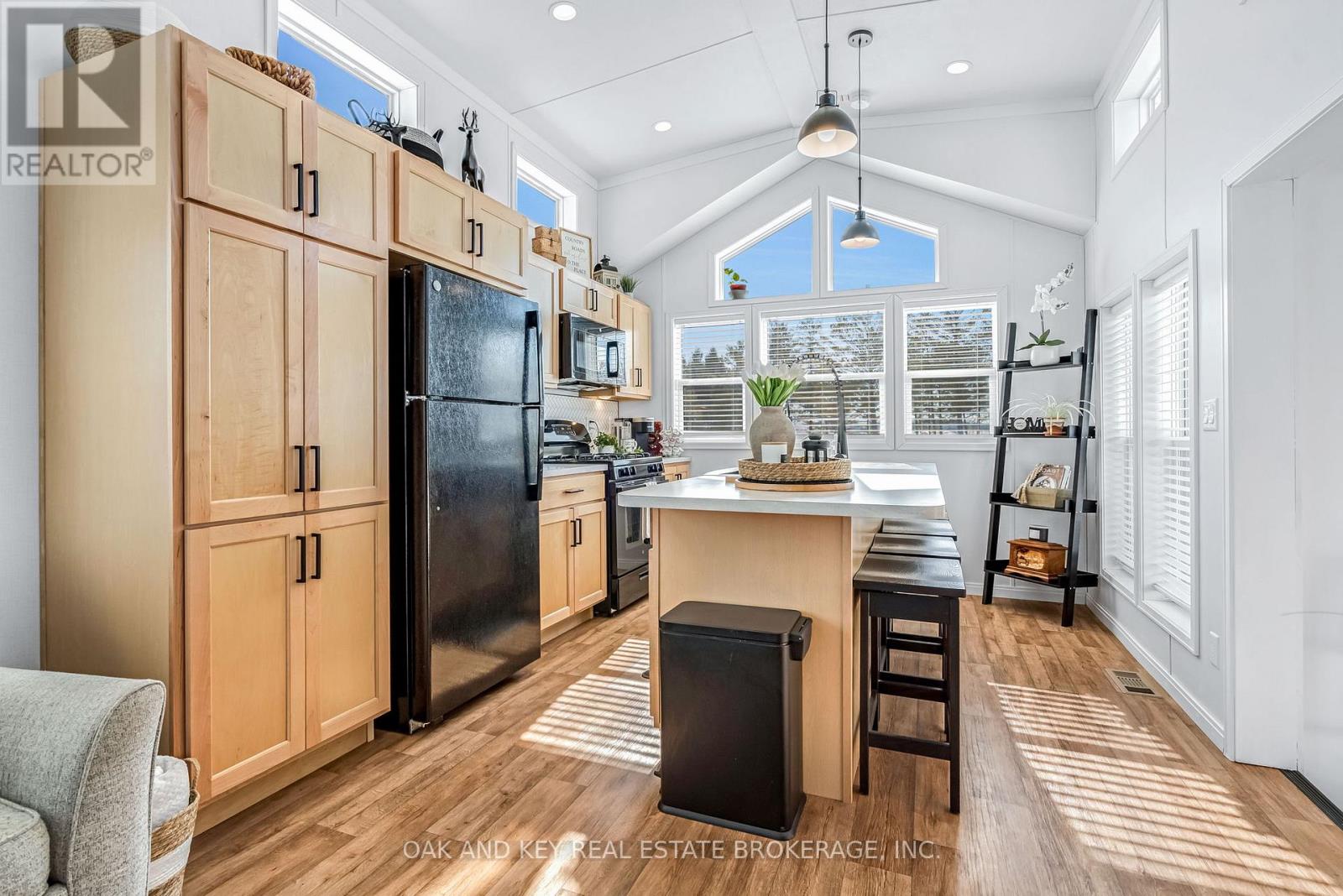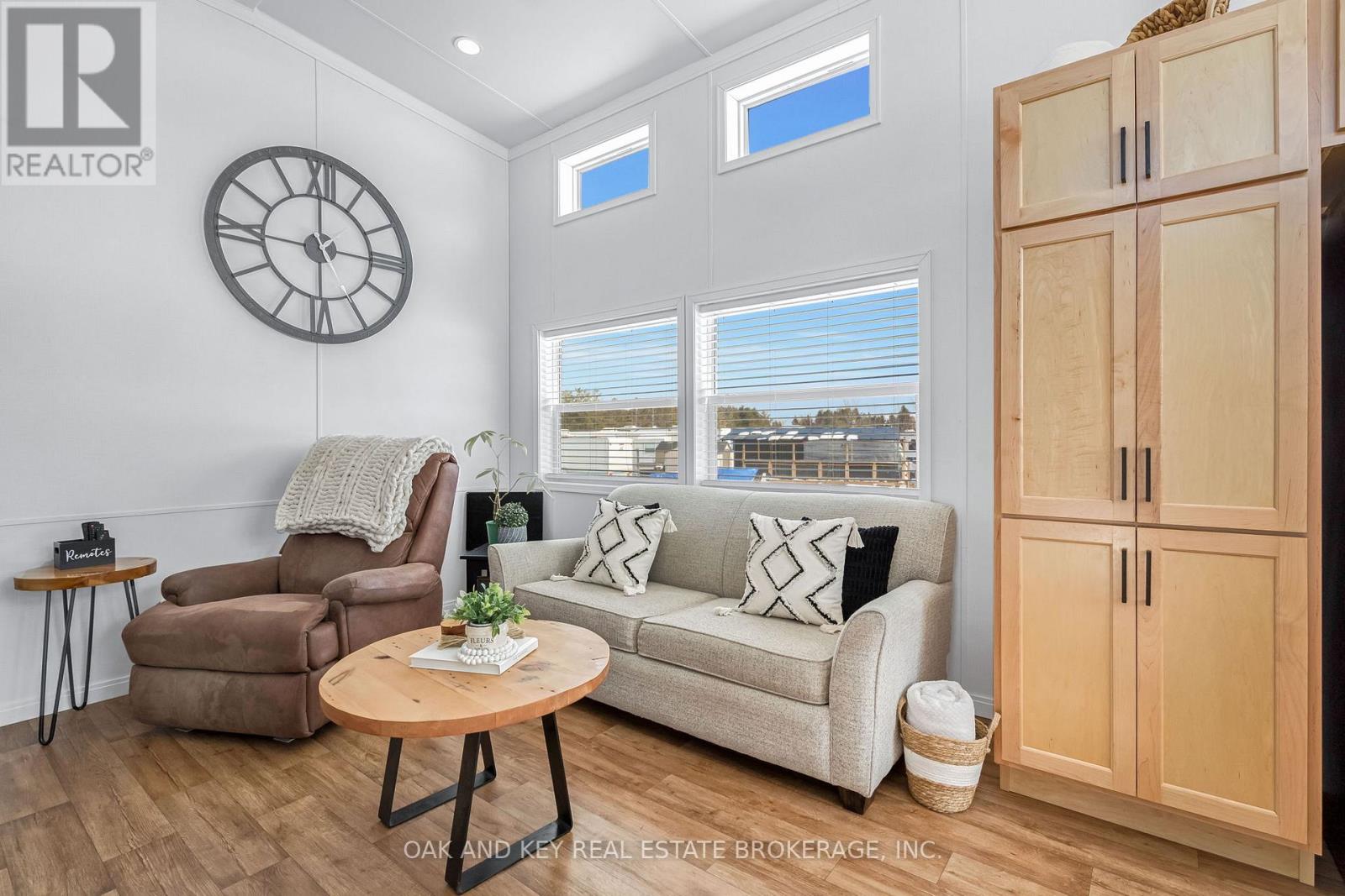 Welcome to Silver Dove Estates and this beautifully maintained 2023 Elevation Park Model home, offering 2 bedrooms, 1 full bath, a dedicated laundry room, and a spacious 12' x 30' add-on that fills the home with natural light through an abundance of windows. Perfectly positioned to capture breathtaking sunset views, this property faces peaceful meadowland protected by the Lower Thames Valley Conservation Authority-ensuring your scenic outlook and privacy remain untouched. Designed for comfortable four-season living, this home is an excellent option for those looking to downsize, anyone wanting the feel of cottage living or snowbirds seeking a low-maintenance retreat all at a remarkably affordable price. Outdoor living is just as impressive, featuring a 12' x 12' stamped concrete fire pit patio (2025) used year round for cozy evenings under the stars, plus an additional 10' x 12' stamped concrete pad in front of the shed (2025). The 10' x 20' insulated workshop (built summer 2024) is equipped with hydro-ideal for hobbies, storage, or projects year-round. This property also comes fully equipped with a generator, surveillance cameras, and even a 2008 Club Car Precedent golf cart complete with a new 6" lift, new rims and tires, and a 48-volt lithium battery. Surrounded by mature trees, scenic trails, and a nearby ravine, this home offers exceptional privacy with the added reassurance that no future development will interrupt your view. Conveniently located 30 minutes to London, 25 minutes to the beach, and 10 minutes to Dutton, Silver Dove Estates blends peaceful country living with easy access to amenities. Residents enjoy a swimming pool (2014), Rec Hall (open May 1-Oct 31), a picturesque pond (2021), vintage mini golf, shuffleboard, horseshoe pits, and natural hiking trails-making this an ideal retreat for relaxation, recreation, and connection with nature all year long. Land lease fees $634.85 includes property taxes and water. Seller can accommodate a quick close. (id:64974)
