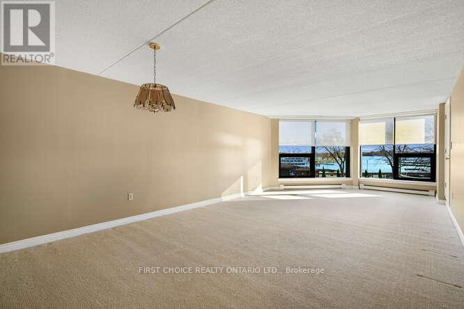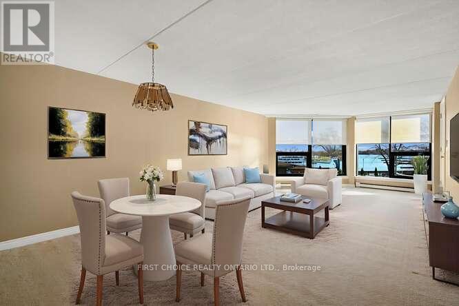 OPEN HOUSE MARCH 10TH NOON TO 2:00 PM !! AN IMPRESSIVE WATERVIEW CONDO IN THE 1000 ISLANDS ! 2 BEDS + 2 FULL BATHS + 3 PARKING + STORAGE LOCKER !! ......... AND a rare opportunity to acquire a living space of 1486 SQ FT .... AND THAT'S SERIOUS CONDO SPACE !!! The "COMMODORE" with its fresh new look, is located at 50 Market Street, AND SITED ON JUST UNDER 2 ACRES OF LAWNS, GARDENS & TREE-LINED WALKWAYS that overlook a vibrant marina .... and a gateway to an archipilego of nearly 2000 islands ! The condo suite has a Southern exposure benefit that also includes your pvt "open" balcony" with access from both the living room & bedroom #2 and offering you pvt space for morning conversations and glorious evening sunsets. Special mentions? NEW WINDOWS (2025) that just flood the condo with natural light, are bright, quiet and energy efficient. An updated modern kitchen (maple finish) with custom sideboard, lots of prep space, & quartz counter tops. 7 appliances (Bosch B-IN dishwasher 2024), in-suite laundry conveniently located off the kitchen, deep closets, custom blinds and more ! It's premier location means you are close to shops & galleries, parks, curling rink, skating & rec centre, golf courses, pubs, eateries & bakeries, & the Shoreline Casino ! Whether you're looking for a year-round home or a retreat, this condo offers it all ! Occupancy ? Immediate or flex occupancy. The "Commodore" is a "PET FRIENDLY" building too. AMENITIES: Party Rm/ Lounge (w/ fireplace & billiards table), fitness Rm w/ shower area, bike storage, outdoor grill. (Current exterior photos taken summer 2024 .... AND INTERIOR PHOTOS INCLUDE SOME WITH VIRTUAL STAGING). A Status Certificate has been requested. Sellers will welcome reasonable Offers. Don't be disappointed ... schedule your viewing today. (id:64974)