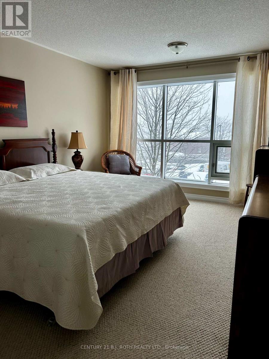 Looking for the easy life? Well, here it is.....here's your chance to consider downsizing to a condo. The building features a secure entrance, elevator & a beautiful large gazebo with a community BBQ & gardens. Only 37 units in this 3 storey building, with bonus large party room complete with kitchen, and library. This lovely 895 sq ft unit with 2 bedrooms, 2 baths, has hardwood & ceramic floors, and carpet in the bedrooms. Freshly painted & beautifully maintained throughout. It is a bright unit with large windows bringing in lots of light. Good size kitchen with plenty of cupboards, and counterspace. Central living room and bedrooms are on either side along with bathrooms. The primary bedroom is spacious with a large walk in closet & a convenient 3 piece bathroom with easy walk-in shower. xLarge solarium windows overlooking the yard. Condo fees are $607 which includes your heat, water, building insurance, maintenance, parking, snow & grass removal. Conveniently located in the South/West of Barrie close to area amenities, including Holly Rec Center. This is the easy living you've been looking for, come before its gone! Vacant easy to show !!!!. Offers accepted anytime. (id:64974)