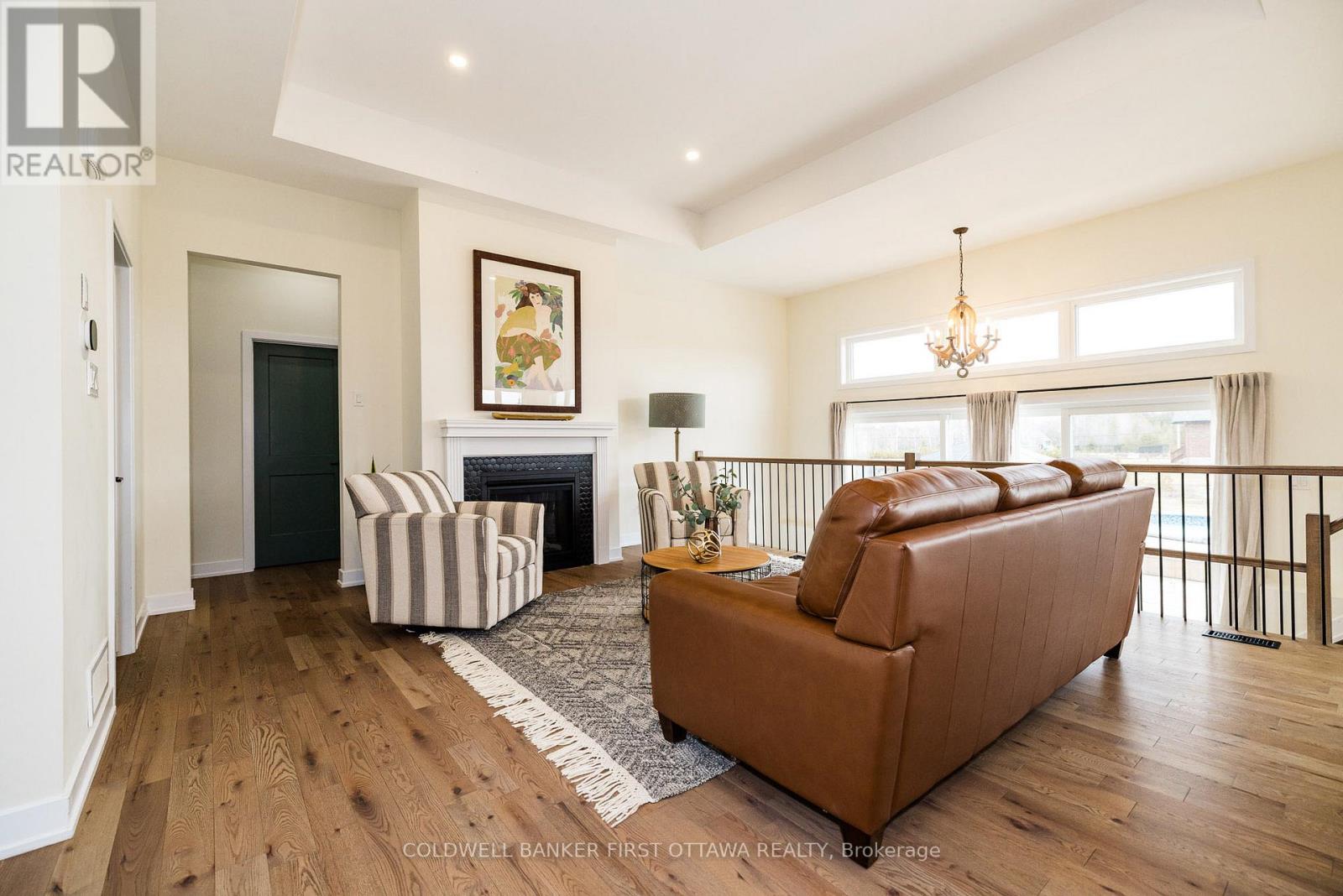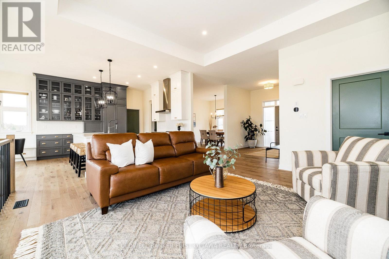 This stunning Briard model by Mackie Homes sits on the largest lot in the development, offering a perfect blend of space, style, and comfort. With 3 bedrooms and 3 bathrooms, this contemporary bungalow is designed for modern family living.Step inside to bright, open, and airy living spaces featuring a living room with a gas fireplace, a formal dining room, and a gourmet kitchen with high-end JennAir appliances, quartz countertops, ample storage, and a centre island. Adjacent, enjoy the breakfast room and great room, perfect for entertaining.The primary suite is a true retreat, with a walk-in closet and a spa-inspired 5-piece ensuite, including a freestanding soaker tub and a 60" double-sided glass shower with a quartz and tiled base. Two additional bedrooms feature walk-in closets and share a Jack-and-Jill bathroom.Functionality meets style with a powder room, laundry room, and mudroom with built-in storage, coat rack, and bench. The partially finished lower level offers a completed rec room. The unfinished portion includes a rough-in for a bathroom, a framed and drywalled bedroom, a large unfinished area, and direct garage access, ideal for an in-law suite, teen living area, or business space.Step outside to a private rear yard with a deck, patio, and an above-ground pool with an ionized system, perfect for summer relaxation. Many thoughtful upgrades enhance this home, including additional pot lights, extra outlets, a gas line for BBQ, upgraded farmhouse sinks, and high-end faucets throughout.This turnkey bungalow combines contemporary design, premium finishes, and an unmatched lot size, a rare opportunity for those seeking space, style, and comfort in one remarkable home. (id:64974)