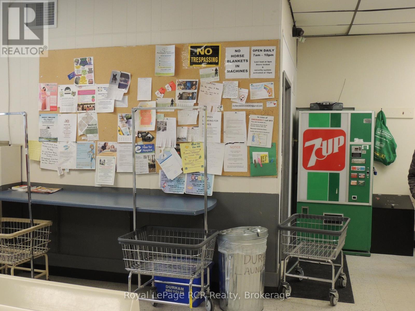 Commercial property on prominent corner on Highway 6 in Durham, ON. Zoned C1 with permitted uses including professional office, tavern, retail, medical clinic and more. There is lots of paved parking with access on Saddler St E. The building is approximately 1500 square feet and is heated by a heat pump inverter ducted heating/cooling system with wi-fi thermostat for remote monitoring. Easily accessible for clientele with ground level entry at the front and back of the building. Located across the road from a busy gas station and restaurant, there are many business ventures that would be successful at this location. The building is currently used as a laundromat, and the seller would consider including the business with the sale of the property. (id:64974)