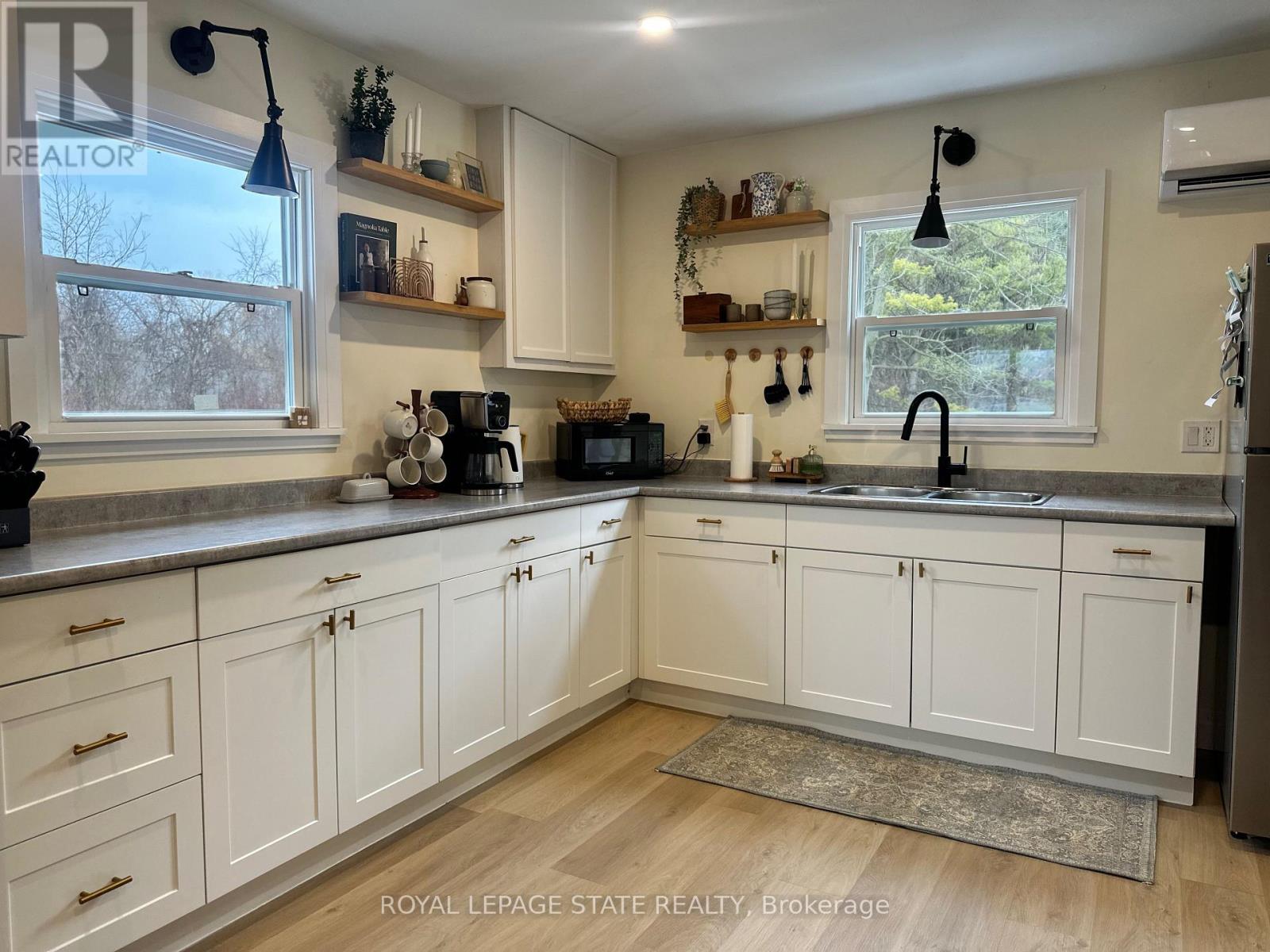 Beautifully renovated home on 5.6 private acres. Located minutes to Dunnville's shops, restaurants and amenities you can enjoy peaceful rural living without sacrificing convenience. This charming 3 bed, 2 bath home offers a bright spacious interior with loads of updates - shingles replaced Nov 2024, vinyl replacement windows April 2024, SFT Nov 2025, carpet May 2024, interior doors and trim May 2024, siding Dec 2025, 3 exterior doors April 2024. Modern kitchen, separate dining area, wood burning fireplace insert that creates a warm and inviting space, plus large open living space is made for cozy days or large family gatherings. Bonus main floor office / den / flex space - perfect for a home based business, multi generational living or a growing family. This property also features and barn with loft, hydro and poured concrete floor and Quonset hut, hydro and concrete floor for additional storage or hobby space plus enough parking to accommodate all your toys! (id:64974)