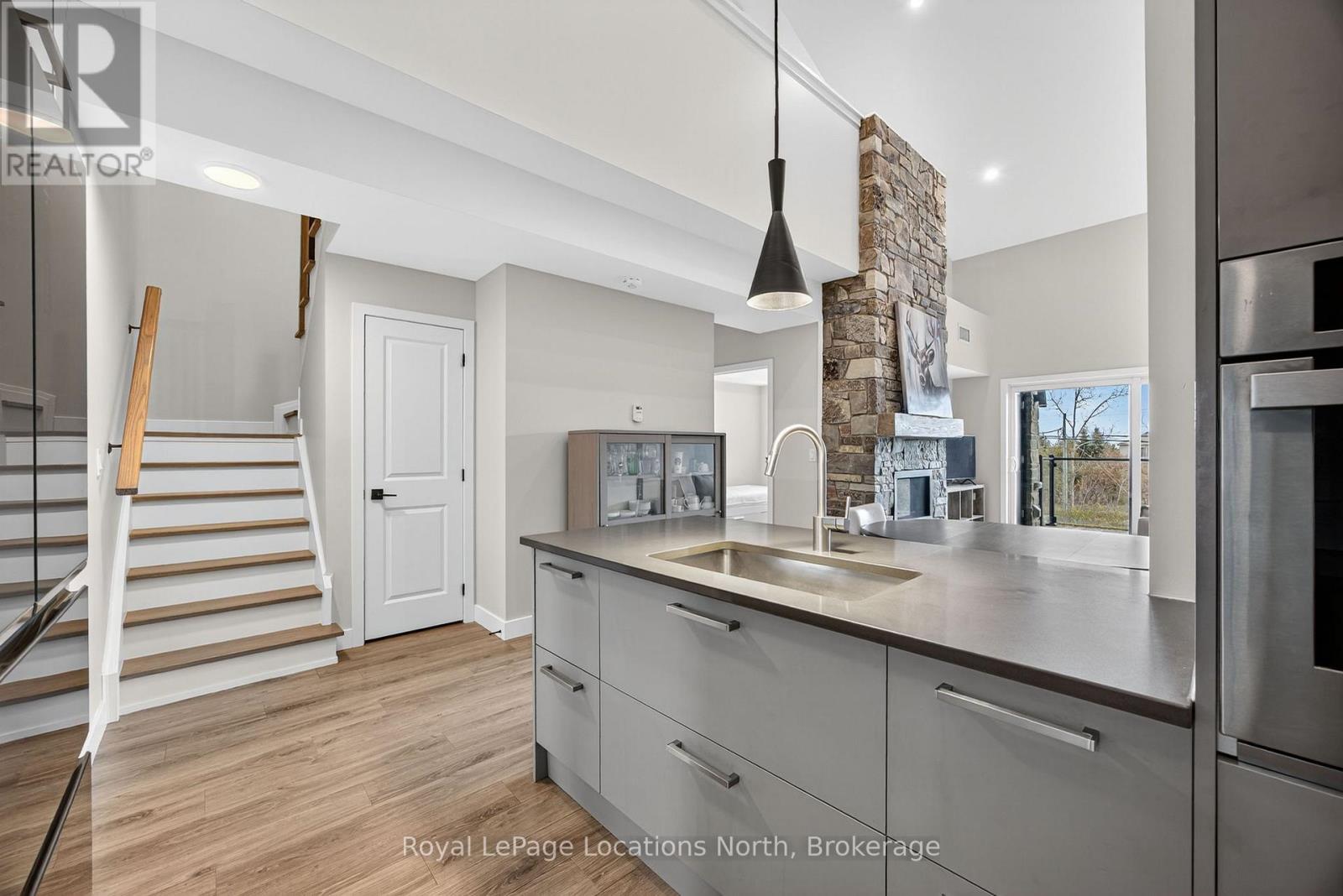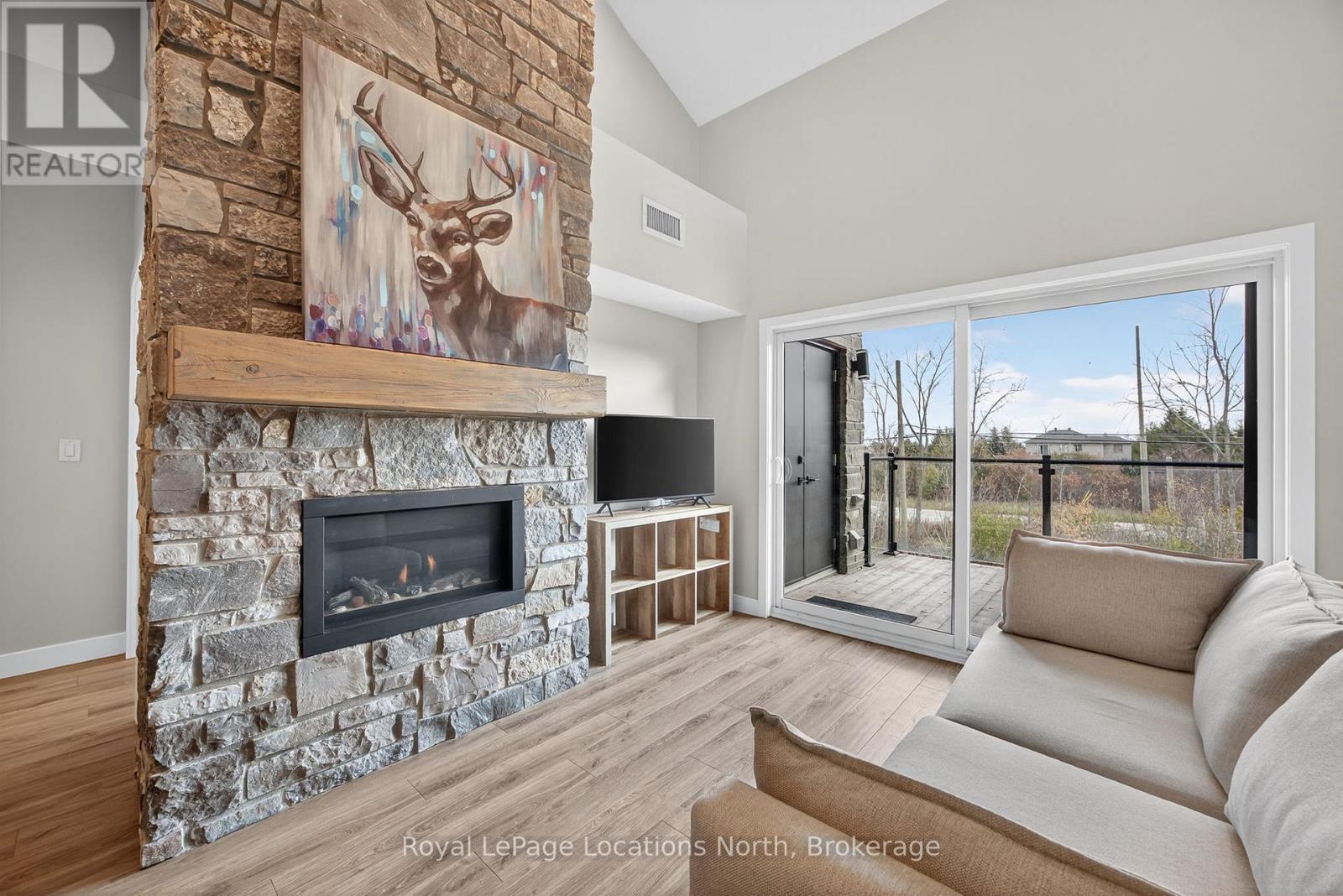 Stunning 3-bedroom, 2-bathroom two-storey loft-style condo in the highly desirable Mountain House community. This modern unit offers an open-concept layout with soaring ceilings, upgraded finishes, and a bright, spacious living area complete with a natural gas fireplace. The kitchen features contemporary cabinetry, quartz counters, stainless-steel appliances, and an ideal flow for entertaining. The loft-level primary bedroom provides excellent privacy, while two additional bedrooms on the main level offer flexibility for family, guests, or office use. Enjoy a private covered balcony with natural gas BBQ hookup, plus a convenient mud room and a laundry room. Resort-style amenities include a year-round heated outdoor pool, hot tub, well-appointed rec centre, and an indoor/outdoor fireplace lounge. Prime location just minutes to Blue Mountain Village, Collingwood, Georgian Bay, and endless trails, golf courses, restaurants, and spas. The perfect four-season home or investment opportunity in one of the area's most sought-after communities. (id:64974)