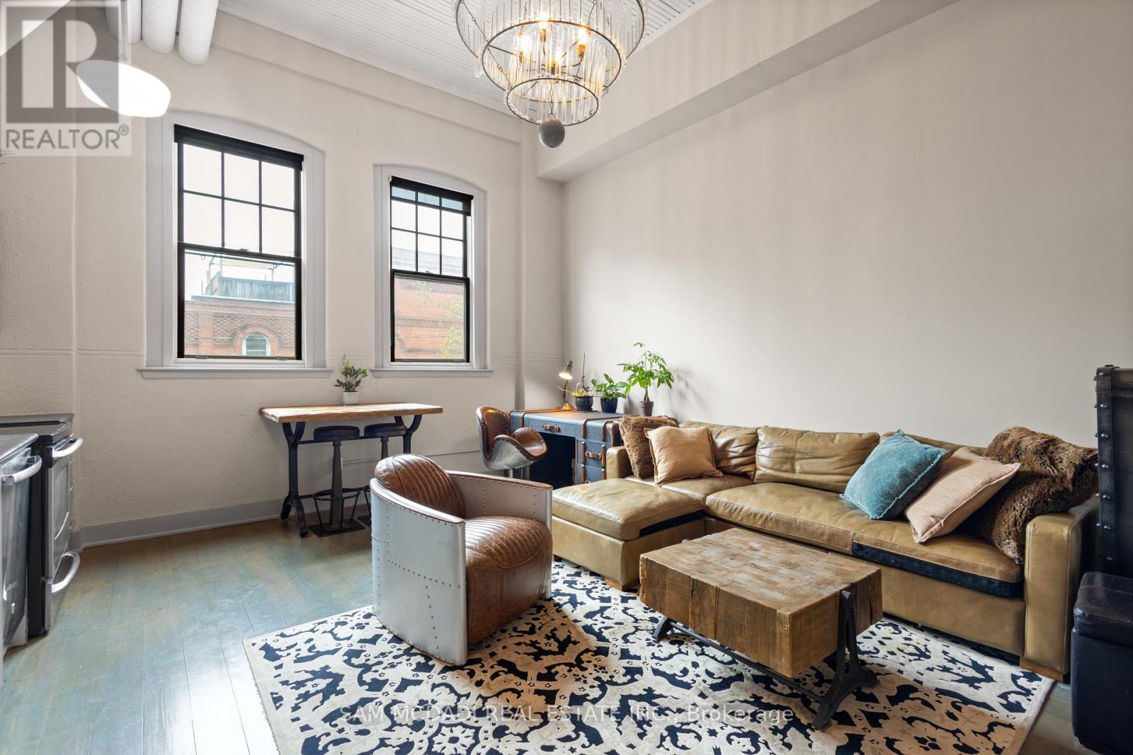 Set within Toronto's renowned Trinity Bellwood's community, Argyle Lofts is a coveted address for lovers of authentic hard loft living. Originally built in 1873 and once home to the famed Ideal Bread Company, this historic landmark was transformed in 2007, preserving its rich industrial heritage while infusing it with modern sophistication. Inside, the character takes centre stage, where soaring 13-foot exposed wood beam ceilings and exposed ductwork create an atmosphere that's raw yet refined. Warm hardwood floors ground the open-concept space, offering endless flexibility for living, dining, or working from home, all illuminated by the loft's industrial-style windows. The kitchen comes equipped with stainless steel General Electric appliances, while the in-suite laundry adds everyday convenience. Two owned lockers are located just steps away on the same floor, ensuring storage is as easy as it is ample. The current owner has also secured both a leased private parking space and a street permit, providing rare flexibility in this vibrant urban setting. Positioned in the eclectic West Queen West and Ossington corridor, the area is home to some of Toronto's most acclaimed dining destinations, including Bar Isabel, Union, and Bellwood's Brewery. Local favourites Pizzeria Badiali (hailed as one of the best in the city), Vilda's, and Bernhardt's are right across the street and on Dovercourt. Osler Park and playground are also within view of the unit and just steps away, with Trinity Bellwoods Park bringing even more green space to your doorstep. With multiple transit routes, daily essentials nearby, and a Walk Score that's second to none, this location offers the ultimate urban convenience. (id:64974)