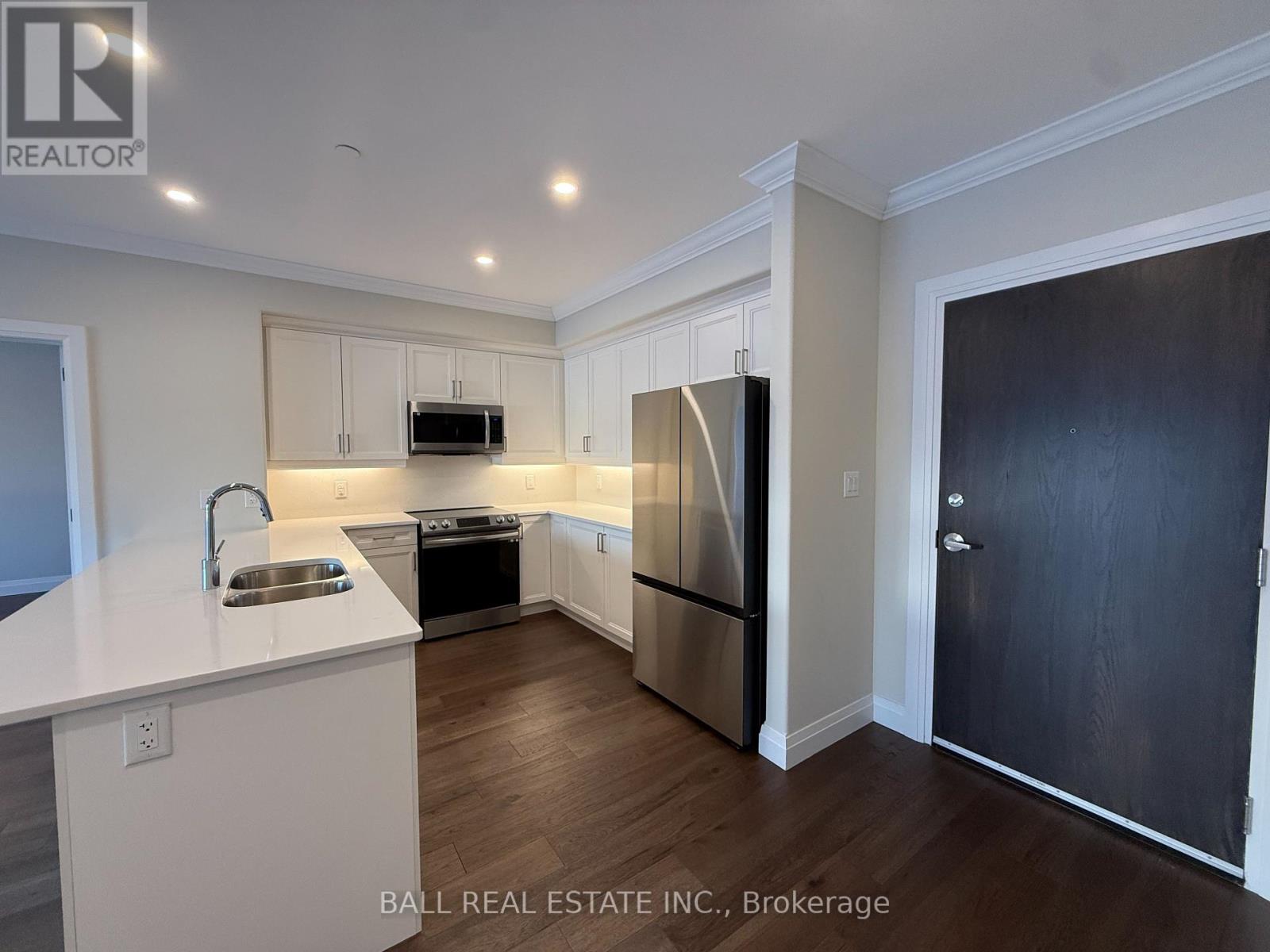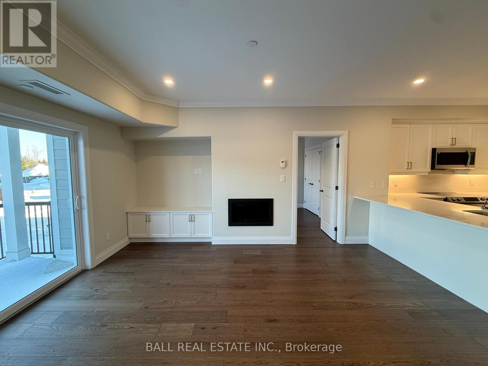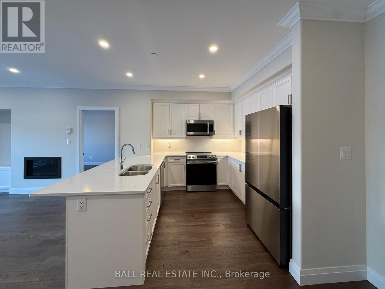 Immaculate 2-Bed Luxury Condo in the Village of Lakefield! Welcome to never-lived-in Unit 204, a bright, beautifully finished suite featuring 2 bedrooms, full bathroom and a lovely open-concept layout with gas fireplace and 9' ceilings with crown moulding throughout. The stunning kitchen offers white quartz countertops and backsplash with new stainless steel appliances, open to living room with large walkout covered patio to watch the sunrise every morning. This unit comes with parking spot #19 (plus 2nd leased spot #27 for 20 yrs), visitor parking and storage unit #10 in basement, plus garage parking space available to purchase. Explore 3km of scenic paved walking paths throughout the community, pop next door to Golden Years Club activities or take a short stroll into Lakefield's vibrant downtown with great restaurants, shopping, waterfront trail, farmers market, marina and more. Experience the perfect blend of new-build luxury comforts, reputable local quality craftsmanship, and incredible convenience, with no maintenance! (id:64974)