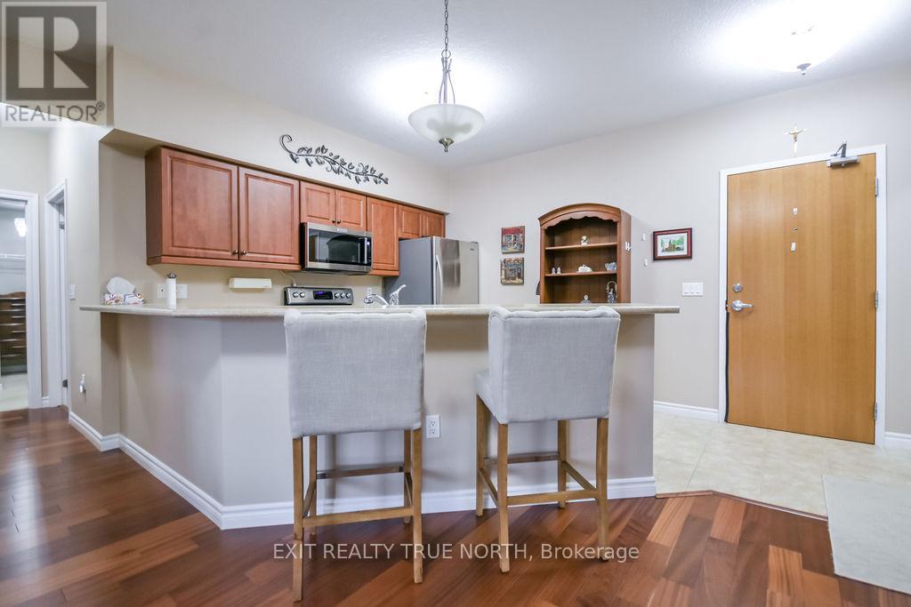 Tucked inside the sought-after Maplecrest building, this beautifully maintained condo offers the kind of easy, comfortable living that just feels right the moment you walk in. Welcome to 19B Yonge Street, Unit 204 in Elmvale. A bright and thoughtfully designed two-bedroom, two-bathroom home where convenience and low-maintenance living come together. The spacious kitchen is a true highlight, offering plenty of room to cook, gather, and entertain. The layout flows effortlessly into the living space and out to your private balcony with peaceful east-facing views overlooking the back of the property, an ideal spot to enjoy your morning coffee while surrounded by greenery and privacy spring through fall. This well cared for unit also features key fob entry, elevator access, and an owned parking space conveniently located right beside the main entrance for easy day to day access. Residents enjoy access to shared amenities including the party room and gazebo area-perfect for relaxing or spending time with friends. Located just steps from Elmvale's local shops, restaurants, and everyday services, everything you need is within easy reach. And when you're ready for a day by the water, the sandy shores of Wasaga Beach are only a 10-minute drive away, with Barrie and Midland both just 20 minutes from your door. Comfortable, convenient, and exceptionally well kept, this is condo living at its best. (id:64974)