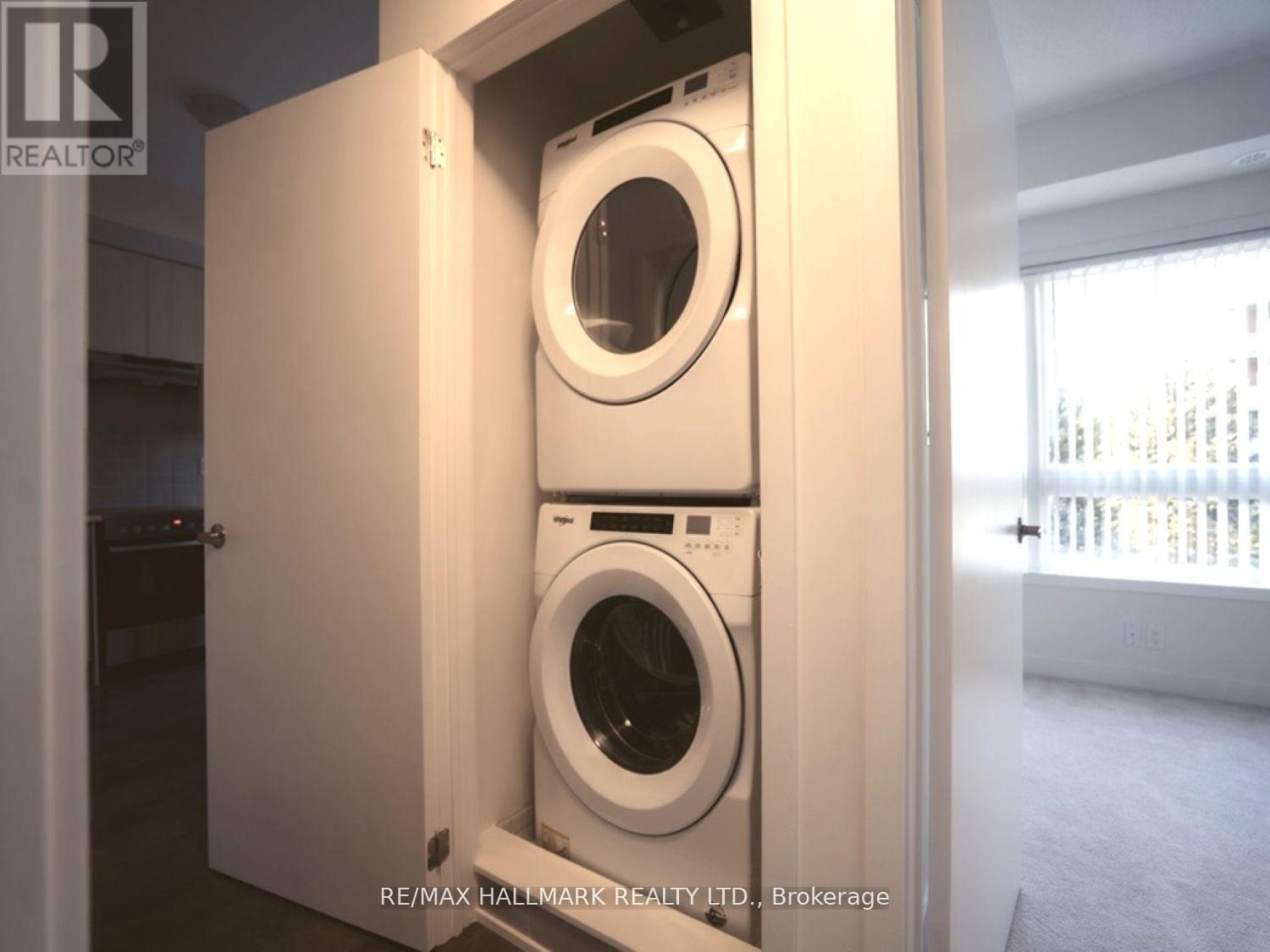 A bright corner 2-bedroom unit featuring an open-concept kitchen with space for an eat-in area. The spacious living room offers a walk-out to your own private balcony, complemented by large windows that flood the unit with natural light. Enjoy modern stainless-steel appliances and a full-size washer and dryer for added convenience. Photos with furniture has been virtually staged. Amenities include a gym and a party/meeting room. Ideally situated in a prime location just steps to the TTC, restaurants, shopping, banks, parks, schools, and local businesses. Minutes to highways, colleges and universities, and major shopping centres. Includes one underground parking space. Tenant pays for all gas & hydro (id:64974)