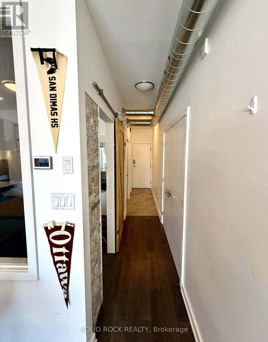 Live in the heart of Ottawa's most exciting and rapidly evolving neighbourhood - LeBreton Flats. Steps from the Ottawa River pathways, the brand-new Adisoke Central Library, LRT station, and a stone's throw from the proposed future arena and entertainment district, this stunning one-bedroom boutique condo by Surface Developments offers the perfect blend of lifestyle, convenience, and investment potential. Inside, you'll find a bright and sun-filled open-concept layout featuring beautiful hardwood flooring, soaring 9-foot ceilings, and elegant stone accent details that create a stylish, modern atmosphere. The upgraded kitchen is designed for both function and entertaining, complete with stainless steel appliances, additional cabinetry, and a floating island.The primary bedroom features a rare walk-in closet for a condo of this size and direct access to the bathroom. Additional highlights include in-unit laundry, affordable condo fees, and thoughtfully designed living space throughout. Residents enjoy access to a beautiful rooftop terrace, perfect for relaxing or entertaining while taking in city views. Walk to Little Italy, Chinatown, Centretown, and Hintonburg, while enjoying easy access to nature along the Ottawa River. Perfect for first-time buyers, professionals, students, or investors looking to be part of one of Ottawa's most dynamic communities. (id:64974)