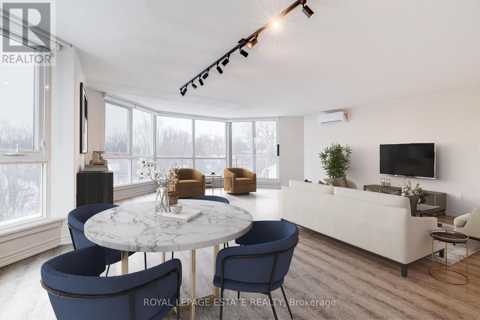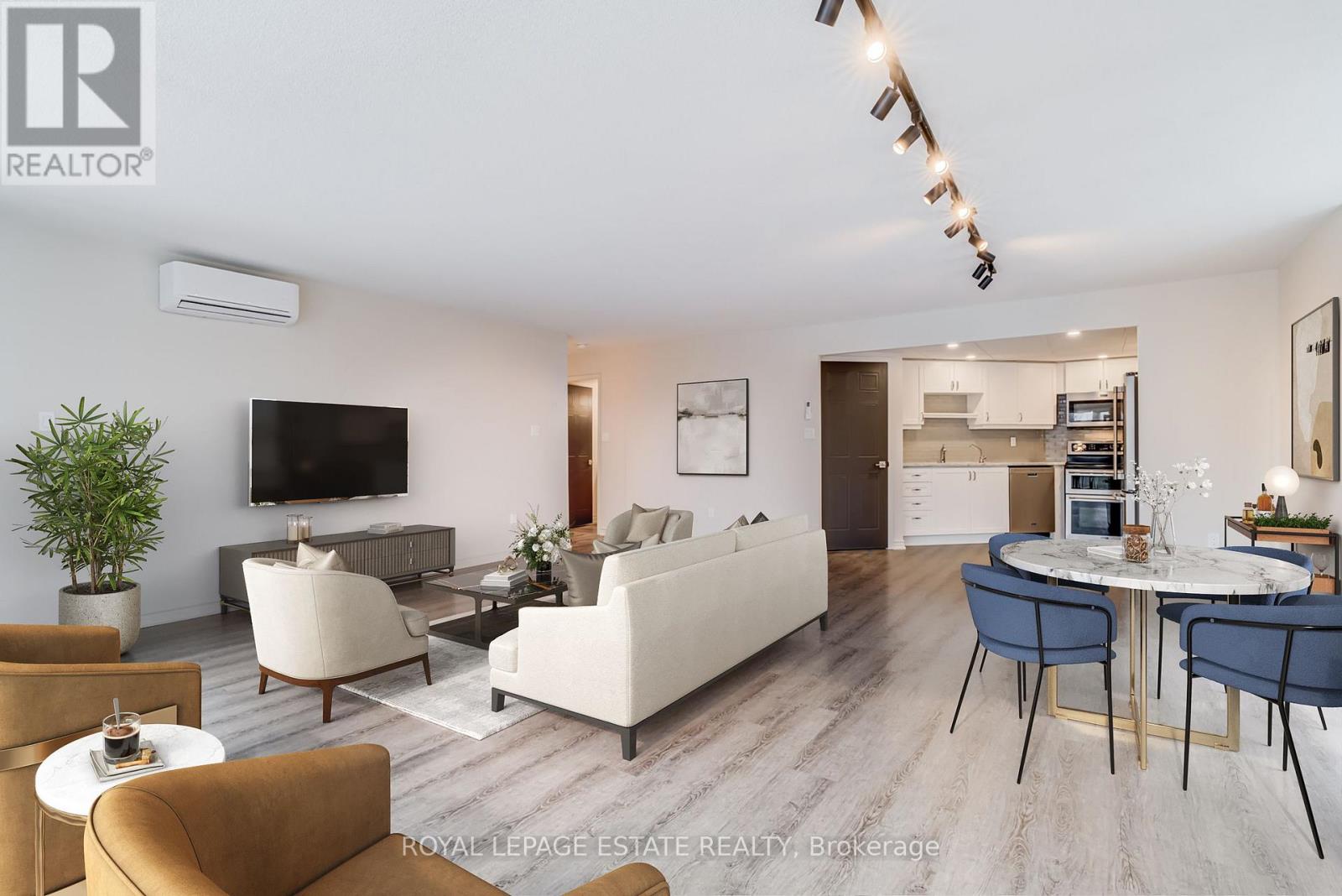 Welcome to Royal Ascot Condominiums, one of Georgetown's most desirable and well-managed communities, known for its peaceful atmosphere and mature setting. This sought after Ashford model has been beautifully maintained, 2-bedroom, 2-bathroom suite offers approximately 1,269 square feet of comfortable, thoughtfully designed living space - ideal for those looking to downsize without compromise. Large windows fill the home with natural light and provide serene, unobstructed views of the woods, creating a calming backdrop you'll enjoy year-round. The unit features updated laminate flooring throughout, offering a fresh, modern look with easy maintenance. The renovated kitchen is both stylish and functional, complete with quality Maytag stainless steel appliances, ample cabinetry, and generous counter space - perfect for everyday cooking and hosting family visits. The spacious primary bedroom includes a fully renovated ensuite bathroom, beautifully finished with contemporary touches. The main bathroom has also been recently updated with a new vanity, providing comfort and convenience for guests. Residents of Royal Ascot appreciate the building's quiet, respectful environment and excellent amenities, including a party room for gatherings, a billiards room, a fitness centre, and a BBQ area - perfect for summer entertaining. The suite also includes secure, exclusive use, underground parking and a private locker for additional storage. Ideally suited for mature buyers seeking a tranquil lifestyle close to nature, while still enjoying the convenience of Georgetown's shops, services, and community amenities, this exceptional suite offers the perfect blend of comfort, privacy, and low-maintenance living. A unique opportunity to enjoy carefree condo living in a highly regarded building. Easy walk to the Hungry Hollow trail system, parks & restaurants. *photos are virtually staged* (id:64974)