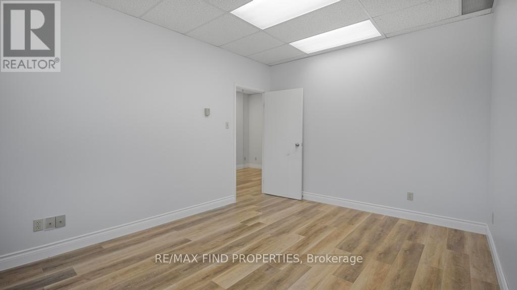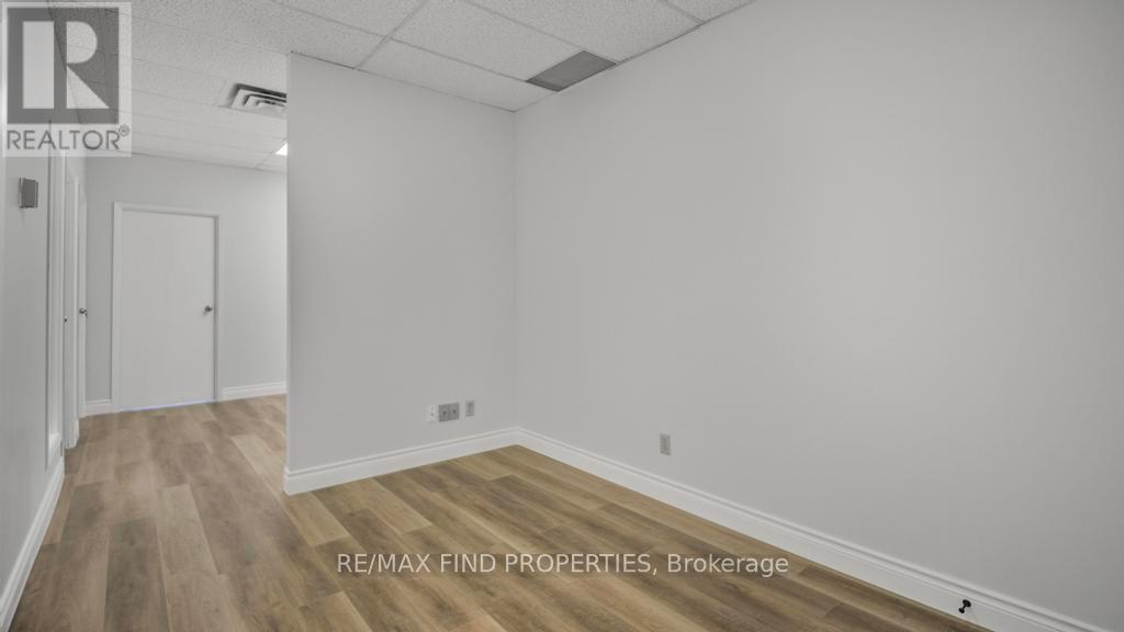 Prime Markham Office Space - Newly updated functional professional office space conveniently located near Highways 404 and 407. This unit offers three private offices, and additional room with a small kitchenette with sink, a reception area and photocopy/filing area, floor plan attached. Includes two reserved underground parking spots, and ample surface visitor parking. Easy to commute to dining, retail, and professional services, this space provides an ideal setting for businesses seeking convenience and a professional environment. HST additional to gross rent. (id:64974)