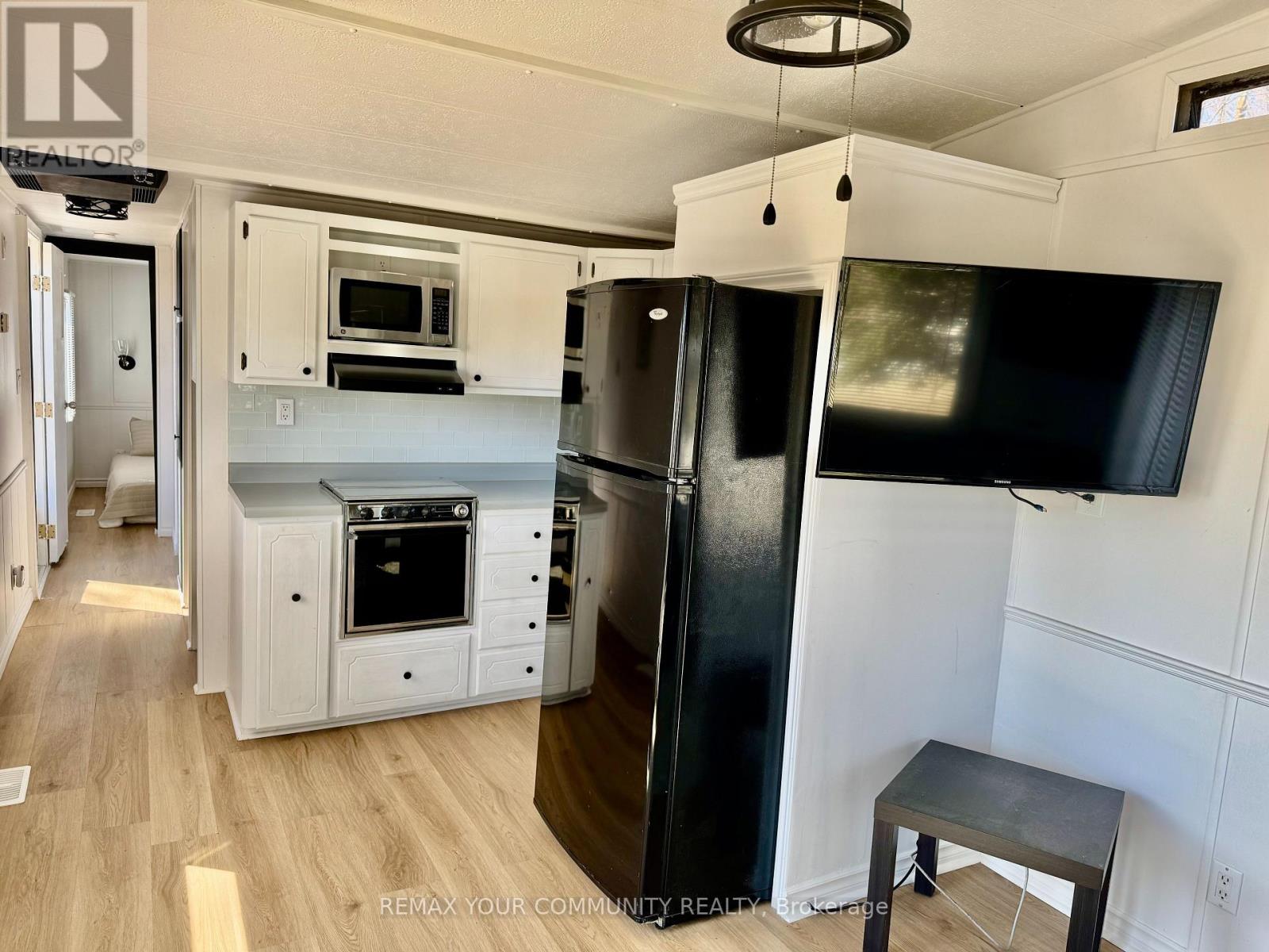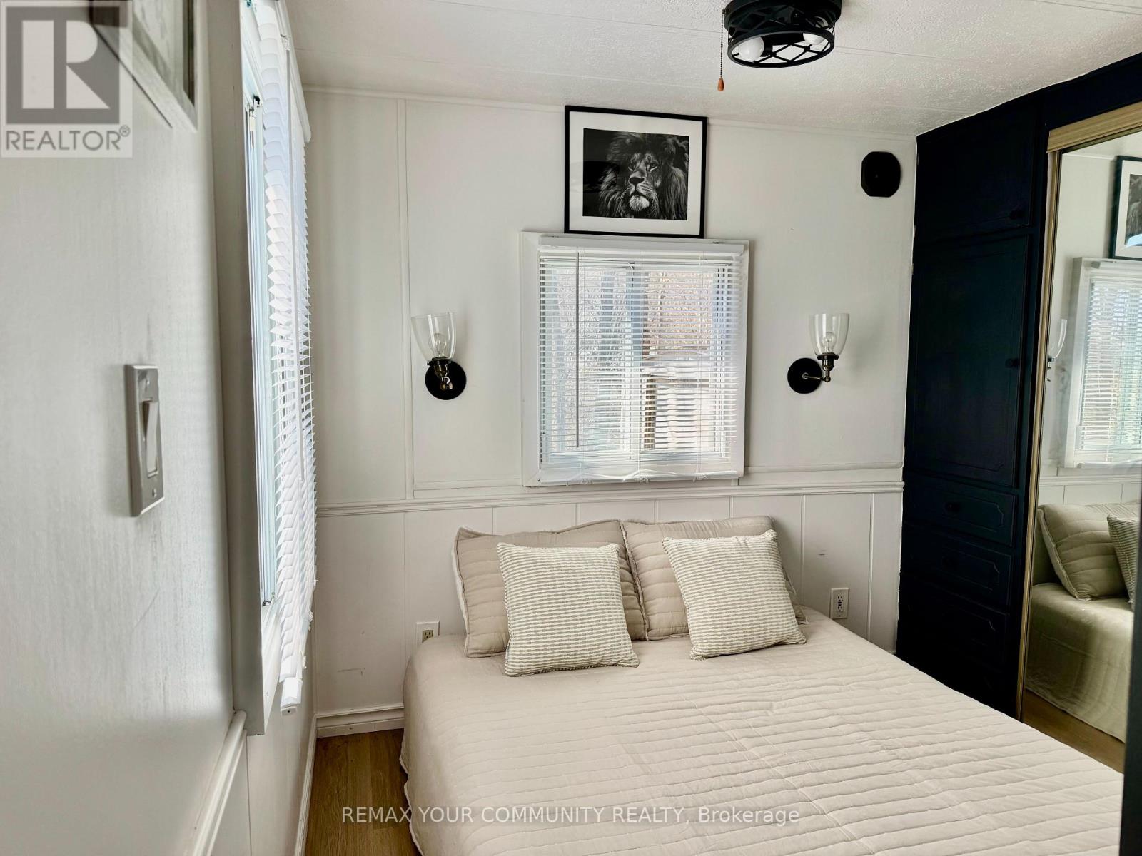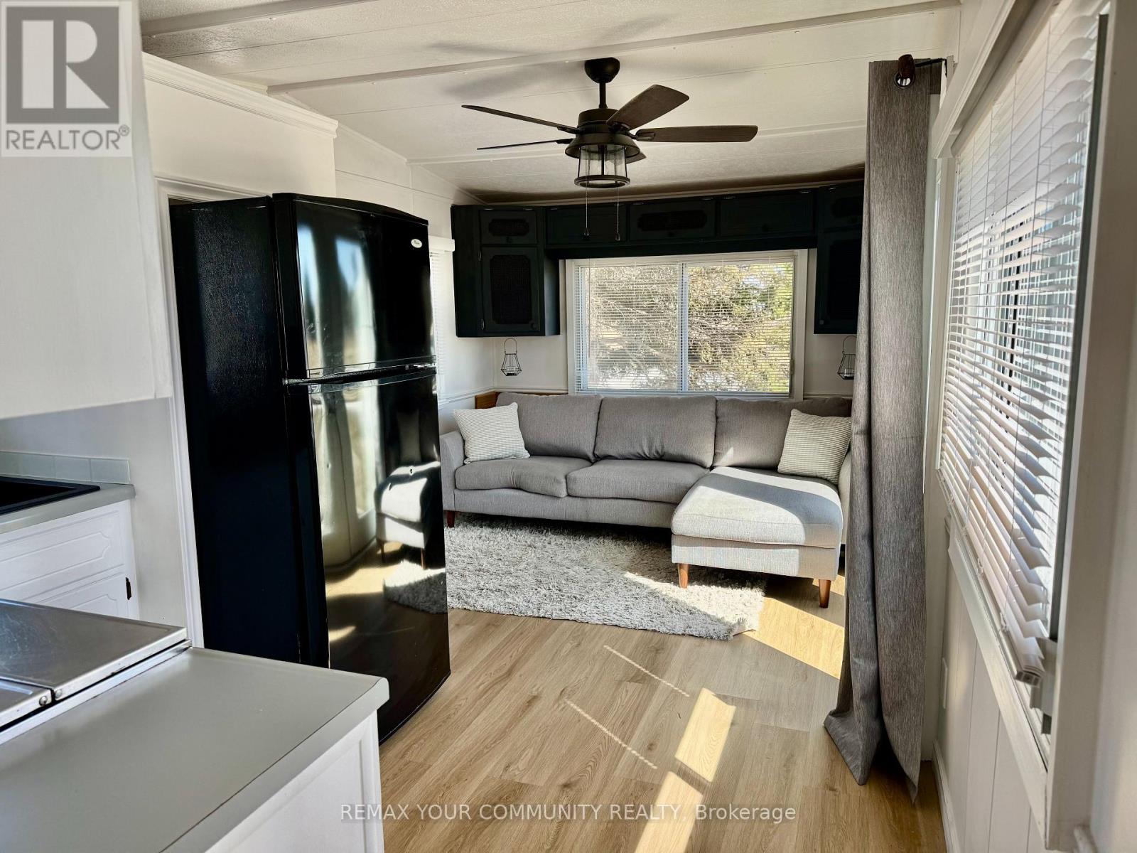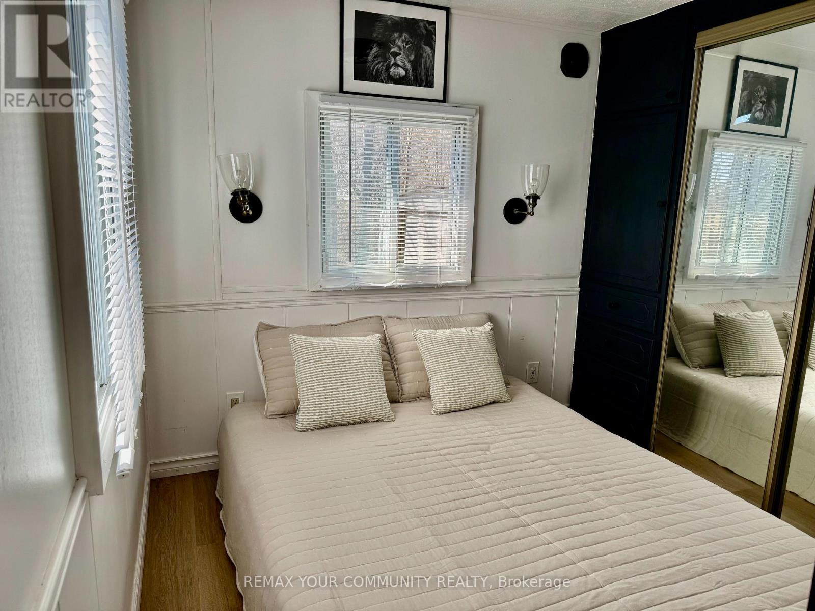 Welcome to affordable living! Cute and cozy 1+1 Bedroom, situated in popular Lyndhurst golf and park! Approximately 10 minutes from Lake Simcoe, and just under 15 minutes to the highway 404 extension! Backing onto Green space, enjoy this lot with no neighbours behind. Open concept home, one bedroom with a den! Updates include roof (re tarred) hot water tank owned, vinyl siding, vapor barrier and insulated al approximately 2023. Enjoy walking trails, an inground pool, and just steps from a beautiful 18 hole golf course! This home is located on leased land. The lease from April 26th to October 26th is $3575.00 plus HST. (id:64974)