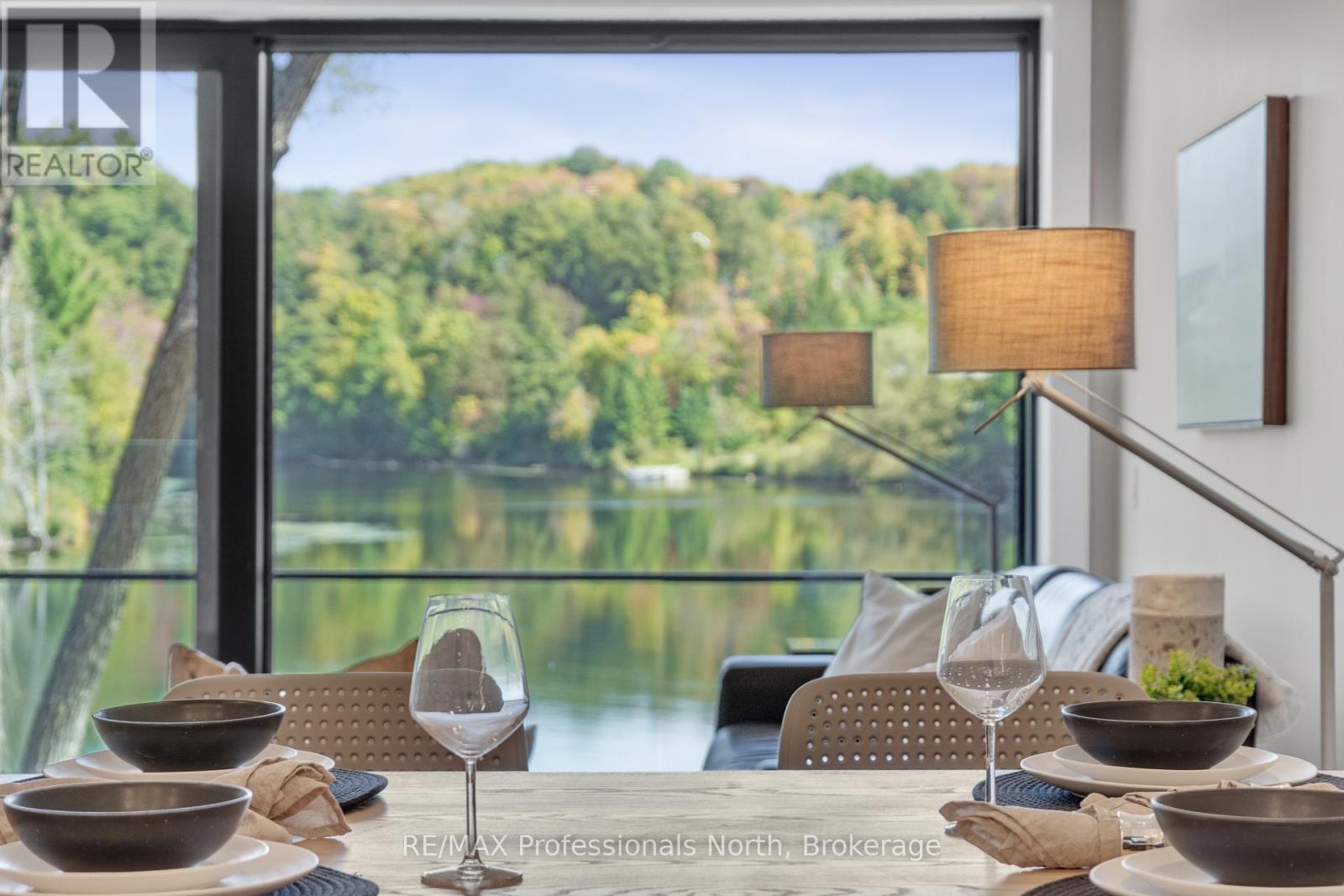 Welcome to The Riverbend Muskoka Luxury on the Shores of the Muskoka River! Now selling 1-, 2-, and 3-bedroom suites with the opportunity to customize your finishes and move in this fall. This exclusive condominium community features just 15 suites, offering a rare blend of modern convenience and timeless Muskoka charm. From every suite, in every season, enjoy peace, serenity, and breathtaking views of the Muskoka landscape. The Riverbend combines low-maintenance living with prime access to Huntsville's vibrant downtown, local amenities, and 40 miles of boating right from your doorstep. Boat slips are also available for purchase. Spacious open-concept living area is designed to maximize natural light and highlight the spectacular riverfront views through large triple-paned windows crafted with energy efficiency in mind. Community amenities include a large dock for enjoying the waterfront, as well as a patio and BBQ area perfect for entertaining. Each suite comes with one underground parking space, with additional spaces available for purchase, along with guest parking for visitors. Schedule your private tour at the model suite today to explore design options and secure your place at The Riverbend Huntsville's premier condominium address. (id:64974)