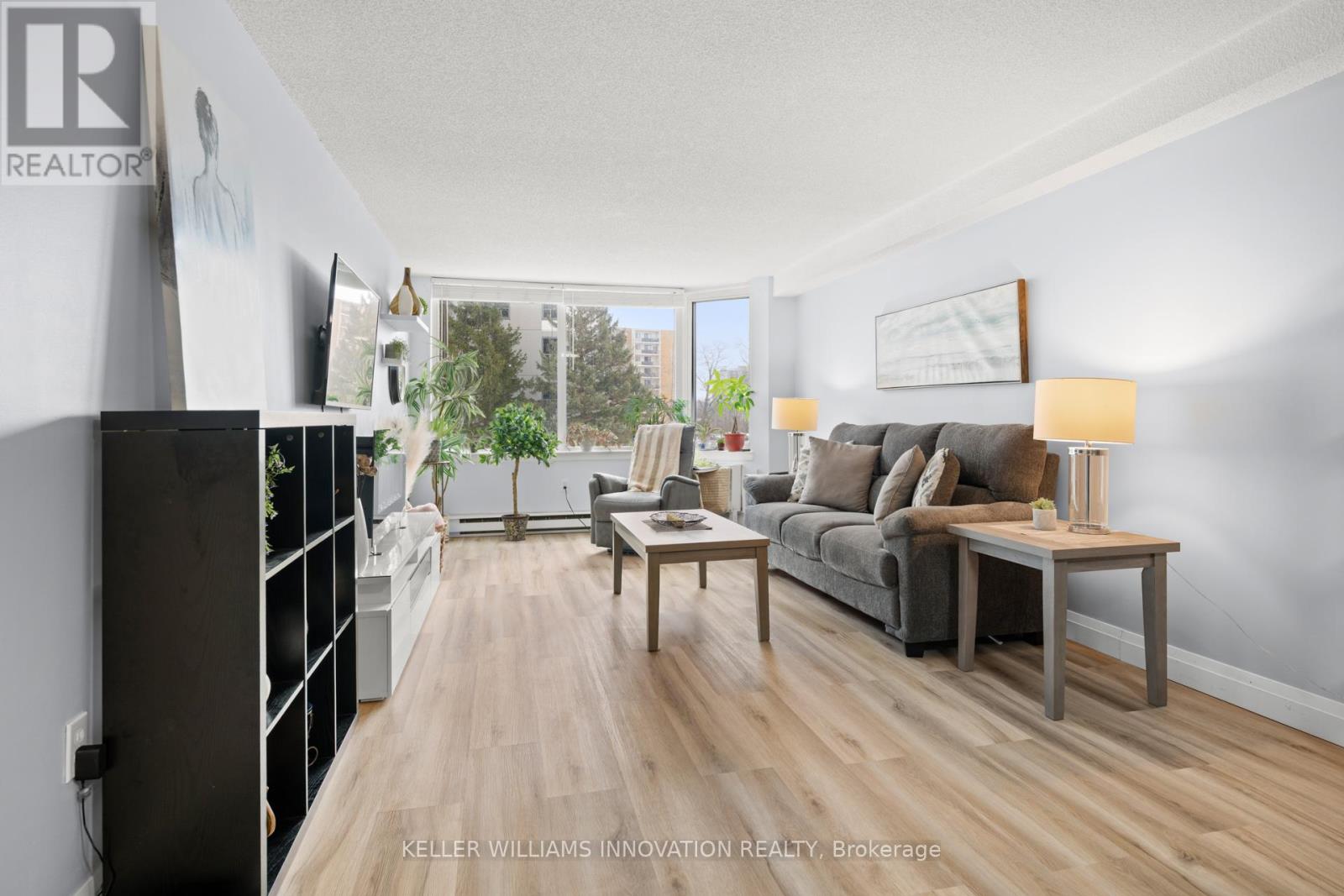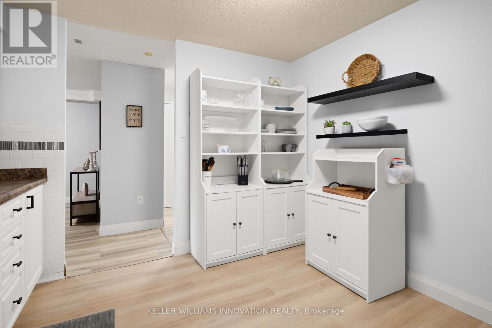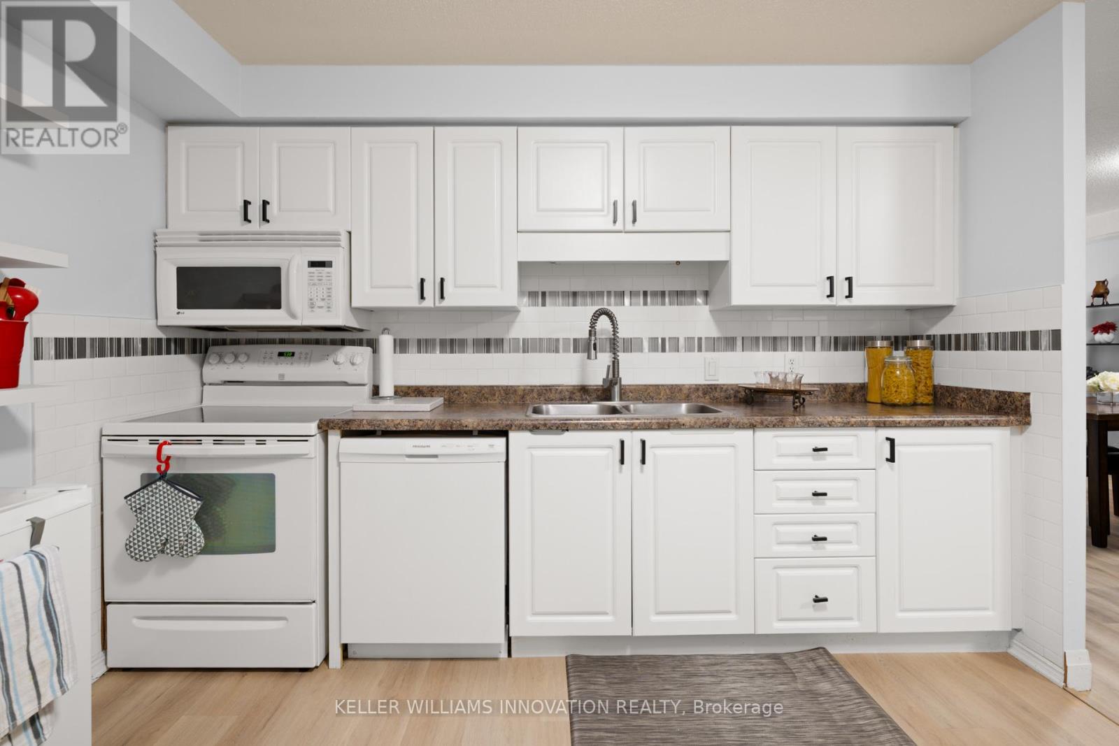 Welcome home to this bright, beautifully updated 1-bedroom condo tucked into the sought-after Pioneer Park area of Kitchener where comfort, convenience, and lifestyle meet. This spacious unit is flooded with natural light, making every room feel open and inviting. Recent updates elevate the space, including brand-new flooring, fresh paint throughout, and an updated bathroom vanity, giving you a clean, modern feel that's truly move-in ready. The modern kitchen features crisp white cabinetry and a generous layout, complemented by thoughtfully added shelving that enhances storage and functionality both practical and stylish. Whether you're a first-time buyer looking for the perfect start, a down-sizer wanting easy, low-maintenance living, or an investor searching for a solid opportunity, this condo checks all the boxes. The well-maintained, pet-friendly building offers fantastic amenities, including an exercise room, sauna, and elevators for easy access, making day-to-day living effortless and enjoyable. Bright. Updated. Well-located. This is one you'll want to see in person because it feels even better than it looks. (id:64974)