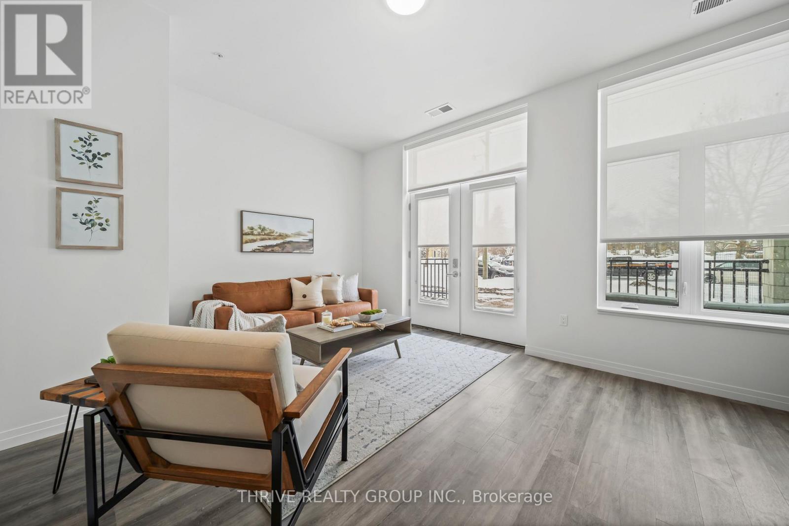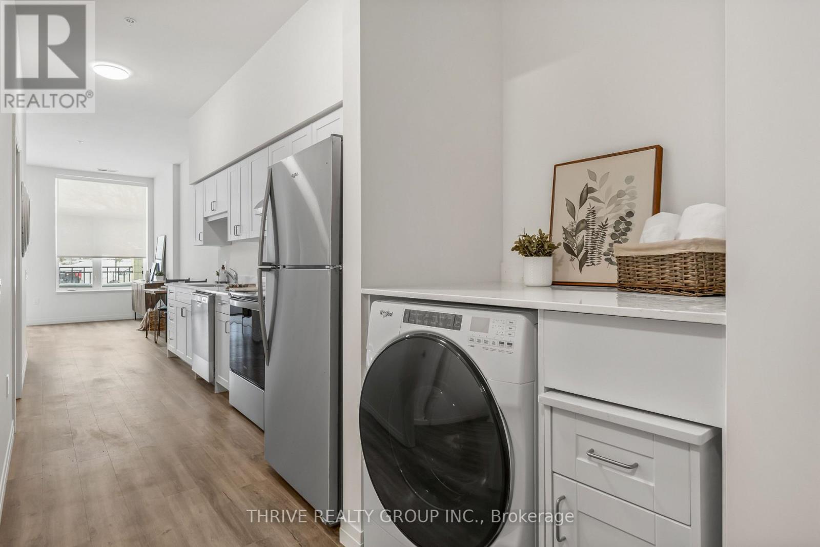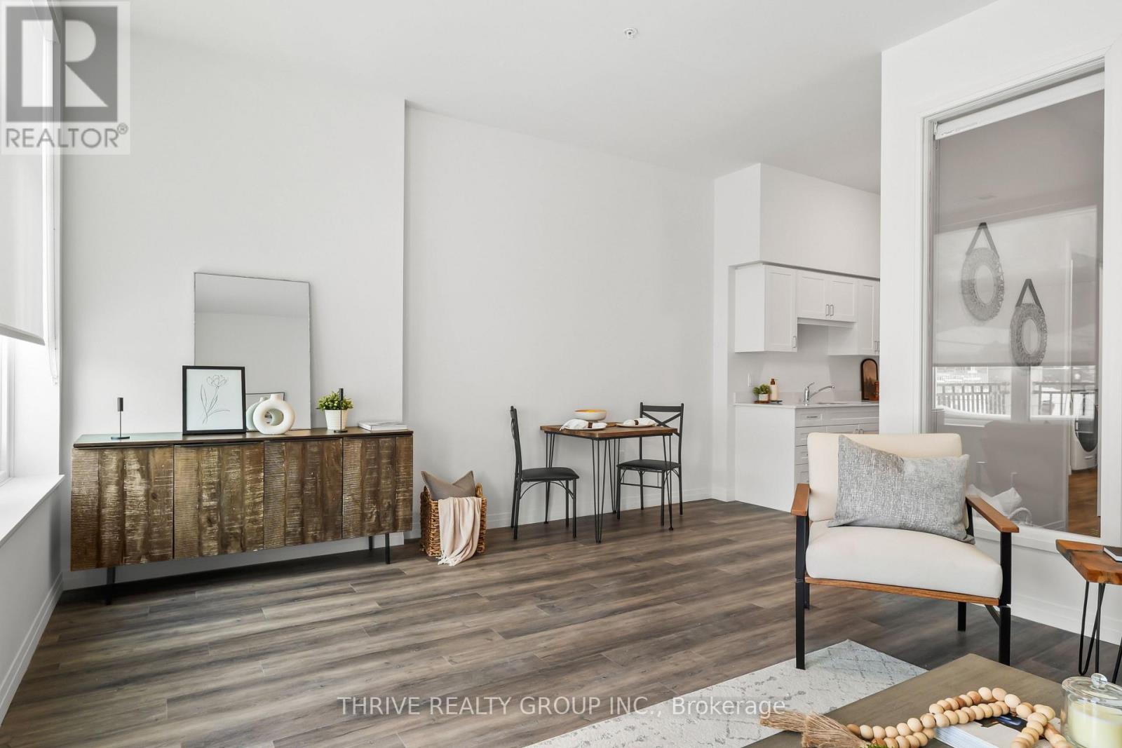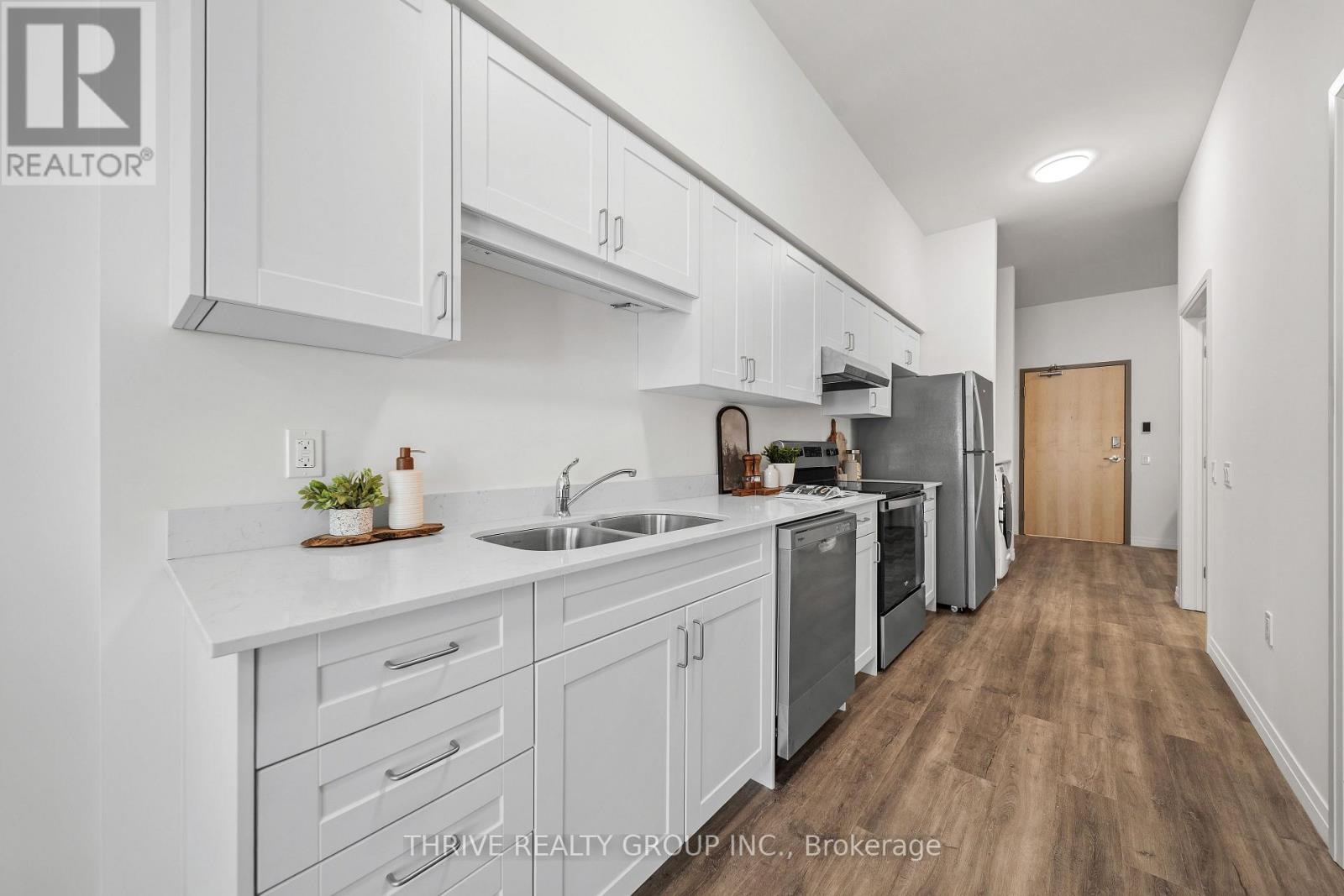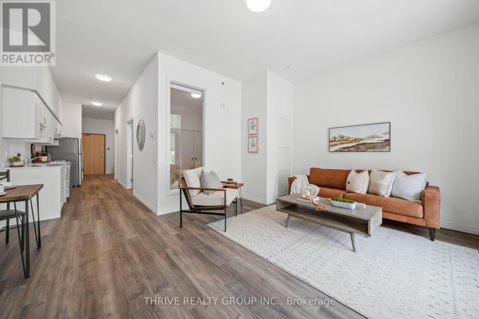Welcome to Chelsea on the Thames, a brand new, purpose-built community in the heart of SoHo Village, thoughtfully designed to offer modern living in a vibrant, community-focused building. This 1-bedroom, 1-bath suite offers approximately 622 sq. ft. of well-planned living space, featuring a functional, open-concept kitchen and living area ideal for everyday comfort. Step outside to your private balcony, extending your living space and providing an inviting spot for morning coffee or relaxing at the end of the day. Enjoy the convenience of in-suite laundry, a dishwasher, and efficient central heating and air conditioning for year-round comfort, plus 1 underground parking spot available for $50 per month. Tenants are responsible for Hydro. Located at 373 Hill Street, you'll be close to transit, parks, schools, and everyday amenities. *Photos are of a similar unit in the building and may not reflect the exact finishes or layout of this suite.* (id:64974)