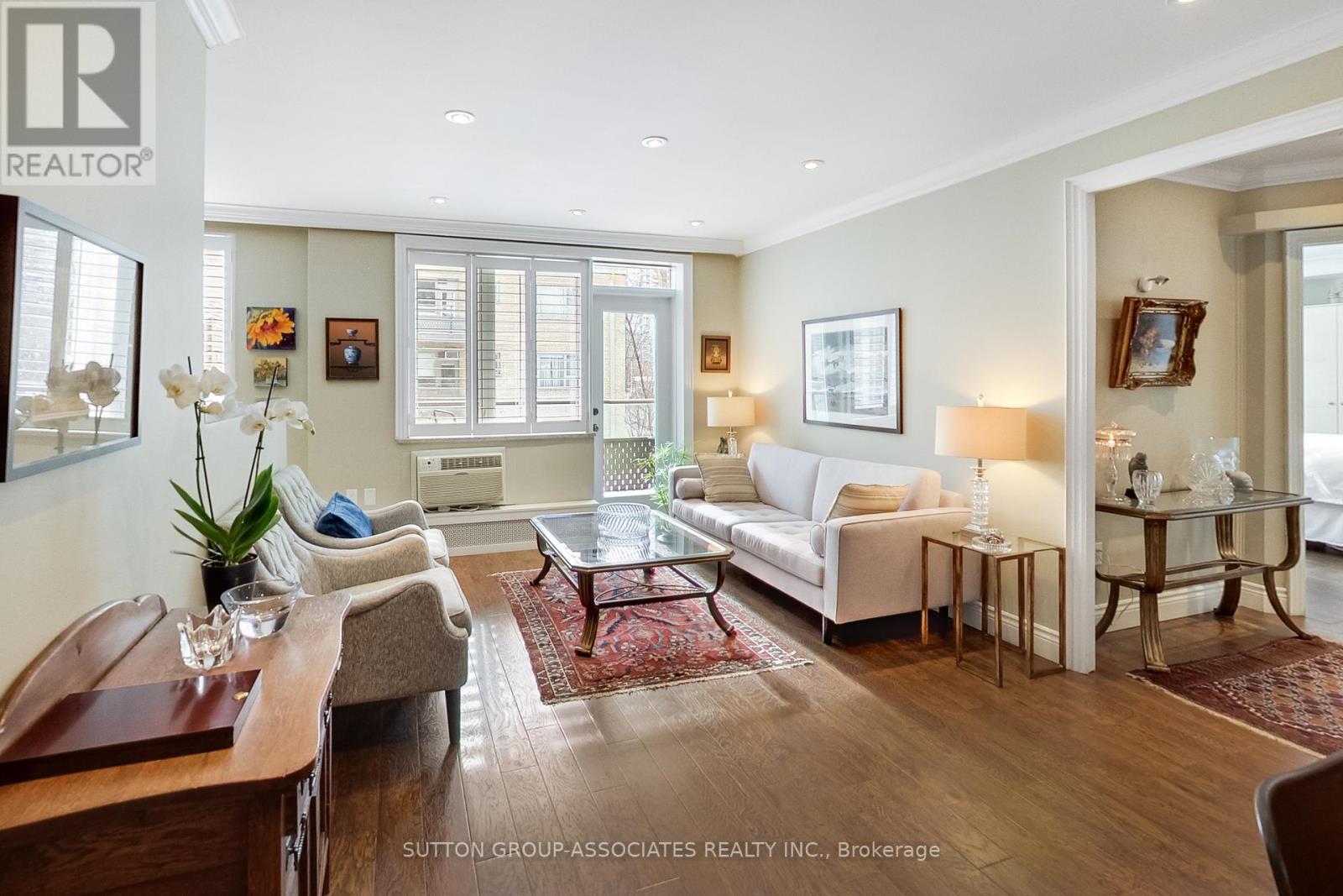 Low-Rise Living in Rosedale! A move-in ready gem is now available at Forty Glen Road, a warm and inviting co-op community located in South Rosedale. Corner suite 204 is particularly special, offering an excellent layout with no wasted square footage to long hallways, along with stylishly renovated kitchen and baths. Quartz counters, stainless steel appliances, custom built-ins and California shutters bring a welcome finish to Its ideal south-west exposure overlooking the community's tranquil courtyard. This is a quiet, understated and unique, must-see offering! The meticulously maintained three storey co-op is nestled among mature ravine trees in Rosedale's serene residential setting, yet just steps to Bloor Street (and subway!) via the pedestrian footbridge spanning the majestic Rosedale Valley Road. Enjoy the ease of on-grade garage parking with EV charging, a modest-scale building with no long elevator waits, and a dedicated live-in superintendent who provides responsive, reassuring support and maintenance. The building's notably low turnover is its own seal of approval - residents here, tend to stay! Note: Property taxes are included in maintenance fees! (No rentals and no pets permitted. Indoor Garage Parking Rental Fee $35 per month & Building Wide Bell Fibe Internet + Cable Fee $54.24 per month.) (id:64974)
