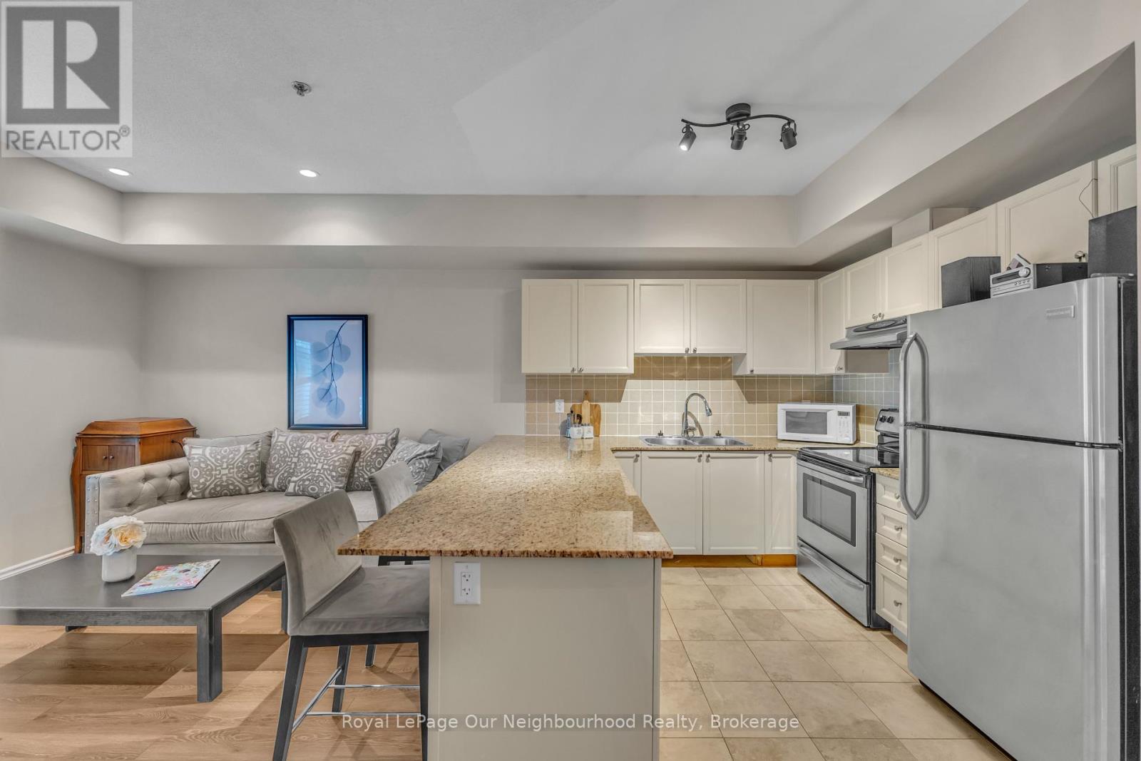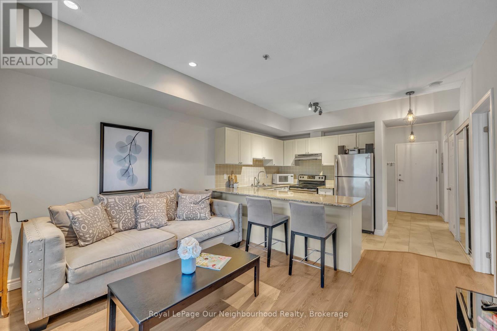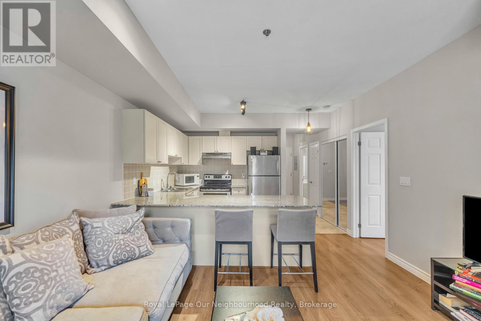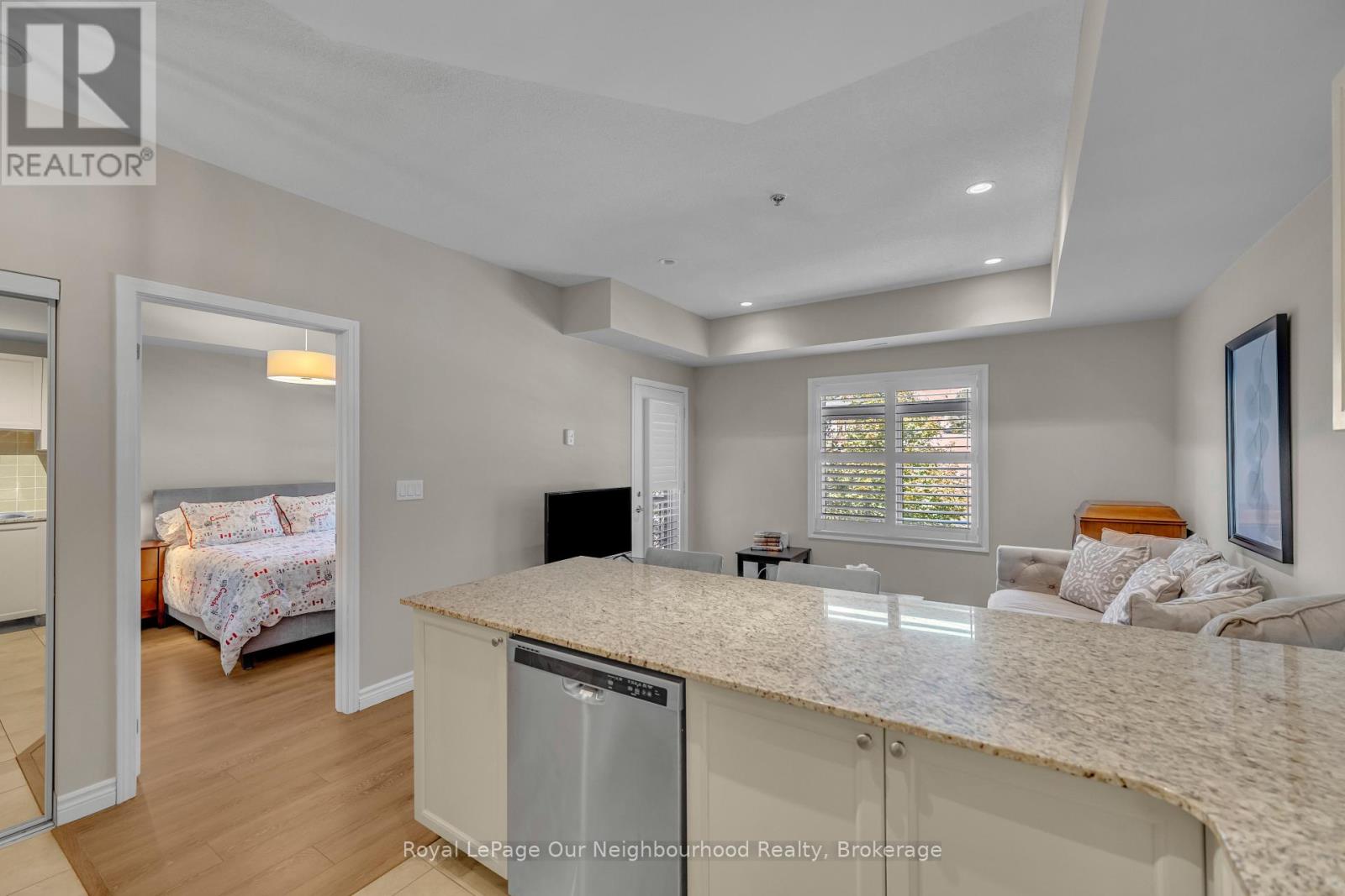 Discover the perfect balance of tranquility and convenience in this charming 1-bedroom, 1-bathroom condo located at Rivers Edge in the heart of downtown Port Hope. Nestled along the picturesque Ganaraska River, this residence offers a peaceful retreat while keeping you just steps from shops, restaurants, cafs, and all the charm this historic town has to offer.Inside, youll find a bright, open-concept layout designed for both comfort and functionality. The kitchen showcases beautiful granite countertops and ample cabinetry, flowing seamlessly into the living space. From here, step out to your private east-facing balcony where you can enjoy morning coffee or evening relaxation with serene views.The spacious primary bedroom features a large walk-in closet, while additional closets throughout the unit provide ample storage. An in-suite laundry area adds everyday convenience. This home also comes with one above-ground parking space.Perfect for first-time buyers, downsizers, or anyone seeking a low-maintenance lifestyle in a vibrant community, this Rivers Edge condo offers modern living surrounded by natural beauty and small-town charm. (id:64974)