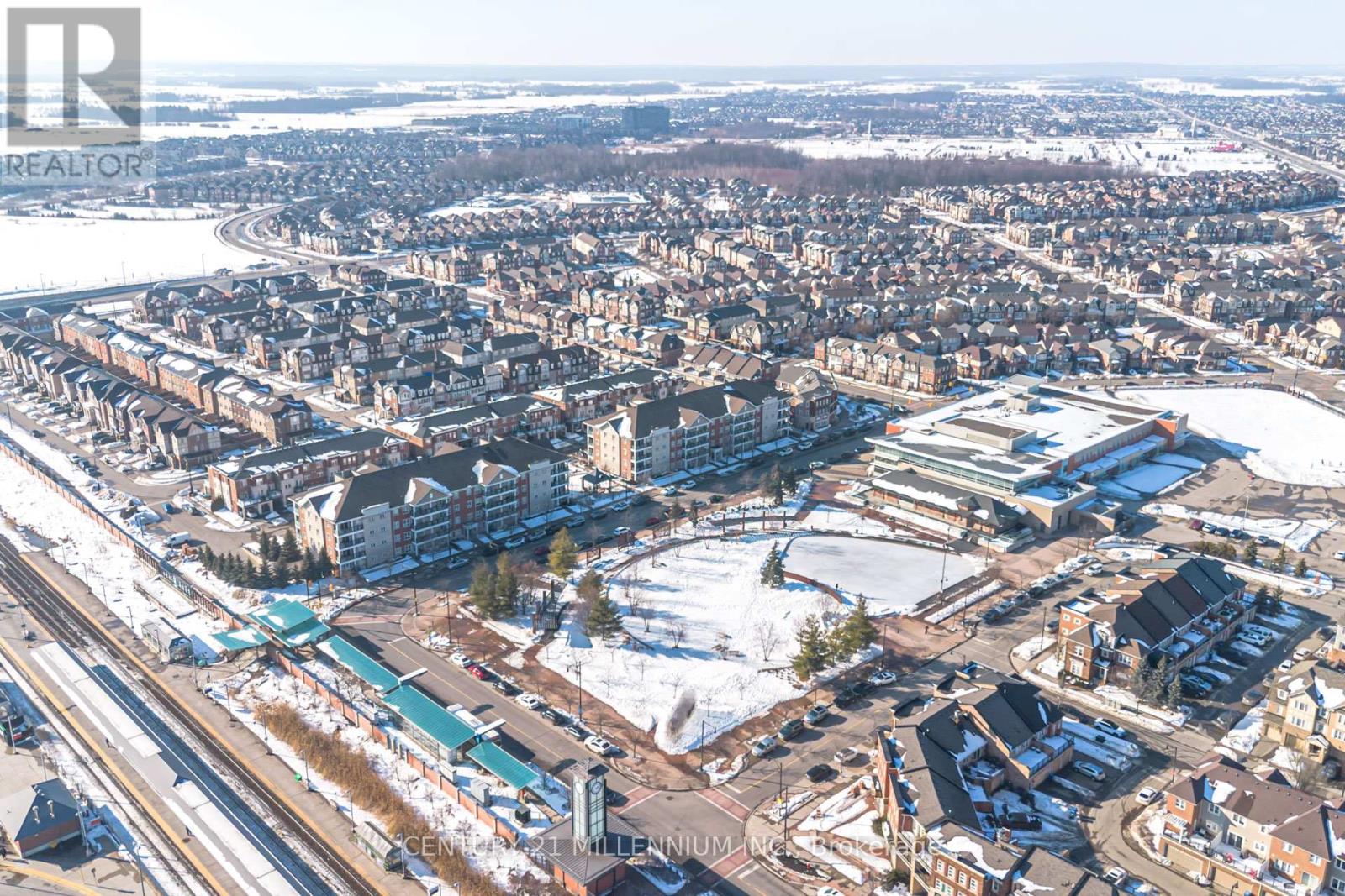 This condo has it all!!! King size CORNER unit feat 2 bed + den, 2 full baths, private balcony, 2 OWNED PARKING & locker In the Mount Pleasant Community seconds to Mount Pleasant Go Station & Village Square. Picture yourself living in a rare approx 1,200 sqft condo & as you walk in you're greeted w/ a spacious foyer, soaring 9 ft ceilings, an unbelievable XL den that can be used as office, play area, extra living space or converted to a 3rd bedroom! The 2nd Queen sz bedroom has soft warm carpeting w/ Dbl mirrored closet. A true KING Sz master spoils you with warm soft carpeting, 2 closets & 3pc ensuite w/ 2 person glass shower. The full size LR/DR is packed with sunlight, finished w/ high end laminate floors, large windows, sliding doors to a private balcony. Flow into the kitchen feat ceramic floors, solid wood cabinetry, S/S appliances, Dbl sink. The condo is finished with custom California Shutters throughout. Dbl doors open to ensuite laundry w/ additional storage space. Unbeatable size, privacy, features, location makes this an incredible package. Do you work downtown or need to take the GO train to work, this will be the easiest 2 min walk to the Go Station 5 days a week! On top of that enjoy endless shopping amenities, Recreation centres & community events at your front door. (id:64974)