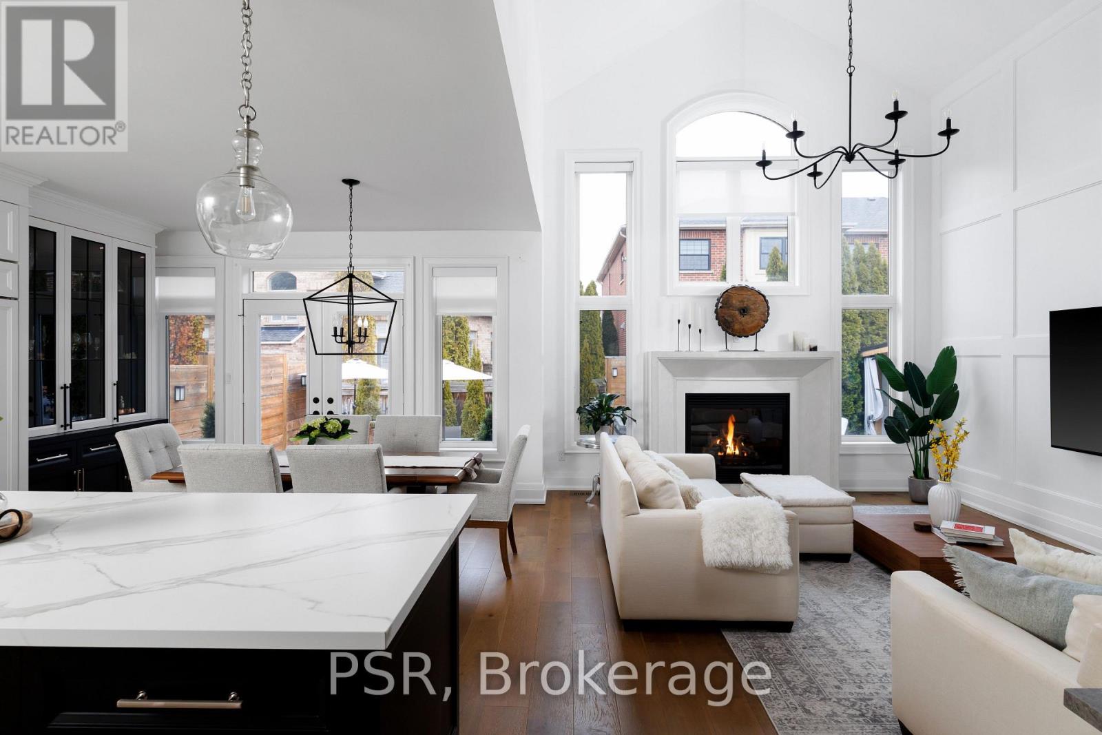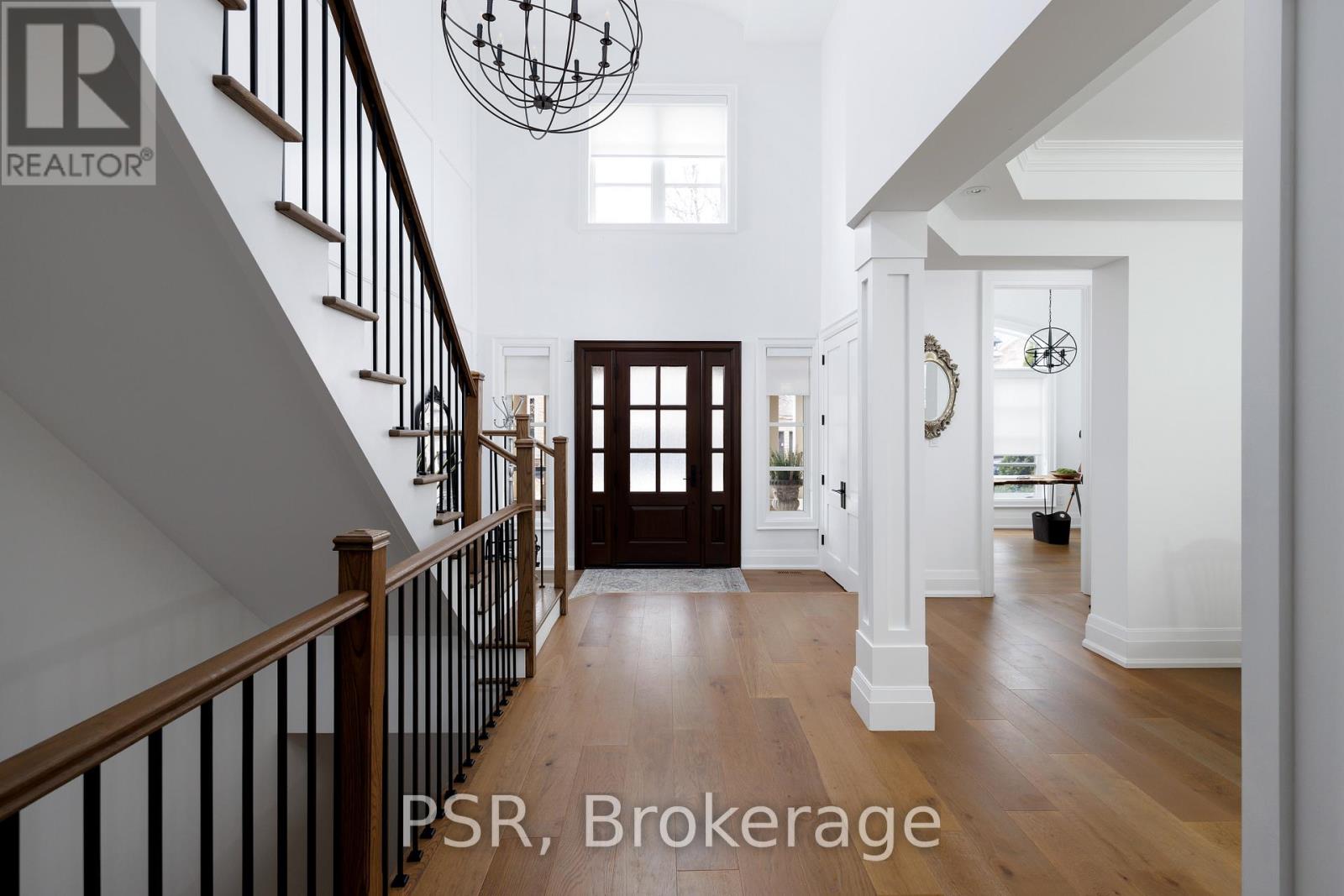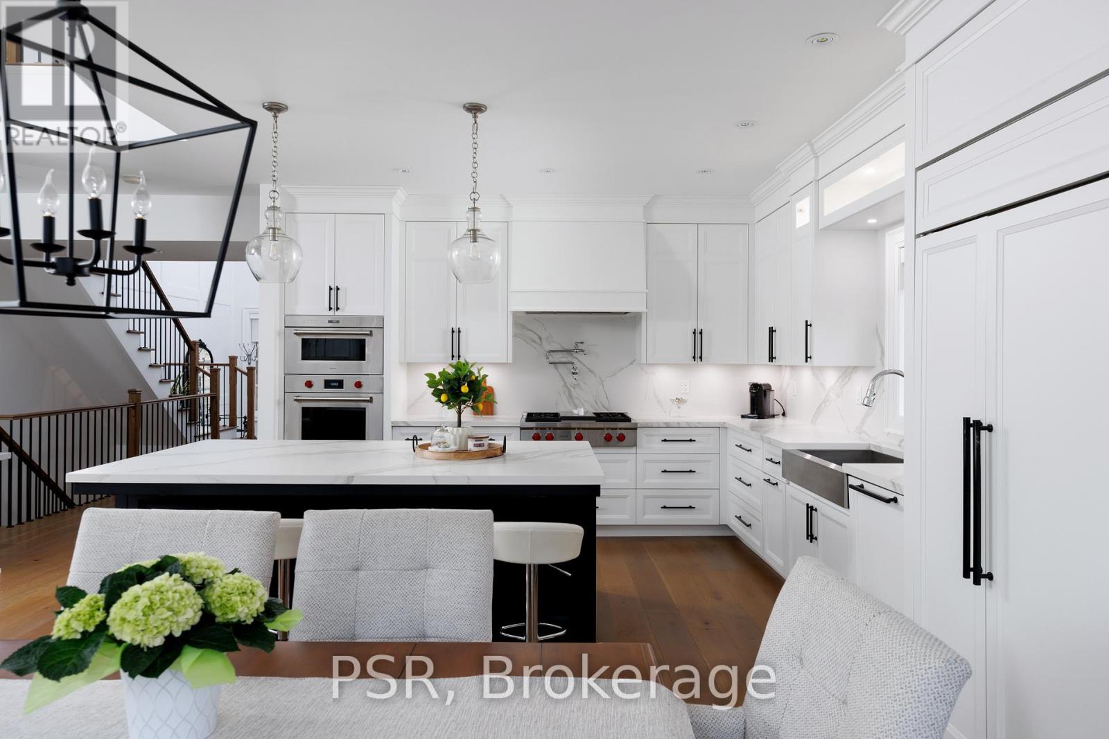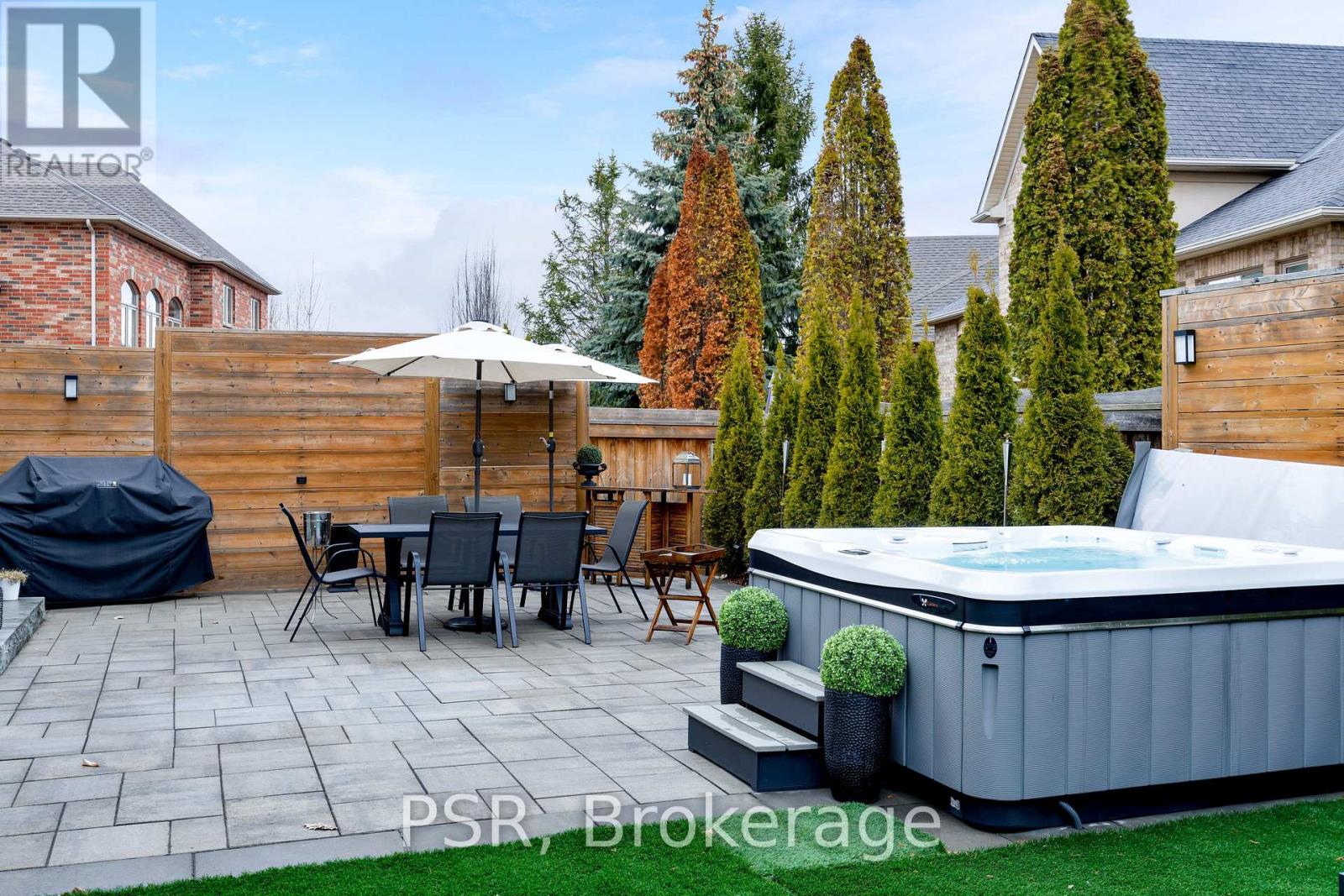 Welcome to 2040 Bingley Crescent, a fully customized Fernbrook bungaloft set on a premium 56 ft ravine lined lot in sought-after Bronte Creek, steps to Bronte Creek Provincial Park. Offering over 3,300 sq.ft. above grade plus a finished lower level, this extensively redesigned home, showcases elevated, designer finishes throughout. Professionally landscaped with irrigation, an oversized driveway and 2-car garage, plus a private, resort-style backyard featuring a Caldera hot tub, cabana shed, maintenance-free turf, hardscaping, and gas BBQ line. Inside, a sun-filled 2-storey foyer with custom millwork leads to an open-concept main floor with office, formal dining, and a stunning Misani kitchen with Wolf & Sub-Zero appliances overlooking a dramatic 2-storey great room. Rare main floor primary retreat with custom his & hers closets and a spa-inspired 7-piece ensuite. Upper level offers 2 bedrooms with California Closets and a 5-piece bath. Finished basement with 9 ft ceilings includes a gym, bar, rec/media space, 4th bedroom, bath, and ample storage. Extensive upgrades throughout including custom millwork, Kohler fixtures, heated floors, designer lighting, new trim, doors, roof, furnace, and A/C. A refined, turnkey offering in one of Oakville's most desirable communities. (id:64974)