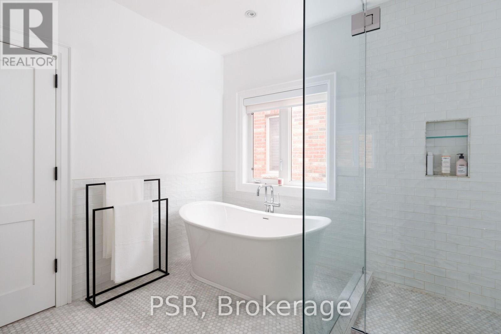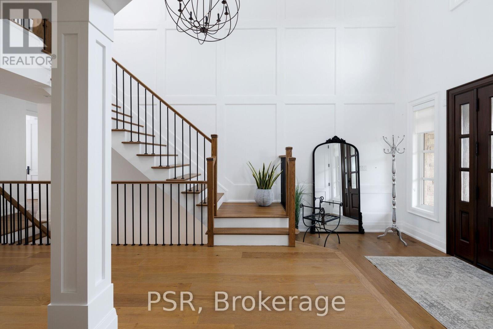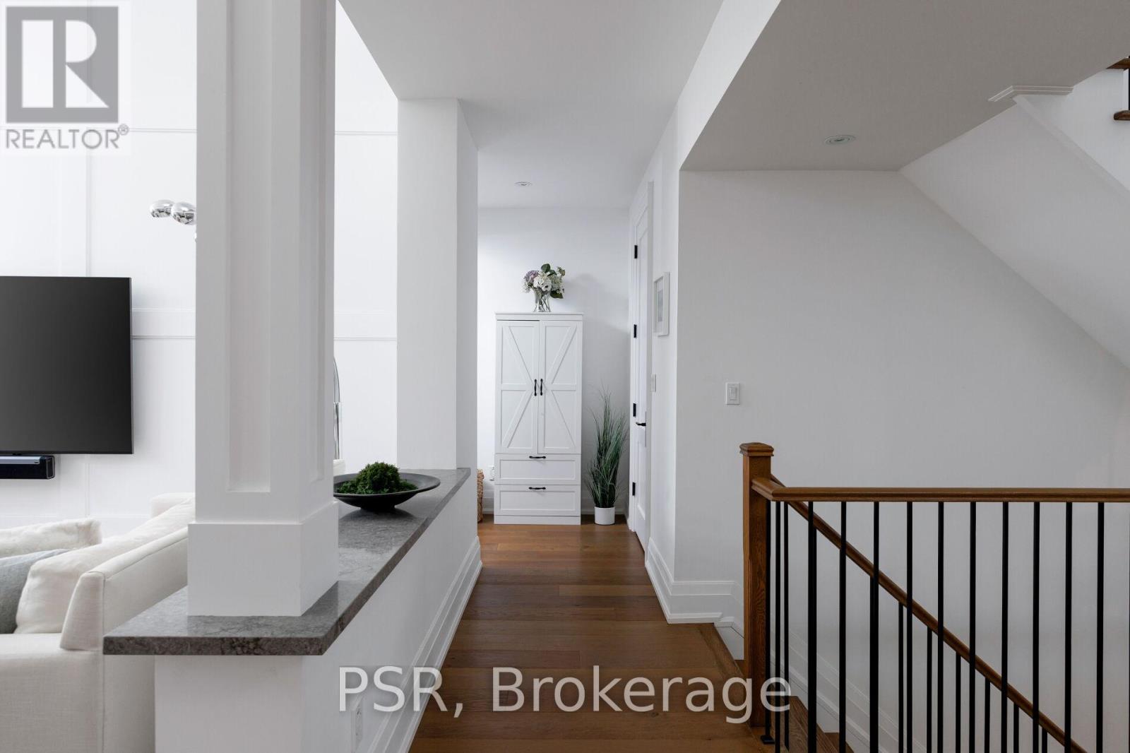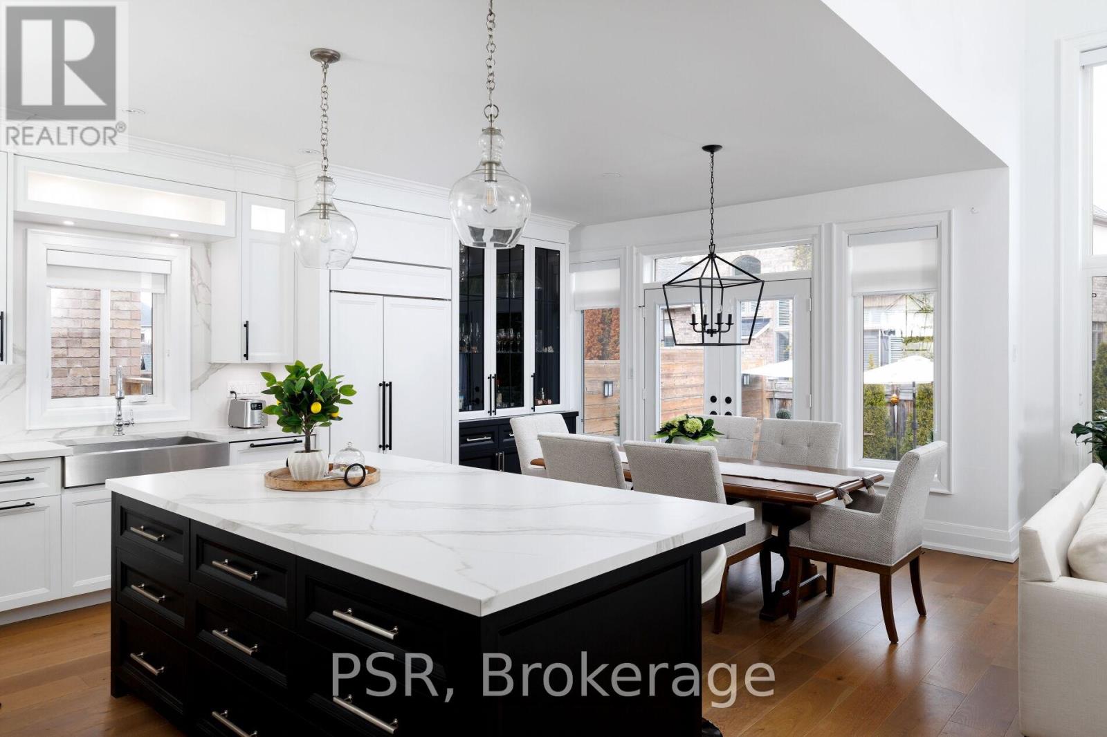 Welcome to 2040 Bingley Crescent, a fully customized Fernbrook bungaloft set on a premium 56 ft ravine lined lot in sought-after Bronte Creek, steps to Bronte Creek Provincial Park. Offering over 3,300 sq.ft. above grade plus a finished lower level, this extensively redesigned home, showcases elevated, designer finishes throughout. Professionally landscaped with irrigation, an oversized driveway and 2-car garage, plus a private, resort-style backyard featuring a Caldera hot tub, cabana shed, maintenance-free turf, hardscaping, and gas BBQ line. Inside, a sun-filled 2-storey foyer with custom millwork leads to an open-concept main floor with office, formal dining, and a stunning Misani kitchen with Wolf & Sub-Zero appliances overlooking a dramatic 2-storey great room. Rare main floor primary retreat with custom his & hers closets and a spa-inspired 7-piece ensuite. Upper level offers 2 bedrooms with California Closets and a 5-piece bath. Finished basement with 9 ft ceilings includes a gym, bar, rec/media space, 4th bedroom, bath, and ample storage. Extensive upgrades throughout including custom millwork, Kohler fixtures, heated floors, designer lighting, new trim, doors, roof, furnace, and A/C. A refined, turnkey offering in one of Oakville's most desirable communities. (id:64974)