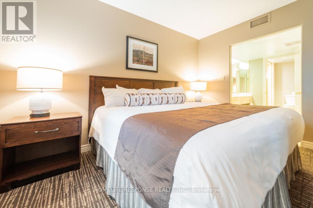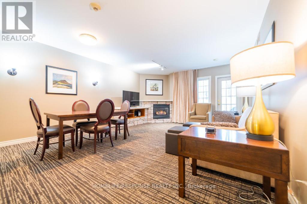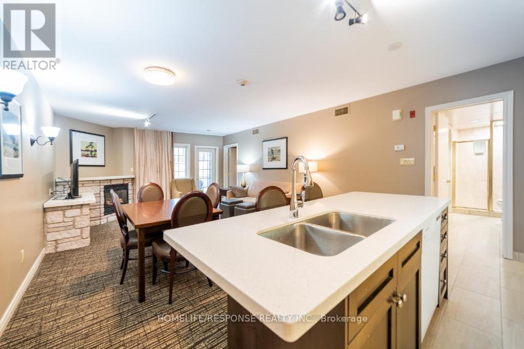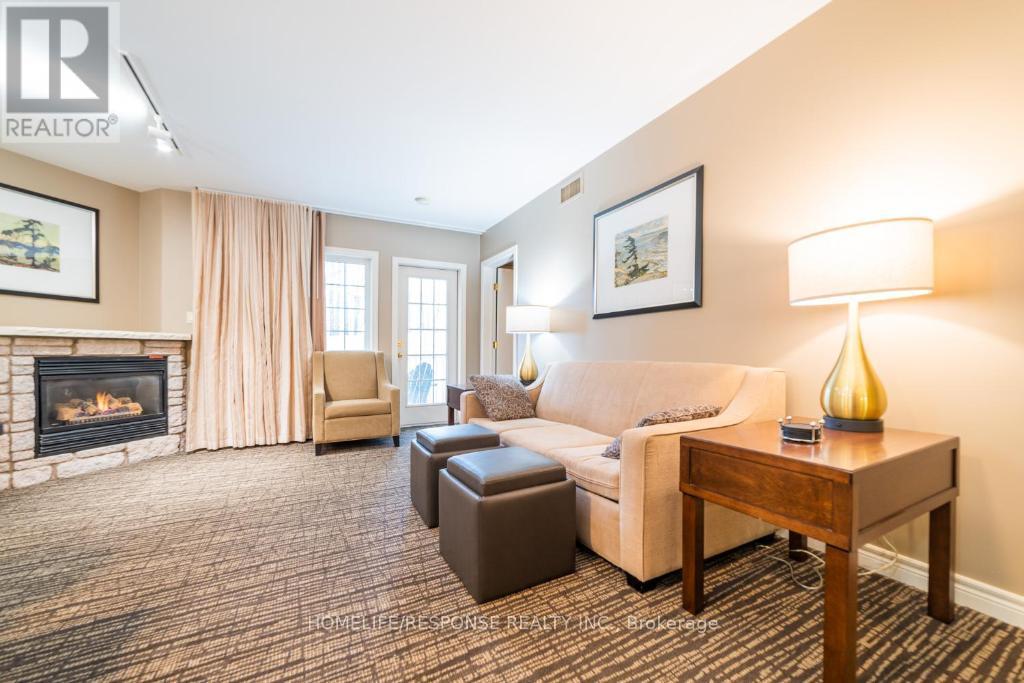 Discover the perfect blend of luxury, flexibility, and location in this beautifully updated 2-bedroom, 2-bathroom Copeland model condo, offering 1,200 sq ft of finished living space and two deeded parking spots at the sought-after Highland Heights resort community. This fully furnished unit is ideal for investors, vacationers, or personal use. It can be enjoyed as a spacious single residence or divided into two separate, self-contained suites, each with its own private entrance perfect for Airbnb, short-term rentals, or multigenerational living. Suite Highlights: Main Suite: One-bedroom with an open-concept living/dining area, Gas fireplace, full kitchen with 7 appliances, in-suite laundry, spa-like bathroom, and large windows with serene forest views. Second Suite: Cozy bachelor-style unit with its own washroom, bar/kitchenette, and private balcony ideal for guests or rental income. Outdoor Space: Two private balconies overlooking treed surroundings and rolling hills. Pet-Friendly & Smoke-Free Exceptional Amenities: Year-round indoor & outdoor pools Hot tub, sauna, fire pits, BBQ pavilion Fitness centre, games room, clubhouse, playground On-site free parking and WiFi Resort Lifestyle & Recreation at Your Doorstep: Live the four-season resort lifestyle with direct access to: Horseshoe Resort, Mount St. Louis Moonstone Ski Resort, and Vettä Nordic Spa Golfing, skiing, mountain biking, hiking, snowmobiling, and treetop trekking Copeland Forest, Bass Lake, and Simcoe County Trails Just 1 hour from the GTA and minutes from Barrie, Orillia, and Craighurst Location Benefits:2 units for the price of one with high Airbnb potential Short drive to Casino Rama, Simcoe County Museum, Hardwood Ski & Bike, and Scenic Caves Free on-site parking, easy access to Hwy 400Bonus Features: In-suite laundry, dishwasher, stove, oven, microwave, fridge Jacuzzi tub, sauna access, air conditioning Total of 4 beds across 2 bedrooms Internet included for both suites (id:64974)