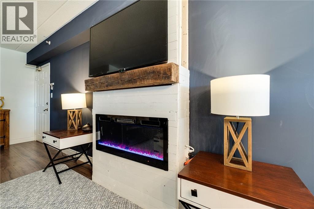 This is the one you have been waiting for! Stunning 1 Bed plus den, 1 Bath unit in the Uptown Orchard Condo’s. The beautiful Hampton model boasts nearly 900 square feet of living space. Completely upgraded throughout with dark flooring, trim, stainless steel appliances(1-year-old), new lighting, laminate flooring in bathroom, new water heater (‘24), zebra blinds throughout. The spacious Kitchen includes all of the modern touches, quartz countertop, stone backsplash, stainless steel farmhouse sink with black matte pull-down faucet sprayer, and patio doors to the balcony. The south-facing view fills the space with an abundance of natural sunlight. The spacious living and dining room area offers enough room for lounging and entertaining complete with newly built fireplace adding a warm focal point to the space. The large primary bedroom offers a double closet, bonus office/sitting area. Freshly updated and functional 4 piece bath features in-suite laundry. The den is perfect for a home office & extra storage. Amenities include a beautiful party room, fitness centre/sauna, and underground parking. One parking space underground #100 is owned with plenty of additional parking for a second vehicle in the parking area above/visitor parking. Locker #37. Unbeatable location walking distance to shops, grocery stores,restaurants, gym, and easy highway access. Low condo fees!! Nothing to do, but move in and enjoy! (id:64974)