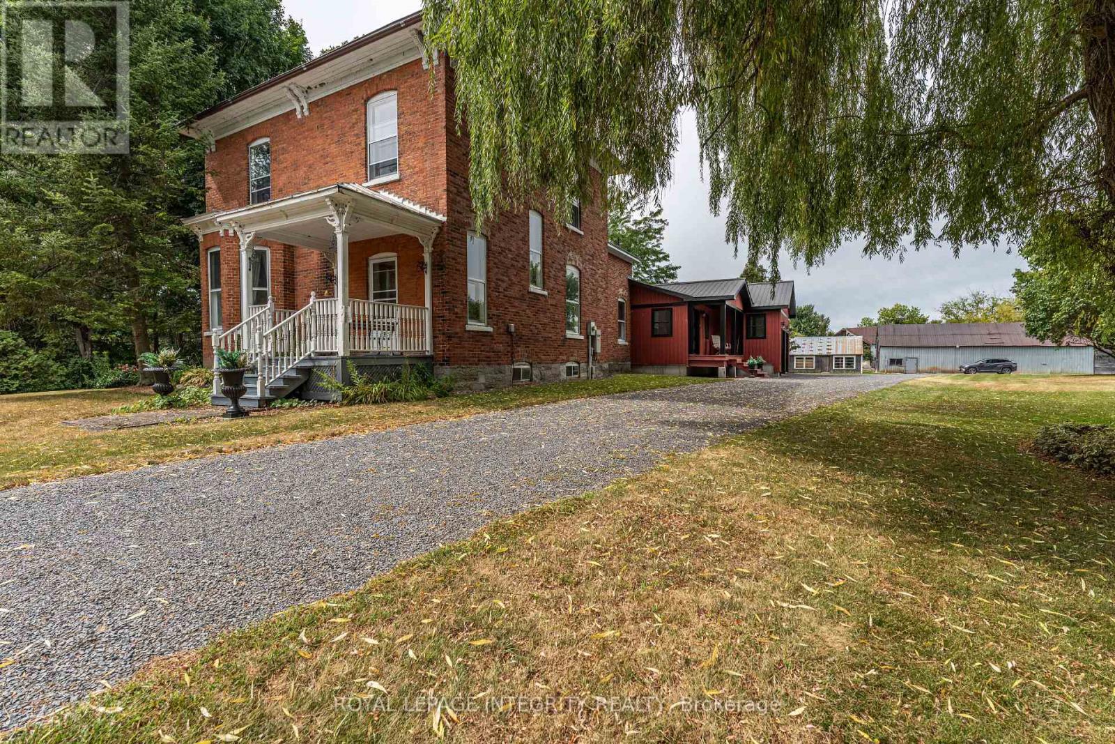 Step back in time with this stunning Century Home (1905) that blends historic charm with modern updates! This spacious 5-bedroom, 2-bath home, sitting on 11.11 acres, features soaring 10-ft ceilings on the main level and 9-ft ceilings upstairs, original woodwork, gleaming hardwood floors, and a grand staircase. The updated custom kitchen (2.5 yrs) boasts abundant cabinetry, a large island, and opens to a bright 4-season sunroom with wraparound windows and propane stove. A main-floor office or bedroom adds versatility. The addition includes an attached double garage, mudroom, laundry, and a second bathroom for convenience. Outside, enjoy privacy along a tree-lined laneway, plus an old barn and multiple outbuildings full of potential. Also a new Generac generator for peace of mind. All this just 2 mins from Lancaster, 30 mins to Cornwall, and 45 mins to Montreal. Perfect for a hobby farm or those seeking peaceful country living with quick access to amenities! Call today for a private viewing. (id:64974)
