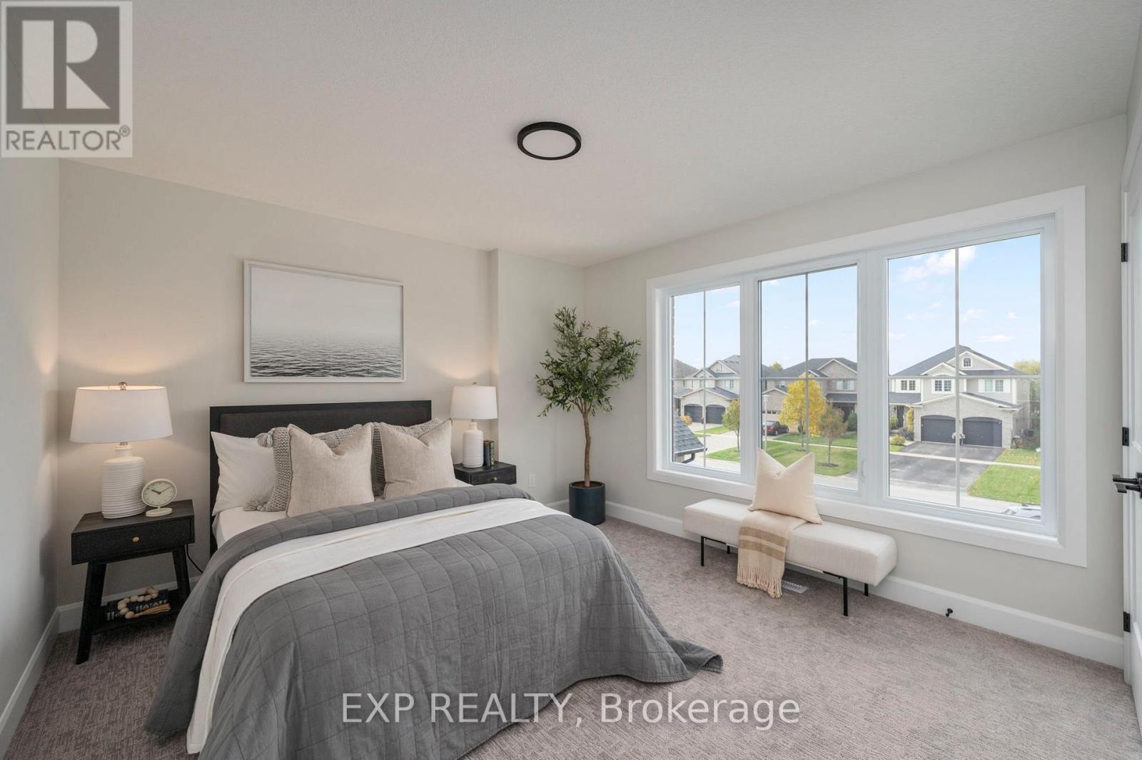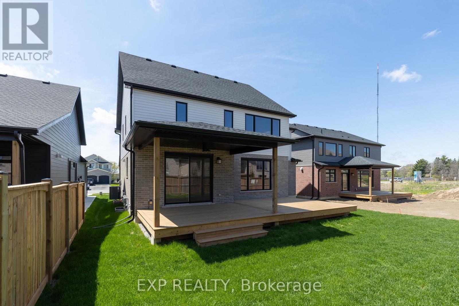 TO BE BUILT: *Price does not include proposed 2026 HST rebates* The Open Sky Exquisite Modern Farmhouse Two-Storey in Byron Village part of The Farmhouse Nine with 55-foot frontage and approx 2890 square feet! This 4 bedroom home combines modern farmhouse design with exceptional features that are hard to find complete with a exterior covered back porch. Meticulously crafted by renowned Clayfield Builders, this home showcases uncompromising quality, exquisite craftsmanship, and attention to detail throughout. Step inside to the spacious open concept layout with Seaside Cabin engineered hardwood. Ideal for professionals, and growing families alike, this 4-bedrooms, 2.5 bath home offers the allure of rustic charm blended seamlessly with contemporary style. The heart of this home is the elegant eat-in kitchen with custom cabinetry, quartz countertops, & a magnificent island. Large windows and sliding glass doors invite abundant natural light and provide access to the covered back porch. The primary bedroom suite is a true retreat, featuring a tray ceilings, walk-in closet & the en-suite bathroom exudes luxury, with quartz countertops, & a walk-in shower with a custom glass enclosure. There is exciting potential in the basement, with a roughed-in bathroom, room for an additional bedroom, a large rec room, and ample storage space allow for personalization and growth. Nestled on a generously sized lot just steps away from Boler Mountain, this residence boasts an extended length garage, and exceptional fixtures and finishes. Notably, the energy efficiency rating surpasses all expectations, providing both comfort and savings. A concrete walkway to the front porch and driveway and to the side garage door. Clayfield is beating records with the air exchange tested for air escaping to the outside and their test results exceed the minimum standard by 50%. The garage is completed painted as well. (id:64974)