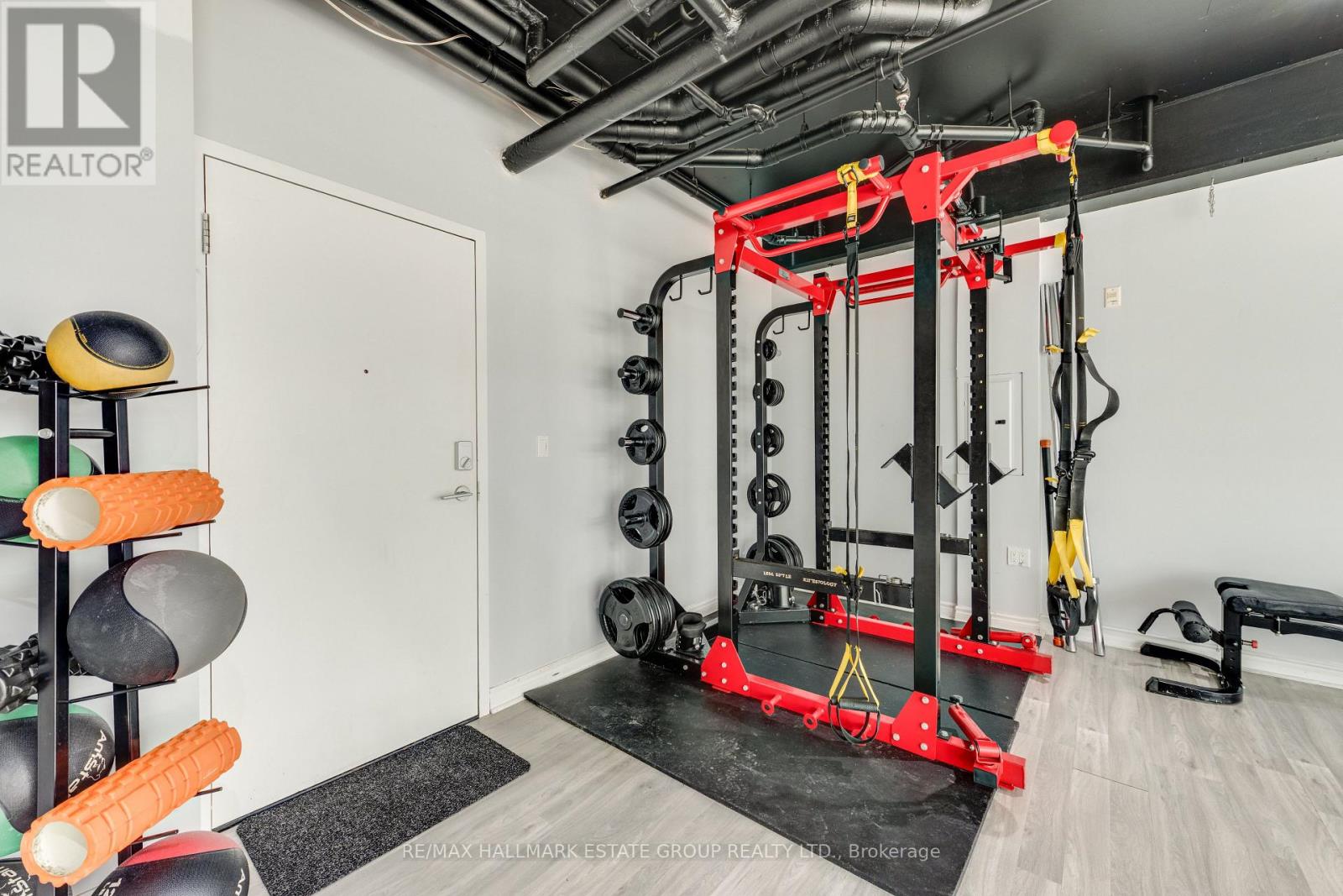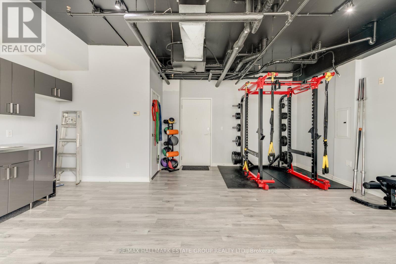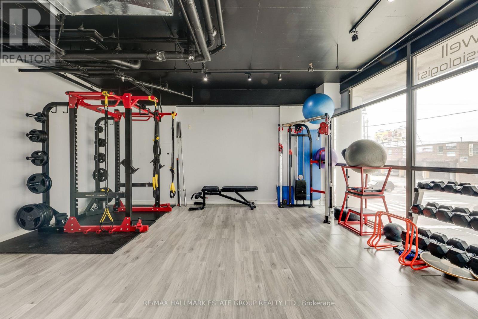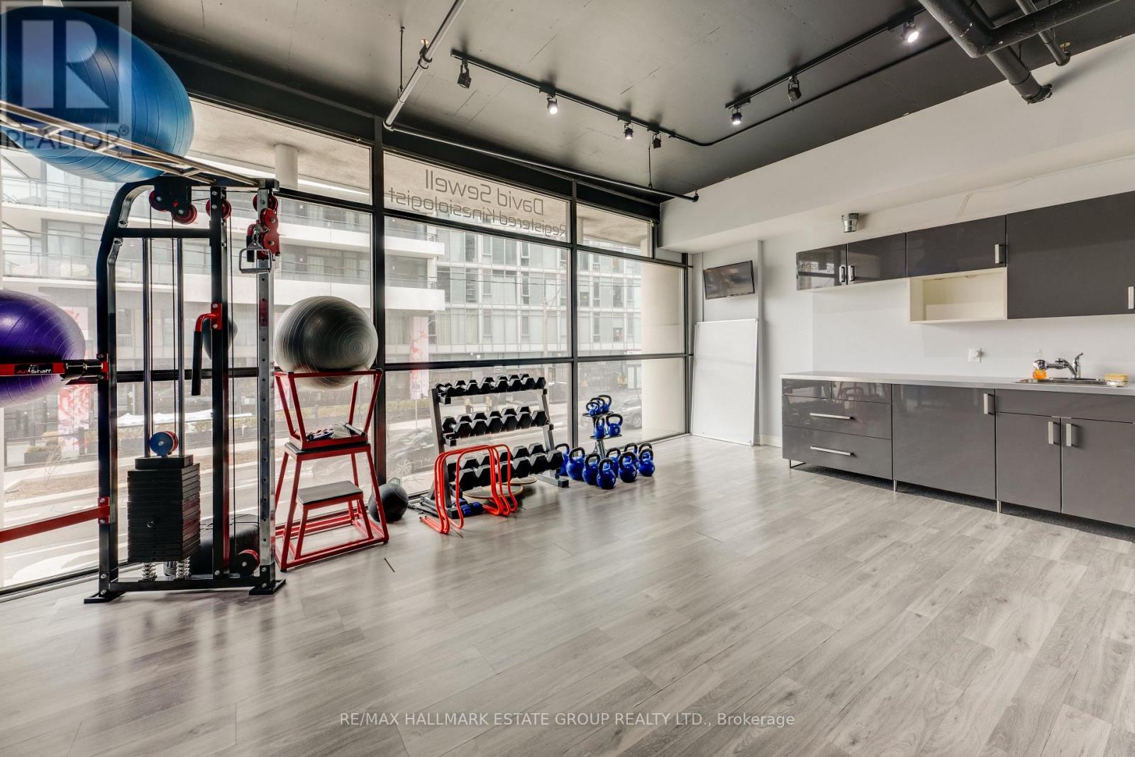 This modern office condo offers a bright, inspiring workspace with floor-to-ceiling windows that flood the unit with natural light. Ideal for a wide range of professional uses, it's a smart opportunity to stop paying rent and invest directly in your business. Interior window advertising is permitted, giving you valuable second-level visibility. The unit features a private bathroom and a practical kitchenette, making it perfectly suited for a work environment. Owners also have access to a bookable lounge equipped with a full-service kitchen, ideal for larger meetings, presentations, or catered events. Maintenance fees are $480.71 per month. Hydro averages approximately $120 per month. Storage locker included. Fitness equipment not included but negotiable. The building includes both commercial and residential units and is situated in a prime downtown Toronto location - steps to public transit and minutes to the QEW, shops, and everyday amenities. A rare chance to secure a modern, turnkey workspace in one of Toronto's most connected neighbourhoods - perfect for elevating your business and your brand. (id:64974)