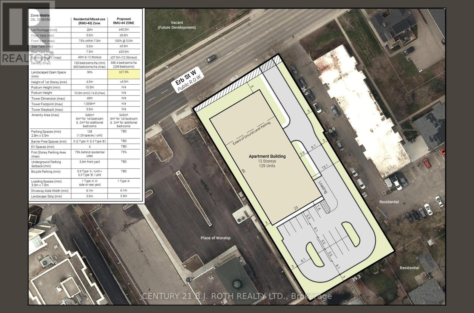 This land assembly, totaling 0.89 acres, presents a compelling development potential opportunity with 3 existing income-generating properties situated in the heart of Waterloos energetic uptown core. In 2024, a development concept was brought forward to the City of Waterloo, outlining a 12-story residential apartment building with 129 units. The plan includes 17 parking spaces located at grade behind the building, complemented by additional underground parking whose quantity has yet to be specified. The project adheres to the area's zoning regulations and complies with both the Official Plan and applicable Zoning By-Laws, including matching the scale and height of surrounding developments. This prime location lies within one of Waterloos most desirable neighborhoods and falls inside the Willis Way Protected Major Transit Station Area (PMTSA), where minimum parking requirements are waived under Bill 185. The vision for the residential development centers around connected urban living, offering future residents immediate access to restaurants, boutiques, entertainment, and cultural attractions. With nearby schools, green spaces, institutions, and modern infrastructure enhancements, this site is exceptionally well-positioned to benefit from long-term growth, sustained demand, and increasing value. The seller and their representative make no guarantees about the property's future use or development potential regardless of any of the favorable information noted. The buyer is fully responsible for investigating all current and future matters related to the property and future development. Image of the 12 story building in the listing is merely a virtual rendering to help give some perspective on what may be possible. (id:64974)