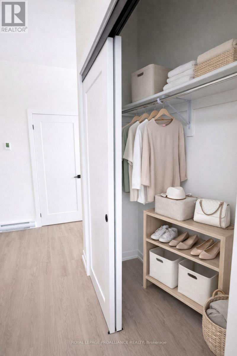 STUDIO24 townhouse condo units in Cobourg's sought after EAST VILLAGE are almost complete! Located a walk or bike ride distance to Lake Ontario's vibrant waterfront, beaches, downtown, shopping, parks and restaurants, an amazing location. Built by Stalwood Homes, these affordable studios are perfect for the first time home buyer, professional or down-sizer. Beautiful modern finishes enhanced with 9 ft ceilings. Open concept living room and stylish kitchen with Stainless Steel appliances. Convenient in suite laundry with a stackable Washer & Dryer. Luxury Vinyl Plank throughout with tiled washroom. Purchaser customizes colours and finishes and also enjoys a $5000 upgrade allowance! Fibre Internet available, HRV for healthy living, heat pump provides primary heating/cooling, owned hot water tank. Lawn Care And Snow Removal included in condo fees, along with one designated parking space and visitor parking is on-site. Easy access to the 401 corridor, convenient Cobourg VIA stop, and just a 45-minute drive to the Oshawa GO. Exterior photo is a virtual rendition, interior photos are virtually staged. (id:64974)