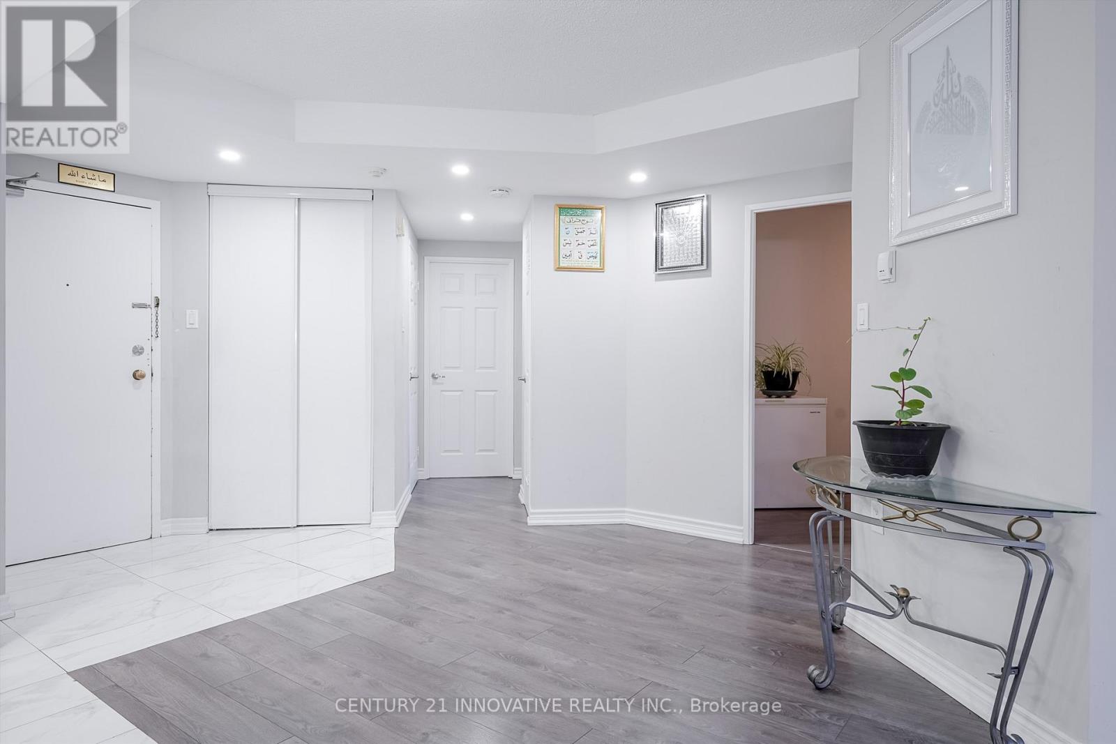 Live the Toronto lifestyle in this fully upgraded 3-bedroom condo! Featuring a modern kitchen with a central island and sleek pot lights, an airy living room with sweeping city views, and a master bedroom with a huge triple-door closet, this home blends style and functionality effortlessly. Extras include a separate ensuite laundry, extra storage, and pristine laminate flooring throughout. Steps from transit, shopping, dining, schools, and places of worship, with quick access to Highway 401 - everything you need is at your doorstep. Perfect for first-time buyers or savvy investors looking for a turnkey property in a prime location. Don't miss out! (id:64974)