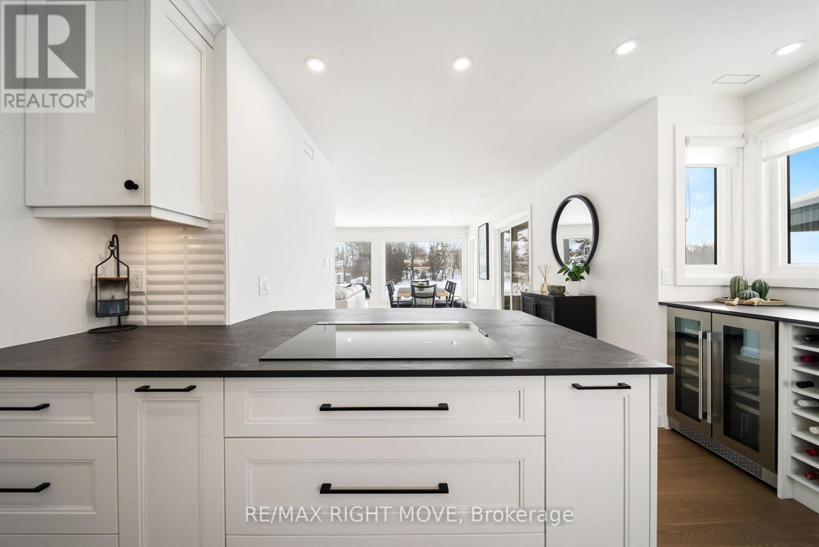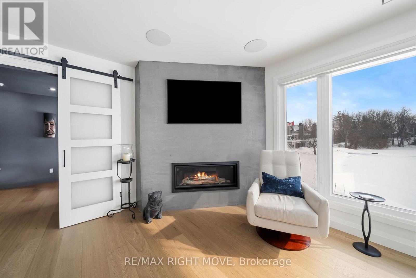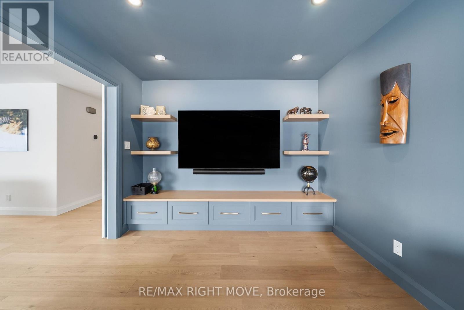 Spectacularly remodelled and exceptionally well finished, this waterfront condominium offers approximately 1,460 square feet of refined living space with breathtaking views of Lake Simcoe from the principal rooms. Extensive renovations were completed in 2023 with careful attention to both function and design, resulting in one of the nicest condominium offerings in Orillia. The kitchen, living, and dining areas are all oriented toward the water, allowing the views to remain the focal point of the home, while a private balcony provides an ideal place to relax and enjoy the lakefront setting.The custom kitchen is both stylish and functional, complemented by quality appliances and a layout well suited for entertaining. The living area features a gas fireplace and in ceiling speakers, creating a comfortable and inviting atmosphere. One of the bedrooms is currently set up as a media room and has been designed specifically for movie nights, while still offering flexibility for other uses. The primary bedroom enjoys a peaceful outlook and custom window coverings. Engineered hardwood flooring, ceramic tile in key areas, custom closets, updated lighting, doors, trim, and hardware reflect the level of care taken throughout the unit. Residents enjoy access to a lakeside pool, spa area with sauna, and social room, along with two parking spaces, one garage and one outdoor, making this a rare opportunity to secure a meticulously updated waterfront condominium with outstanding views and lifestyle appeal. Roger's internet & wifi included in the maintenance fees. The unit comes with it own Boat Slip. (id:64974)