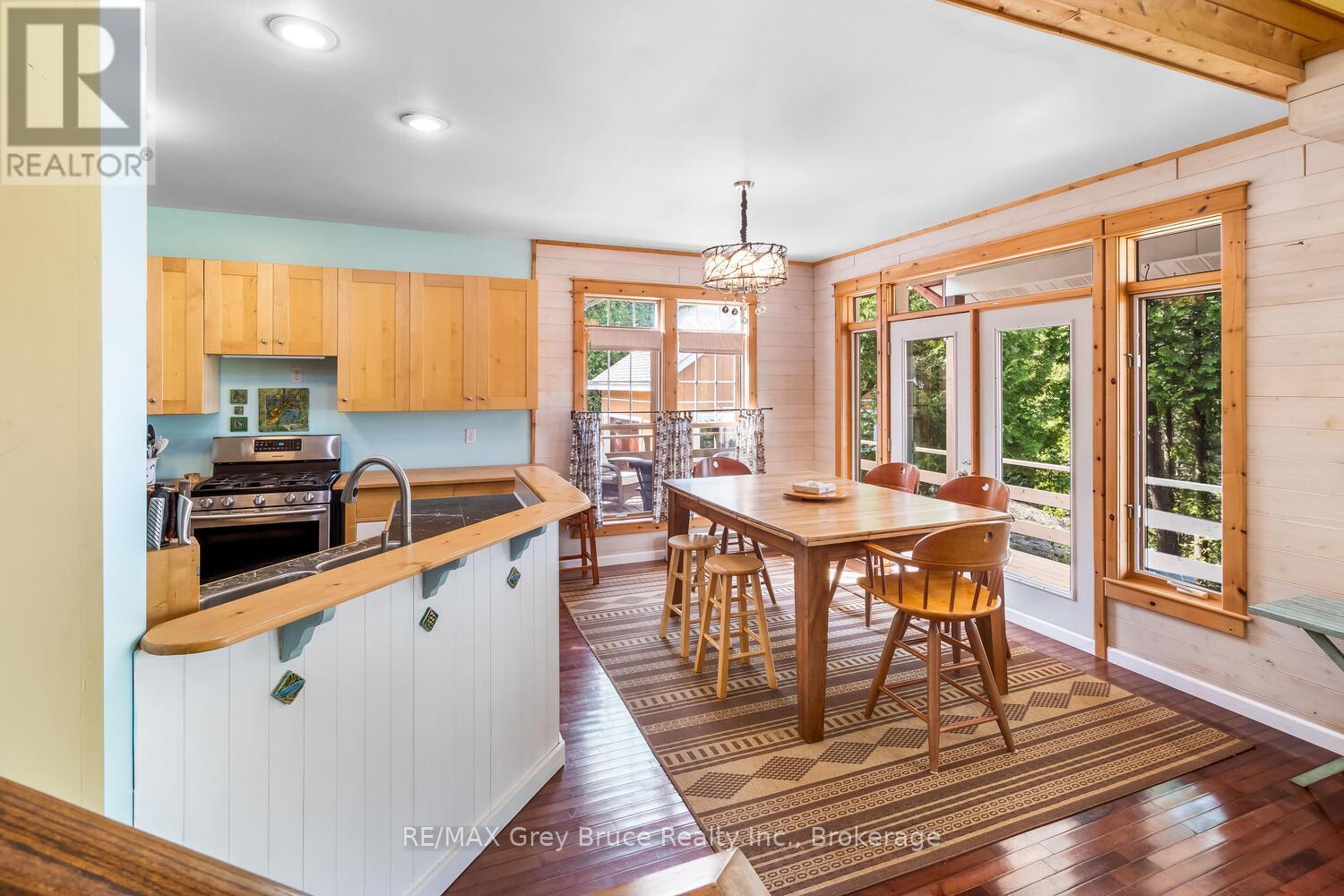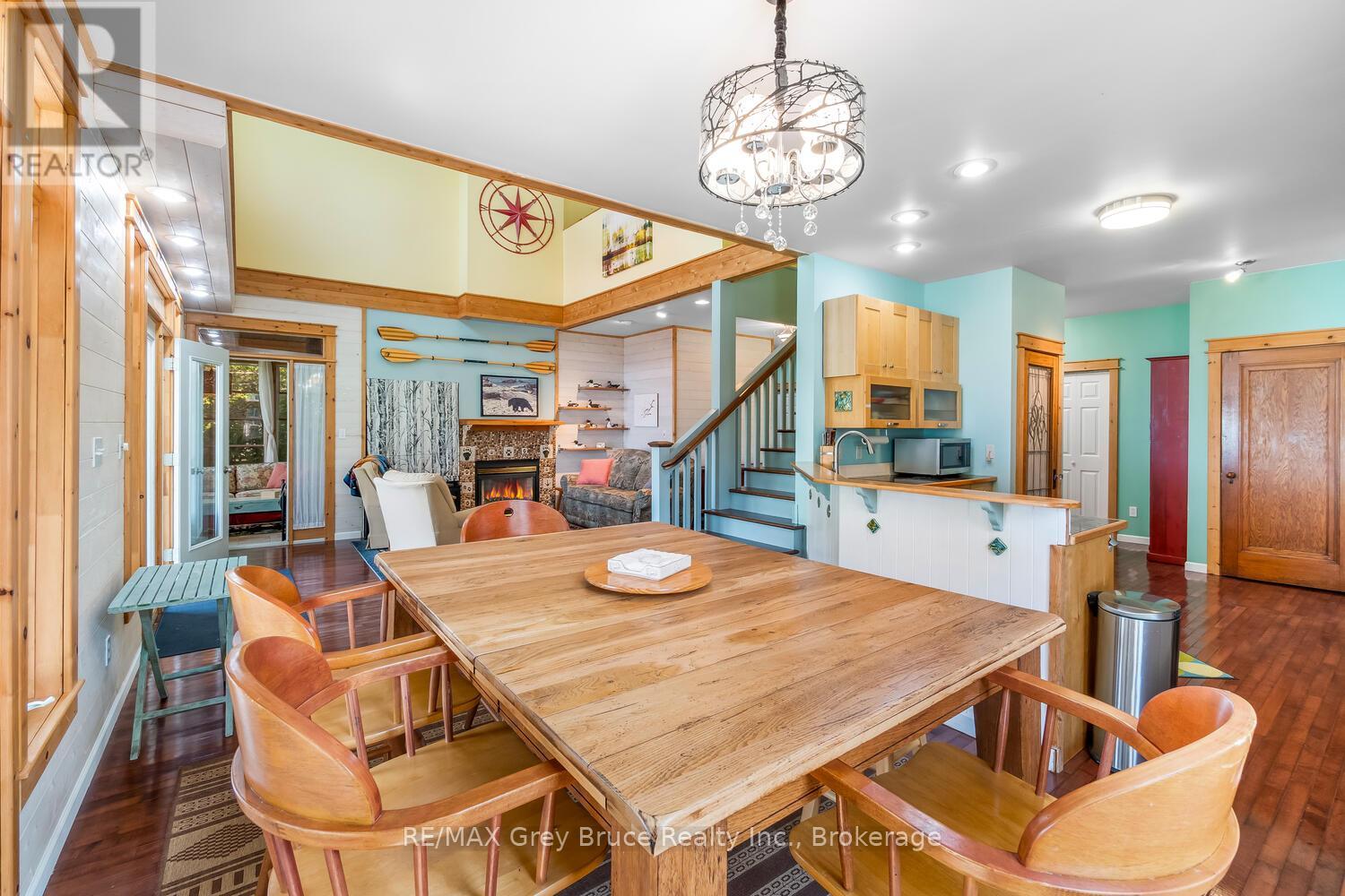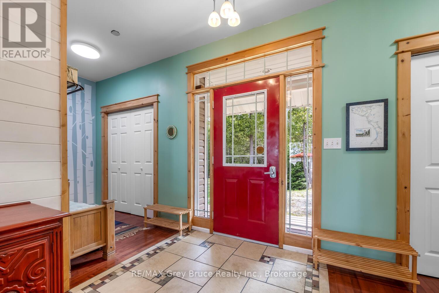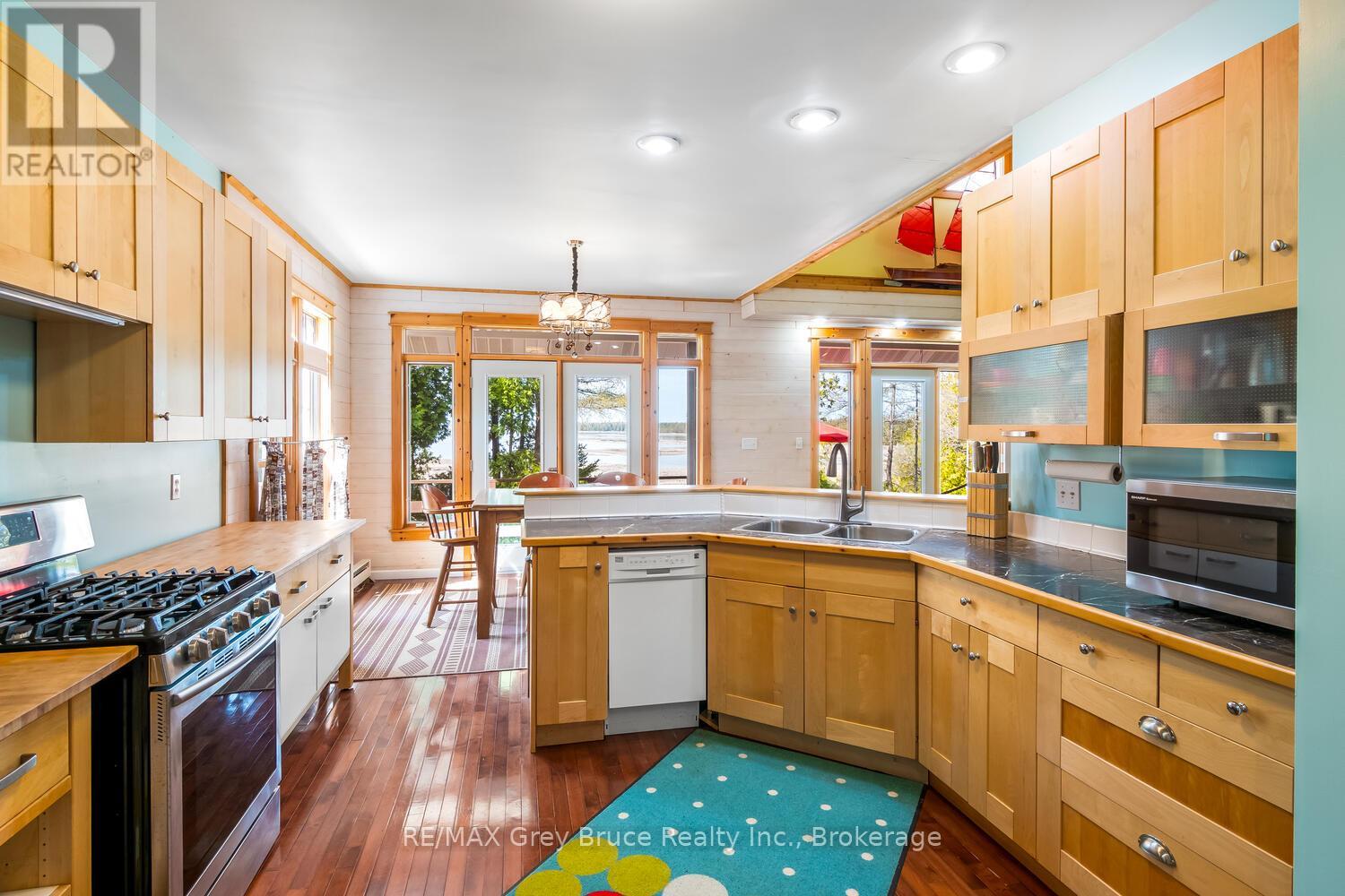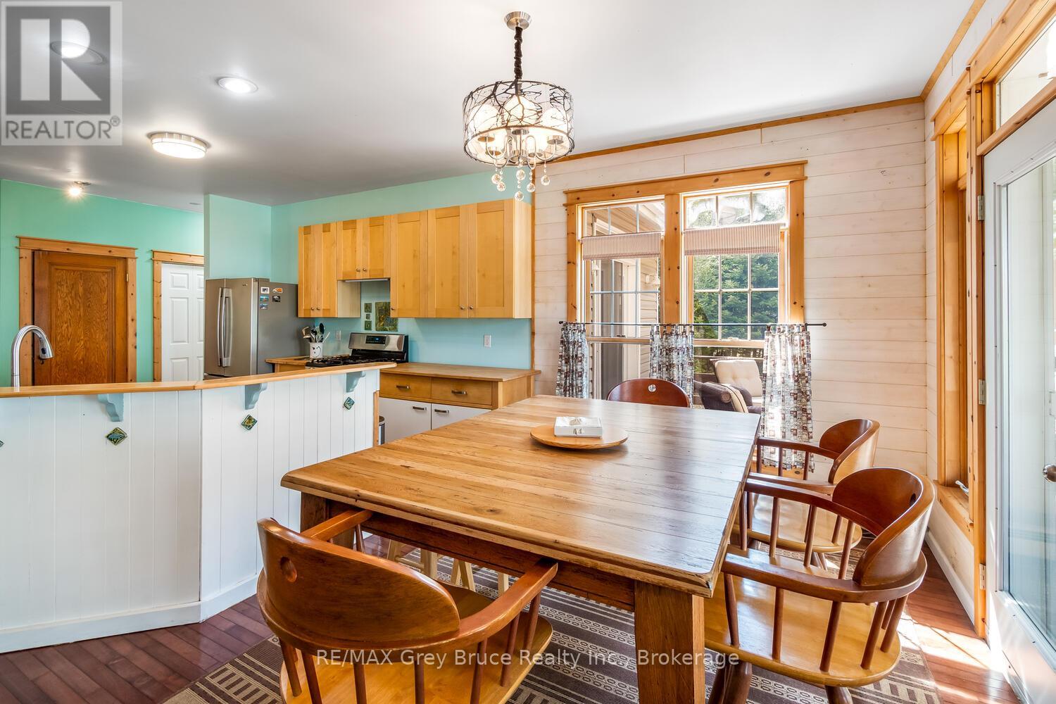 Turn-key Lakefront Home/Cottage with Sandy Shoreline! Your Bruce Peninsula retreat near Tobermory awaits. Offering a rare sandy beach shoreline in a protected cove, this property is perfect for family getaways, weekend retreats or retirement living. Sited a short drive to Tobermory and directly across from the Bruce Peninsula National Park, this property delivers the ultimate four-season recreational lifestyle. Arrive via a winding, tree-lined driveway and step into a serene setting with panoramic lake views and spectacular sunsets. Enjoy outdoor living with expansive decks, a stone waterfront patio, and covered porches - ideal for relaxing, entertaining, or soaking in the natural surroundings. The clean, sandy-bottom waterfront offers easy entry for all ages-perfect for swimming, kayaking, paddleboarding, and endless summer fun. Evenings are made for campfires by the shore, with the gentle sound of waves completing the experience. Inside, this thoughtfully designed 3 bedroom, 2-bathroom home/cottage features a bright kitchen, dining, and living area with vaulted ceilings. A double-sided fireplace adds warmth and ambiance to both the living room and primary bedroom retreat. The main floor includes a spacious secondary bedroom, a full bath, plus a private primary suite with ensuite and walkout to a screened three-season sunroom. A perfect getaway for morning coffee or quiet evenings by the woodstove. The loft-style bedroom is a dream for kids, with space for bunk beds and play, or consider use as a home office, taking in the elevated lake views. Additional features include a detached garage with loft space for storage. Offered fully furnished (turnkey), this is a ready-to-enjoy waterfront property in one of Ontario's premier cottage country destinations. Close to hiking the Bruce Trail, the Grotto, Georgian Bay, and Lake Huron - this is your gateway to adventure and relaxation. (id:64974)