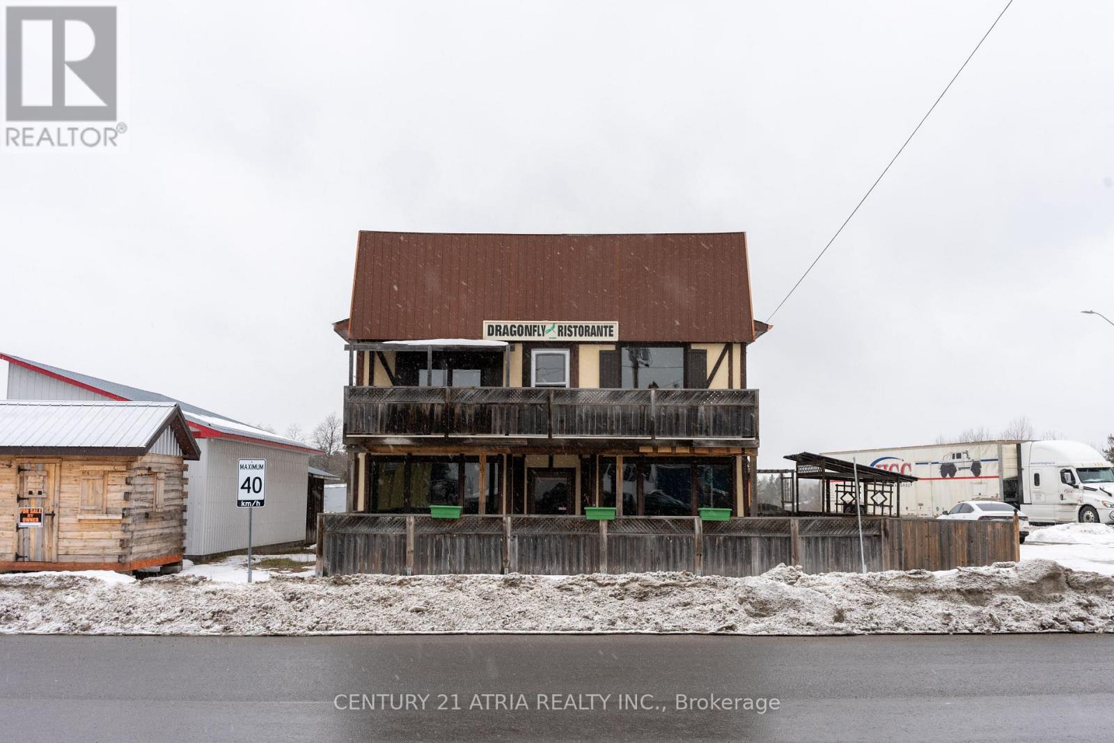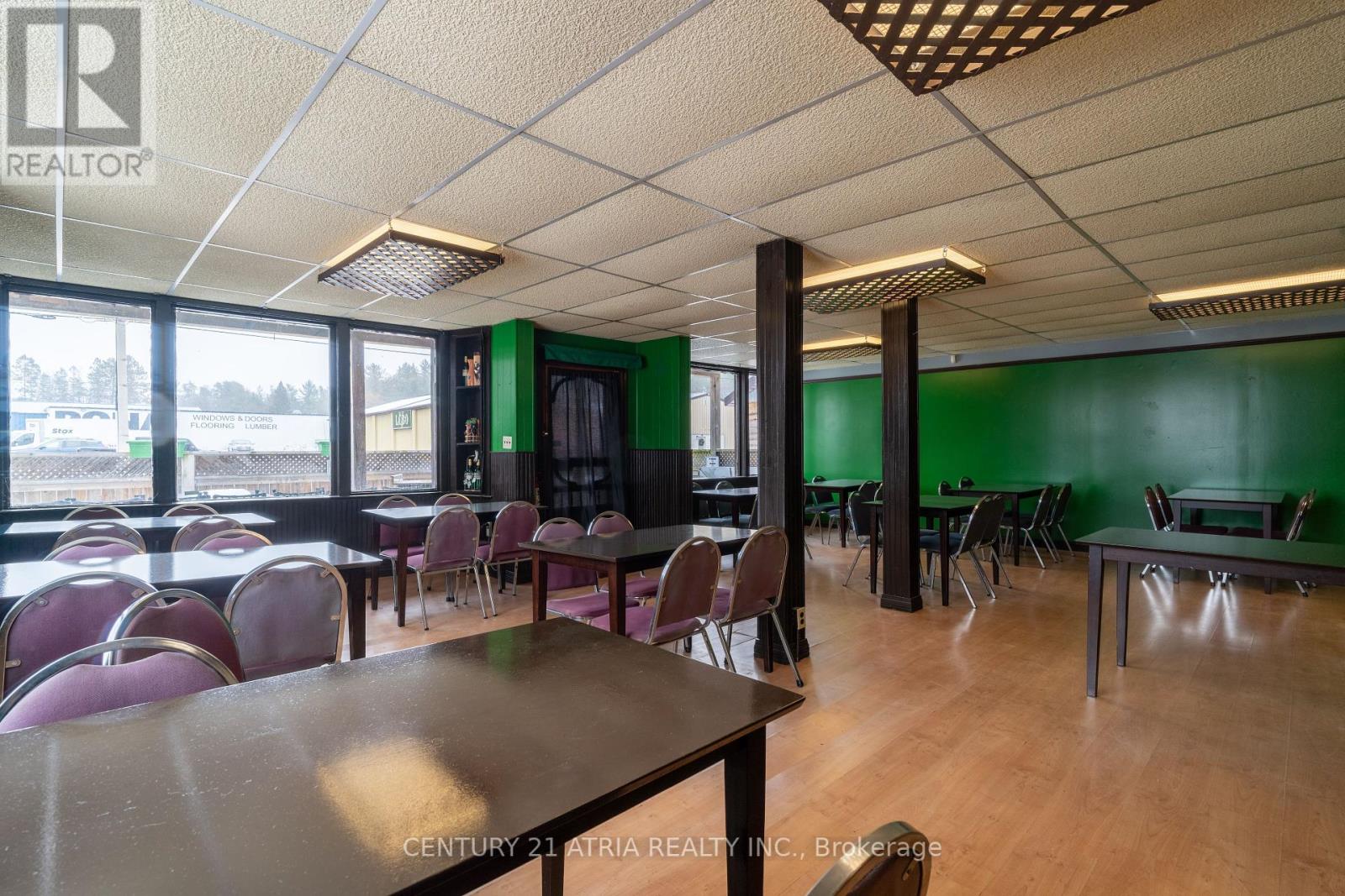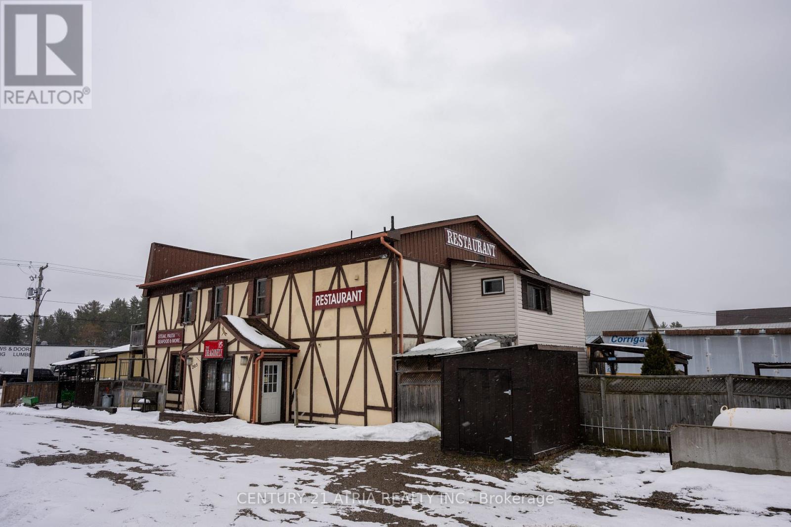 Unlock endless potential with this versatile property, ideal for investors or entrepreneurs! The main floor, previously a bustling restaurant, offers a fantastic space that can easily be brought back to operational status or converted to suit a new business. Its high-visibility location ensures maximum exposure for any venture. The upper floor features a spacious 4-bedroom, 1-bathroom residence, complete with a large outdoor deck perfect for enjoying scenic views. Whether you choose to live in the upper unit or rent it out, this setup offers flexibility and convenience. A full-height basement provides ample storage, catering to both units needs. Utilize the property as a work/live space or maximize income by renting both levels. Don't miss this exceptional opportunity to secure a high-traffic, multi-use property on one of the most traveled routes in the region. The possibilities are endless! **EXTRAS** Selling under Power of sale. (id:64974)