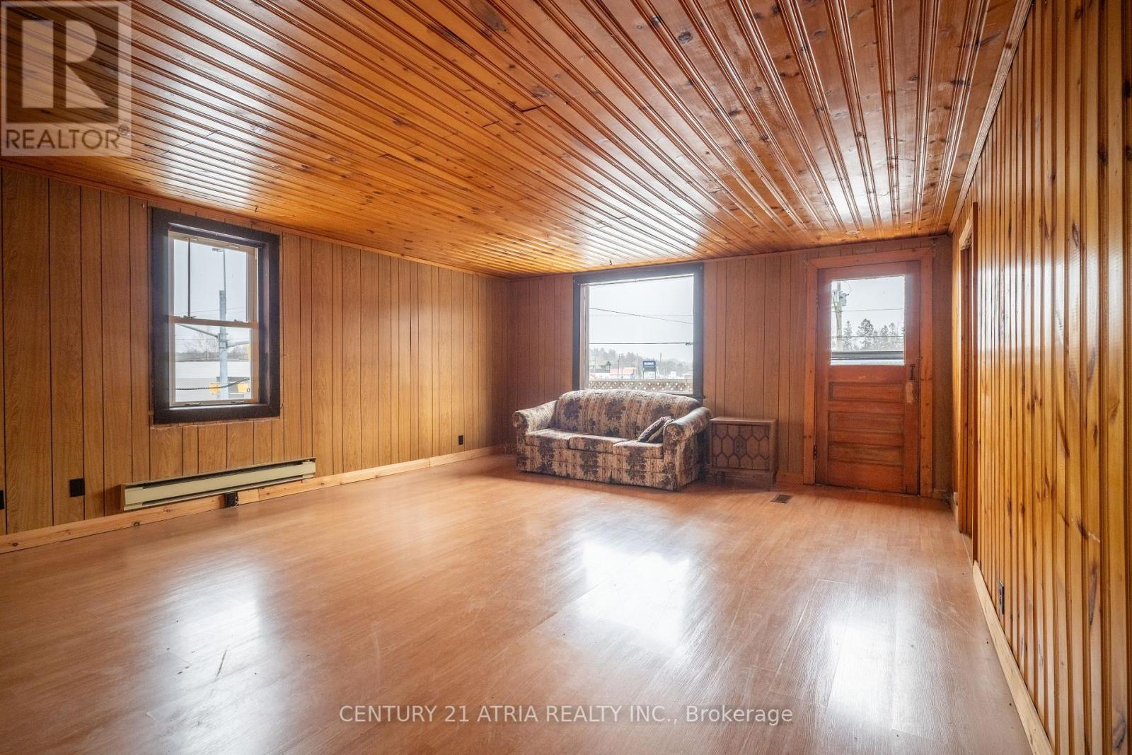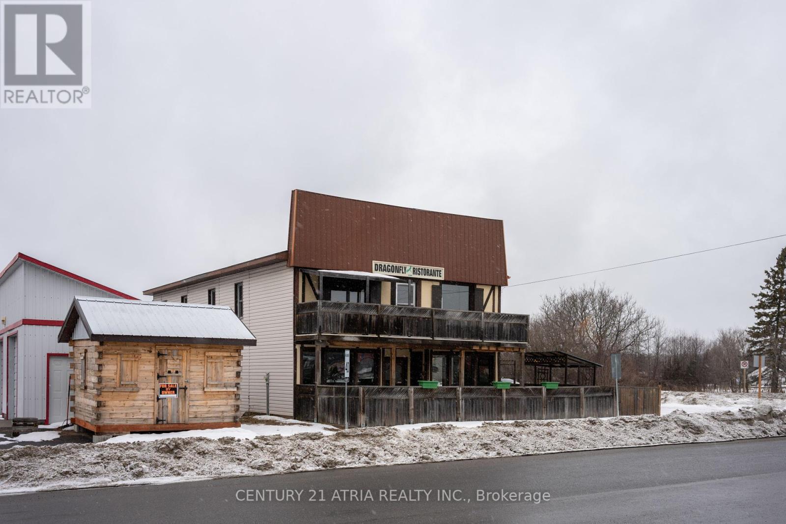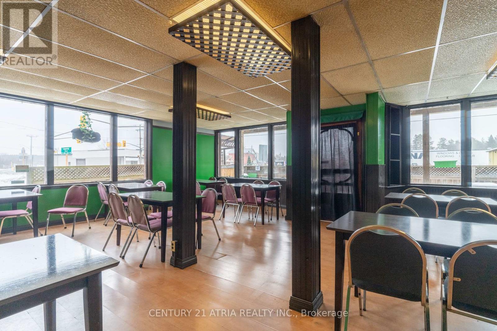 Unlock endless potential with this versatile property, ideal for investors or entrepreneurs! The main floor, previously a bustling restaurant, offers a fantastic space that can easily be brought back to operational status or converted to suit a new business. Its high-visibility location ensures maximum exposure for any venture. The upper floor features a spacious 4-bedroom, 1-bathroom residence, complete with a large outdoor deck perfect for enjoying scenic views. Whether you choose to live in the upper unit or rent it out, this setup offers flexibility and convenience. A full-height basement provides ample storage, catering to both units needs. Utilize the property as a work/live space or maximize income by renting both levels. Don't miss this exceptional opportunity to secure a high-traffic, multi-use property on one of the most traveled routes in the region. The possibilities are endless! **EXTRAS** Selling under Power of sale. (id:64974)
