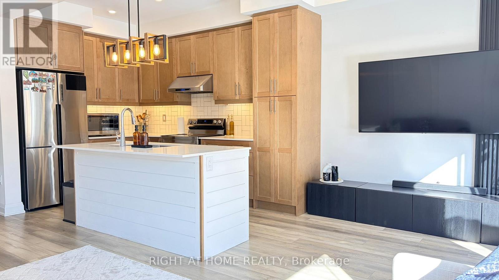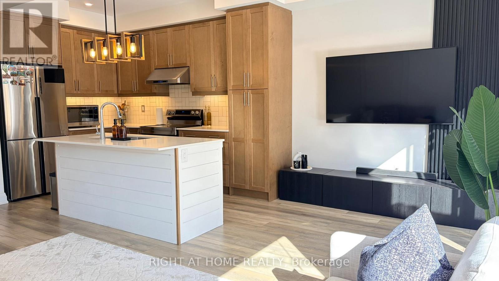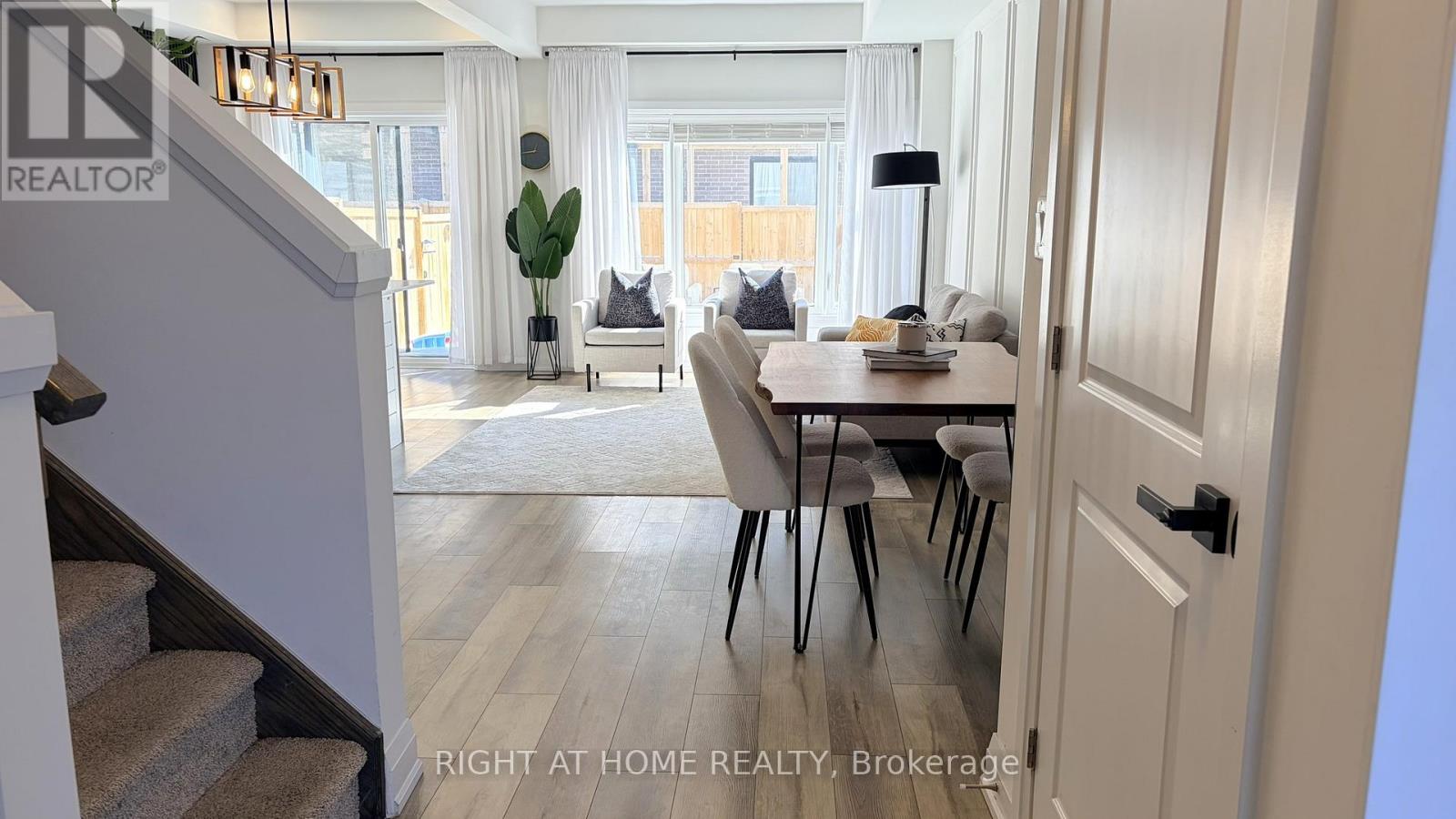 Welcome to this exceptional 3-bedroom, 2.5-bath freehold end-unit townhome built in 2022 by renowned Losani Homes. With only one owner since 2023, this property has been meticulously cared for and thoughtfully upgraded throughout. Boasting approx. 1,900 sq. ft of living space (above & below grade combined). This house offers the feel of a detached home thanks to its oversized 1.5-car garage with EV charger outlet installed, extra-wide driveway, and end-unit design, this home stands out for style, space, and functionality. The main floor features 9 ft ceilings, elegant wainscoting, and an open-concept layout filled with natural sunlight. A modern kitchen showcases quartz countertops, quality finishes, and a bright breakfast area overlooking the backyard. Pot lights on all floors - inside and outside - create a warm and inviting ambiance day and night. Upstairs, enjoy three spacious bedrooms including a large primary suite with a walk-in closet and a beautifully upgraded ensuite with quartz counters. The convenience of upper-level laundry adds to the home's practicality. The finished basement provides additional living space and offers potential to be converted into a future rentable suite. Step outside to a fully fenced backyard, complete with a stylish floating deck, perfect for relaxation and outdoor entertaining. Located in a family-friendly Brantford community close to parks, trails, schools, shopping, and major roadways, this home offers the perfect blend of comfort, modern features, and great curb appeal. This is truly a move-in-ready home that checks all the boxes, come see it in person and experience everything it has to offer! (id:64974)
