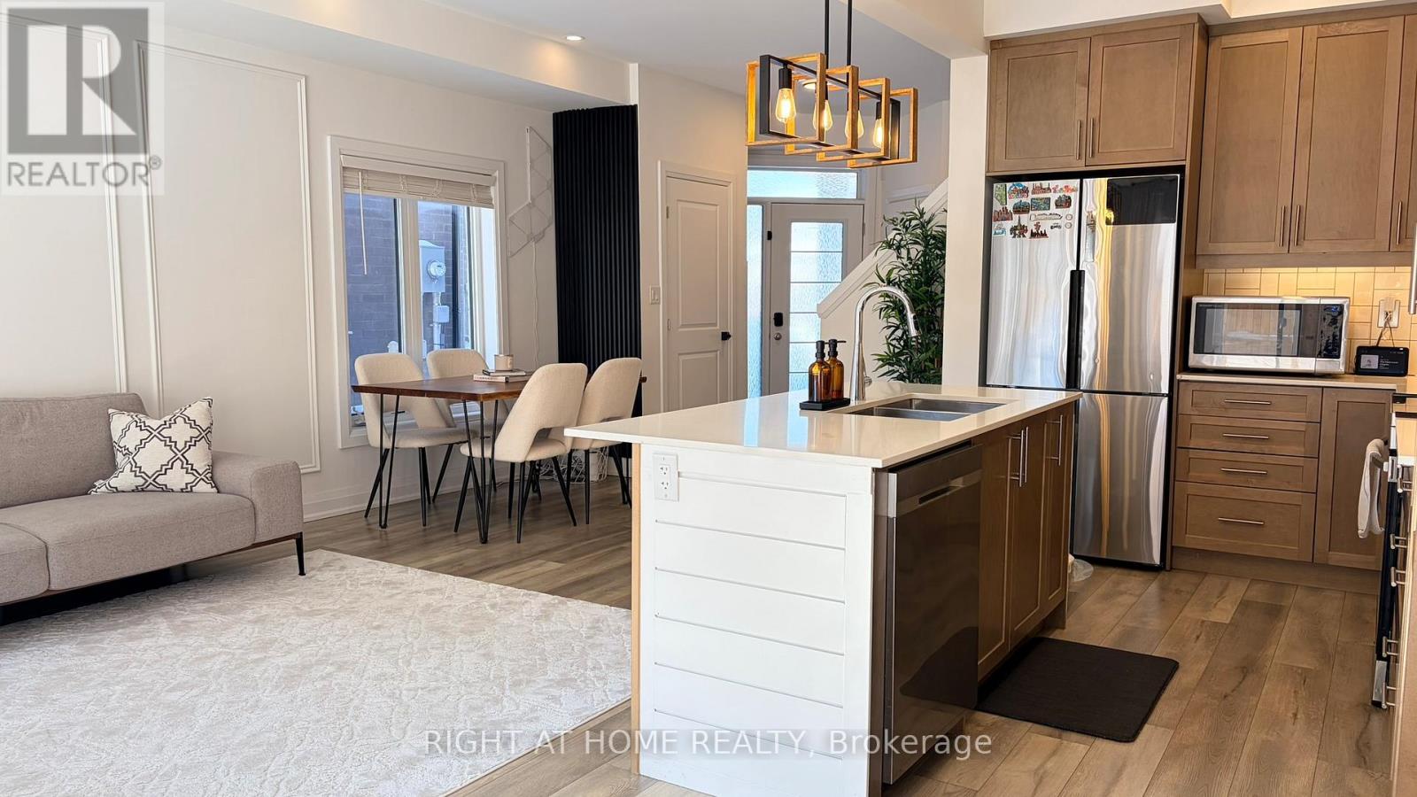 Welcome to this exceptional 3-bedroom, 2.5-bath freehold END-UNIT townhome built in 2022 by renowned Losani Homes. With only one owner since 2023, this property has been meticulously cared for and thoughtfully UPGRADED throughout. Boasting approx. 1,900 sq. ft of living space (above & below grade combined). This house offers the feel of a detached home thanks to its oversized 1.5 - CAR GARAGE with EV CHARGER outlet installed, EXTRA-WIDE driveway, this home stands out for style, space, and functionality. The main floor features 9 ft CEILING, elegant wainscoting, and an open-concept layout filled with natural sunlight. A modern kitchen showcases QUARTZ countertops, quality finishes, and a bright breakfast area overlooking the backyard. POT LIGHTS on all floors - inside and outside - create a warm and inviting ambiance day and night. Upstairs, enjoy three spacious bedrooms including a large primary suite with a WALK-IN closet and a beautifully upgraded ensuite with quartz counters. The convenience of UPPER LEVEL LAUNDRY adds to the home's practicality. The FINISHED BASEMENT provides additional living space and offers potential to be converted into a future RENTABLE SUITE. Step outside to a fully FENCED BACKYARD, complete with a stylish FLOATING DECK, perfect for relaxation and outdoor entertaining. Located in a family-friendly Brantford community close to parks, trails, schools, shopping, and major roadways, this home offers the perfect blend of comfort, modern features, and great curb appeal. This is truly a move-in-ready home that checks all the boxes, come see it in person and experience everything it has to offer! (id:64974)