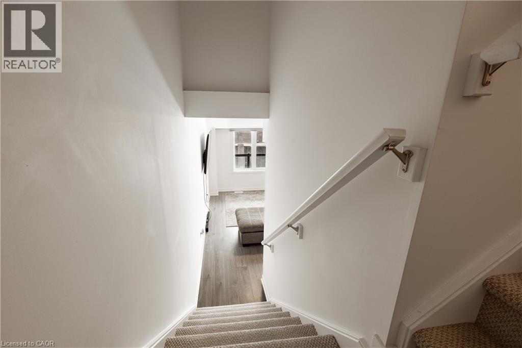 Welcome to 2-205 West Oak Trail, Kitchener! This modern and spacious 2-bedroom, 1.5-bath stacked townhome, newly built in 2022, is located in the desirable South Huron community and boasts a clean, modern aesthetic. This bright end-unit home offers just shy of 1,450 sq. ft. of living space. The home greets you with a bright and spacious foyer at the front entrance. This first level also boasts inside entry from the private garage, a convenient hall closet, and a large utility room providing bonus storage space. Heading up to the main floor, you’ll find an open-concept layout featuring a modern kitchen complete with stainless steel appliances, plenty of counter space, and ample cabinetry. The living and dining areas are filled with natural light thanks to the end-unit location and large windows. Off the dining area is a walk-out to a large balcony that spans the entire main floor. A main floor half bath completes the level. Upstairs, the primary bedroom features a walk-out deck and a spacious walk-in closet. This level also offers a large linen closet, a full bathroom, a generously sized second bedroom, and convenient laundry facilities. Located in a prime, newer neighbourhood, this townhome is walking distance to schools and parks, close to public transportation, shopping, trails, and restaurants, and just minutes from Conestoga College. Enjoy quick access to the beautiful Huron Natural Area and easy connections to Highway 401 and Highway 8. Perfect for professionals, couples, or small families seeking modern living in a great location, this home is move-in ready and available as early as April 1(just in time to enjoy the spring and summer weather with the windows open and the fresh air streaming in). (id:64974)