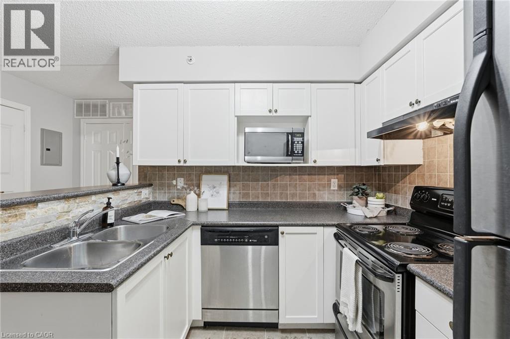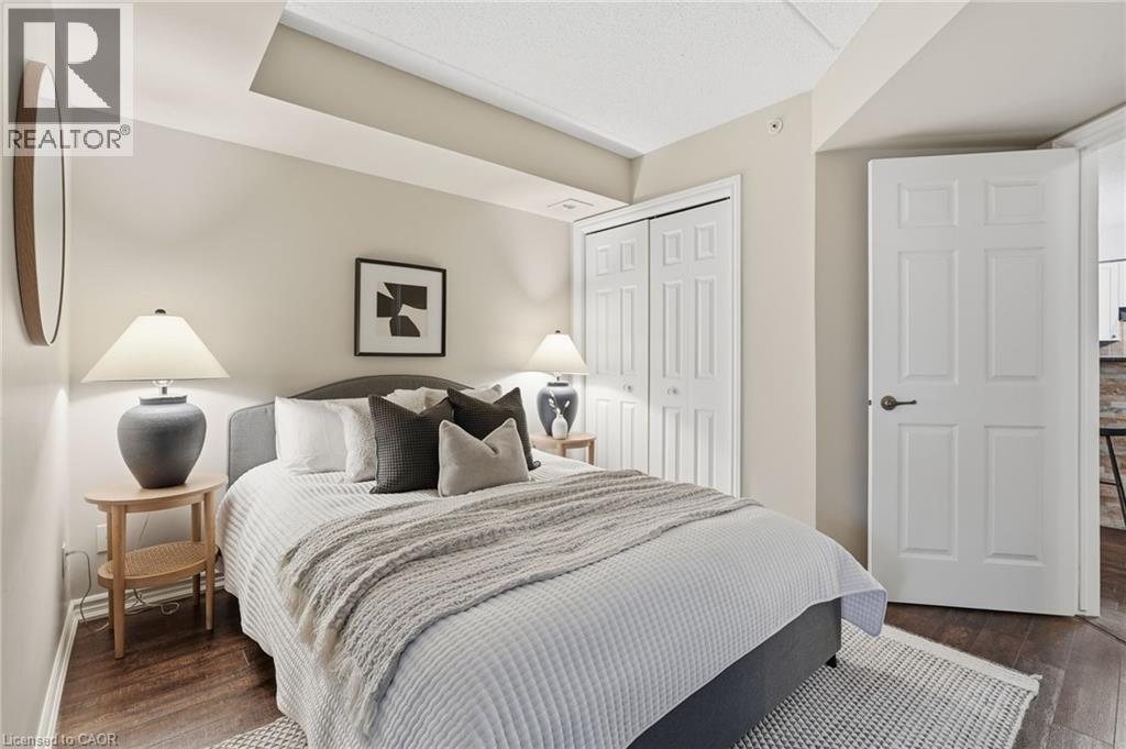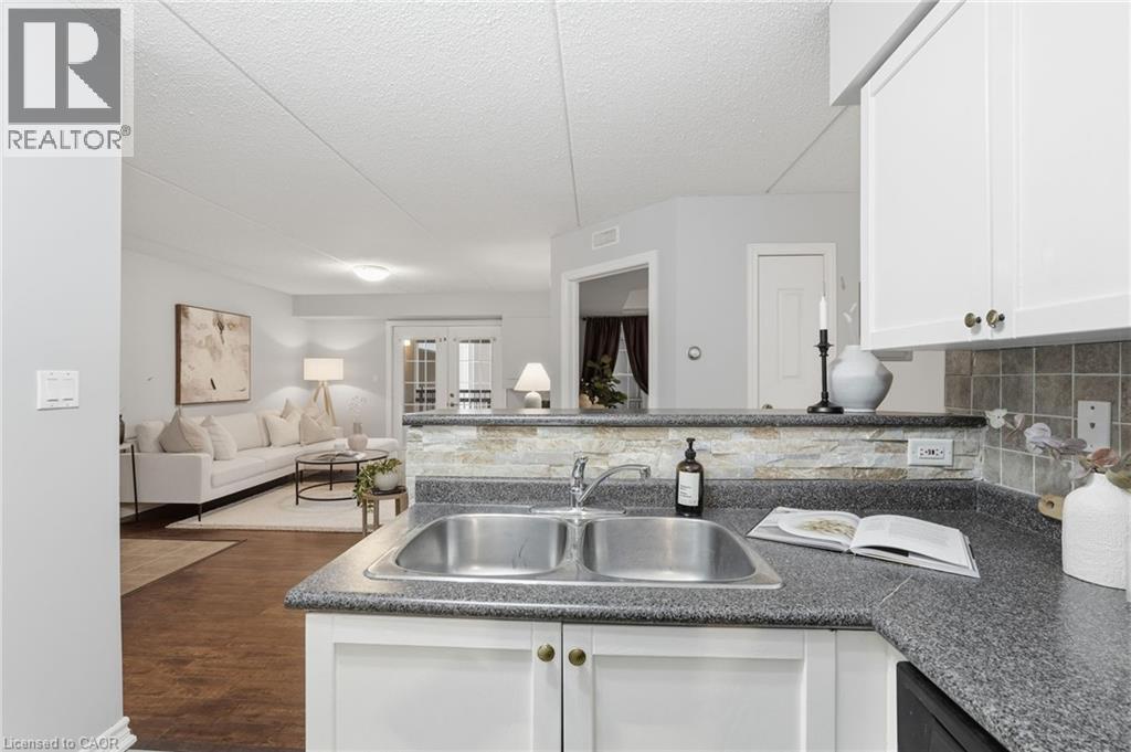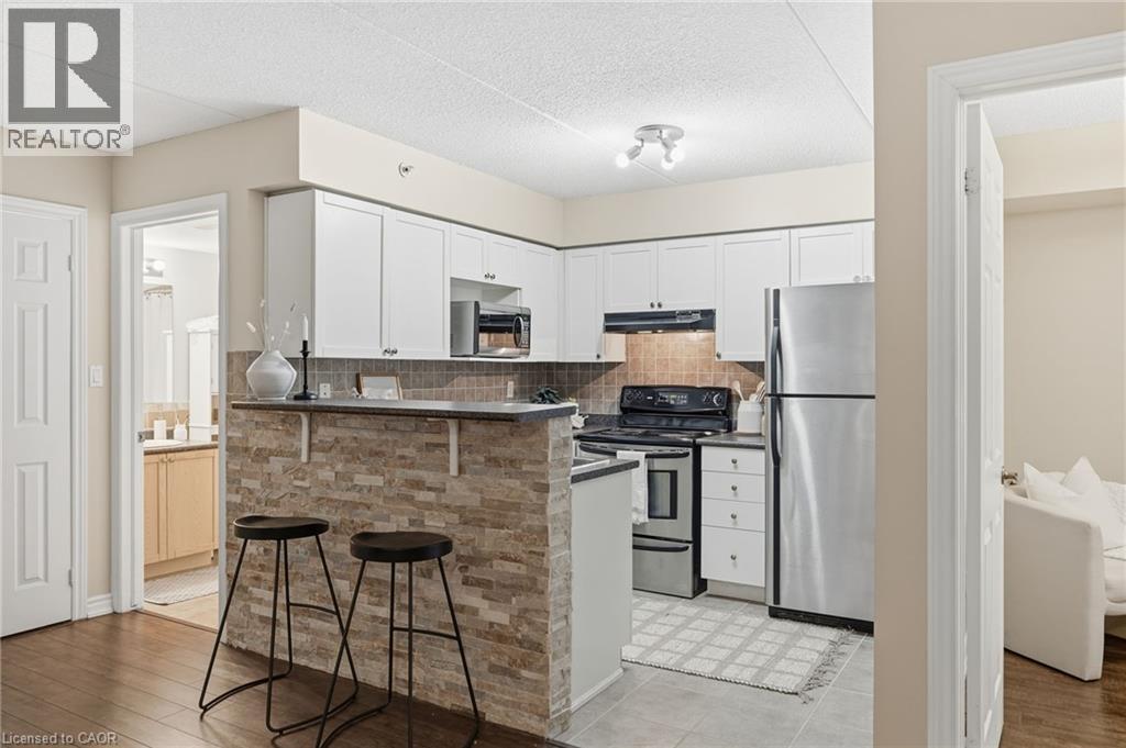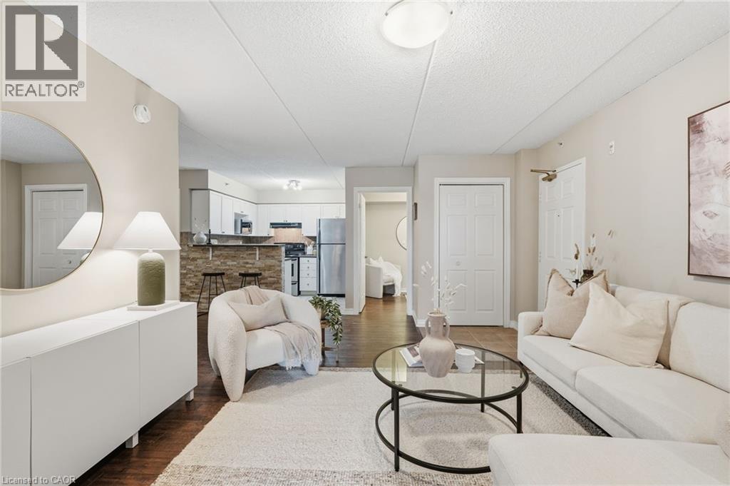 1 YEAR OF CONDO FEES PREPAID BY THE SELLER. Stylish, low-maintenance living in the heart of Burlington! This modern 1 bedroom plus den, 1 bathroom unit is the perfect fit for young professionals looking to own their first home or retirees seeking comfort, convenience, and lifestyle. Located just minutes from the QEW and Hwy 407, commuting is a breeze while being steps to restaurants, cafes, and all the shopping you need means keeping your time spent in the car to a minimum. Bright kitchen cabinetry and sleek laminate flooring throughout the main living space make this space fresh and move in ready. The spacious den provides an ideal work from home space or hobby room. Other conveniences include in-suite laundry, 1 underground parking space, and 1 locker for extra storage. Plus an additional bonus storage room can be found on the balcony for added convenience. Plenty of visitor parking means friends and family can drop by anytime. Residents also enjoy access to a fitness centre and party room, ideal for socializing or staying active without ever leaving home. Whether you’re working downtown, hybrid, or remote, this is a smart move in a fantastic location! Don't miss this opportunity to simplify your life without sacrificing style, comfort, or location! (id:64974)