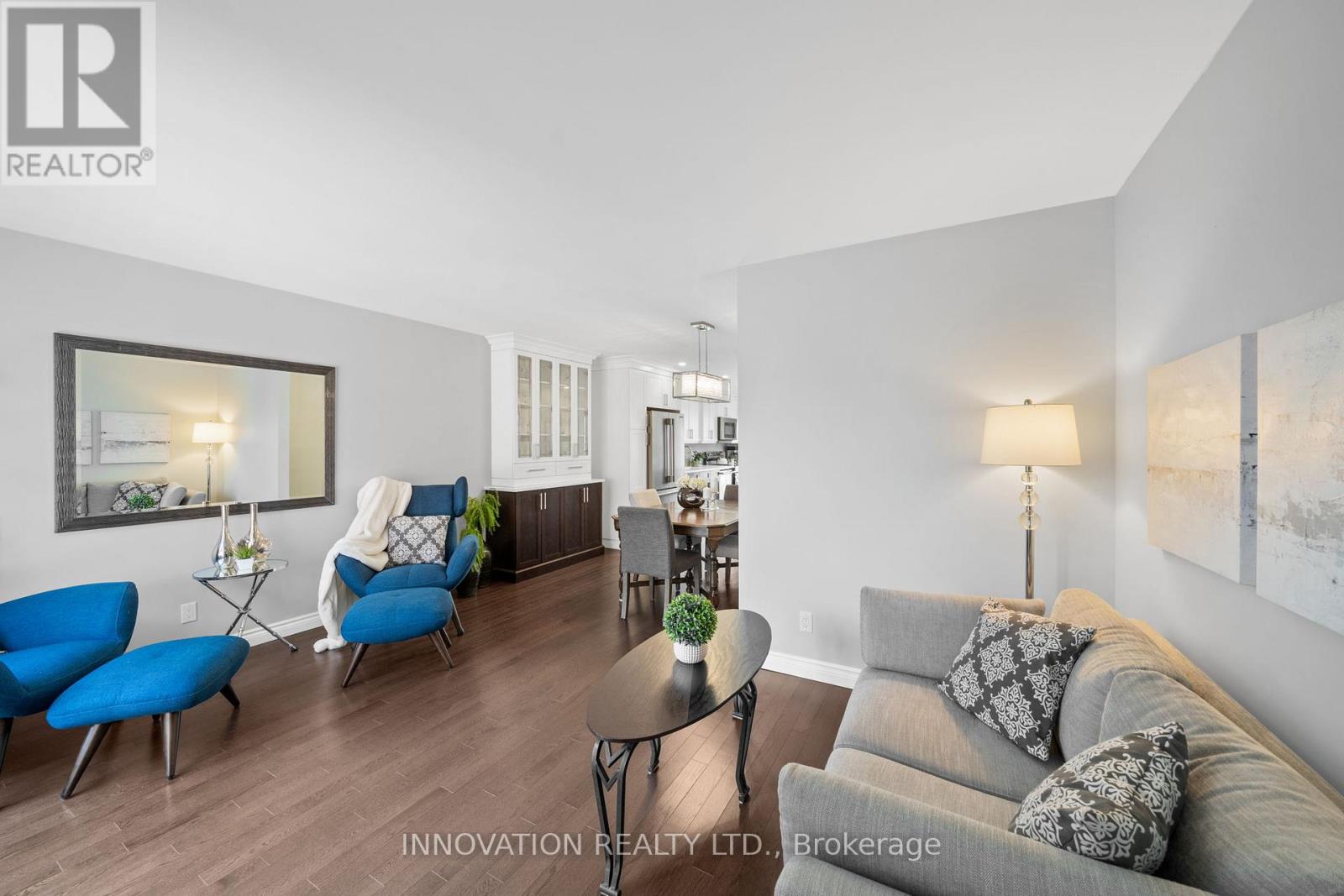 This beautiful and inviting home offers an exceptional blend of comfort, functionality, and charm in a prime location-just steps to shopping, parks, schools, trails, and everyday amenities. Bright and spacious with an excellent open-concept layout, it features a wonderful flow between the living room, dining room, and kitchen-perfect for both everyday living and effortless entertaining. The adjacent family room adds warmth and style with a beautiful fireplace feature wall, creating the perfect space to relax or gather. The stunning renovated kitchen is the heart of the home, showcasing elegant white cabinetry, quartz countertops, a stylish backsplash, and a functional island with seating for four. Enjoy ample storage, generous counter space, and convenient access to the backyard-ideal for seamless indoor-outdoor living.The home offers well-sized bedrooms, including a primary retreat complete with a walk-in closet and a private 3-piece ensuite. The finished lower level provides excellent additional living space with a large den, cork flooring, and plenty of storage-perfect for a home office, recreation area, or guest space. Mature trees beautifully frame the property, leading to a double car garage and interlock walkway. A durable steel roof adds long-term value and peace of mind with its exceptional longevity. You'll love everything this home has to offer. (id:64974)