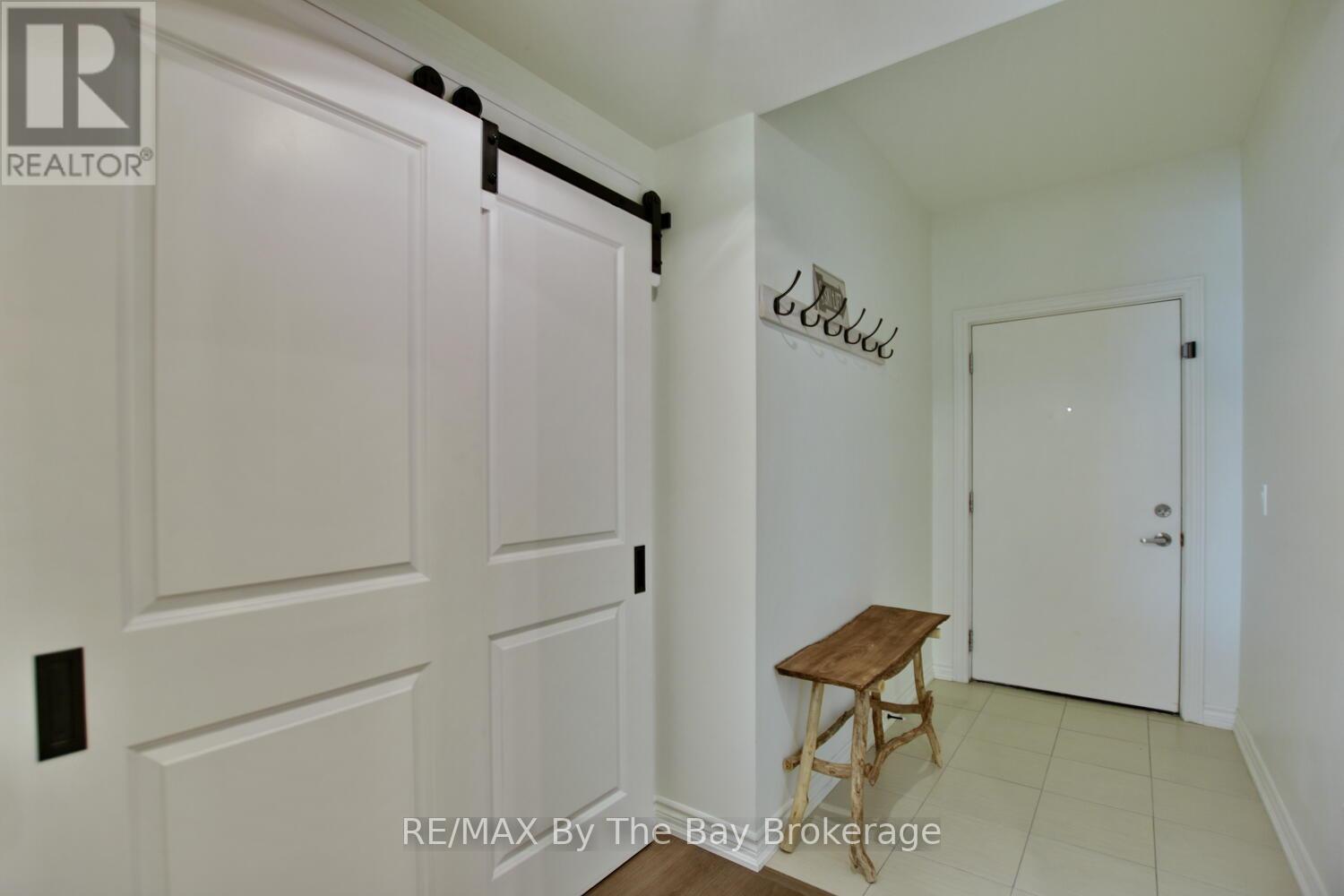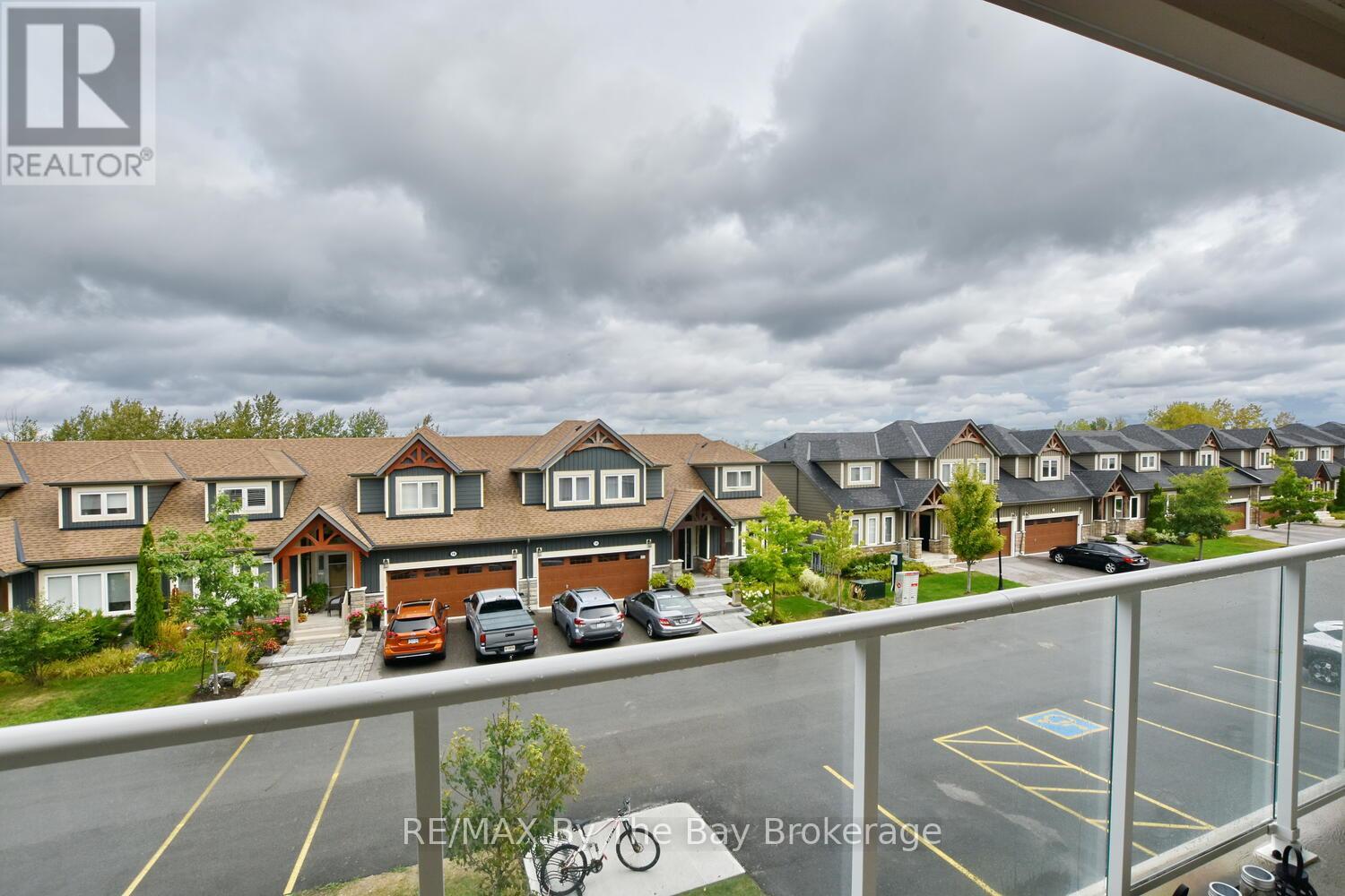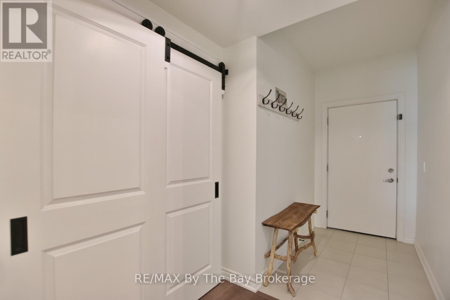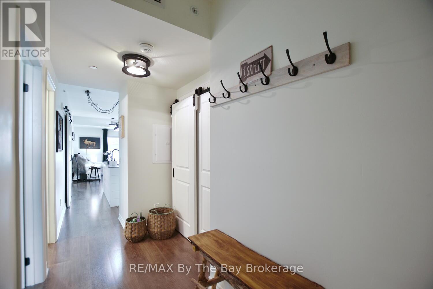 Welcome to Maintenance-Free Condo Living in the Heart of Collingwood. Discover the charm of Collingwood's sought-after Blue Fairway community with this beautifully appointed 2-bedroom, 2-bathroom condo. Perfectly situated just steps from the stunning Cranberry Golf Course, this condo offers the ultimate blend of luxury, comfort, and convenience. Step inside to an open-concept layout designed for modern living complete with beautiful upgraded lighting, barn doors and window coverings. The stylish upgraded kitchen features a large island, stainless steel appliances, accent lighting and custom cabinetry with updated hardware which is ideal for casual meals or entertaining guests. The bright living room with its cozy fireplace and dining area flows seamlessly together, creating a warm and inviting space. Both bedrooms are generously sized, and the spa-inspired bathrooms offer a touch of everyday indulgence. Extend your living outdoors on the spacious patio with serene distant views of the golf course and Blue Mountain in the distance. Practical touches include elevator access for easy grocery trips, underground parking, and a convenient storage locker. Residents enjoy exclusive access to the outdoor pool and recreation centre, making this the perfect four-season destination. Located close to restaurants, shopping, biking trails, golf, and skiing, this condo places the best of Collingwood right at your doorstep. (id:64974)