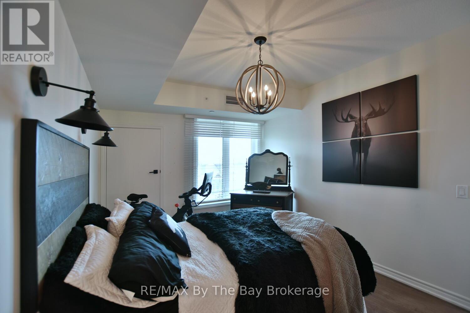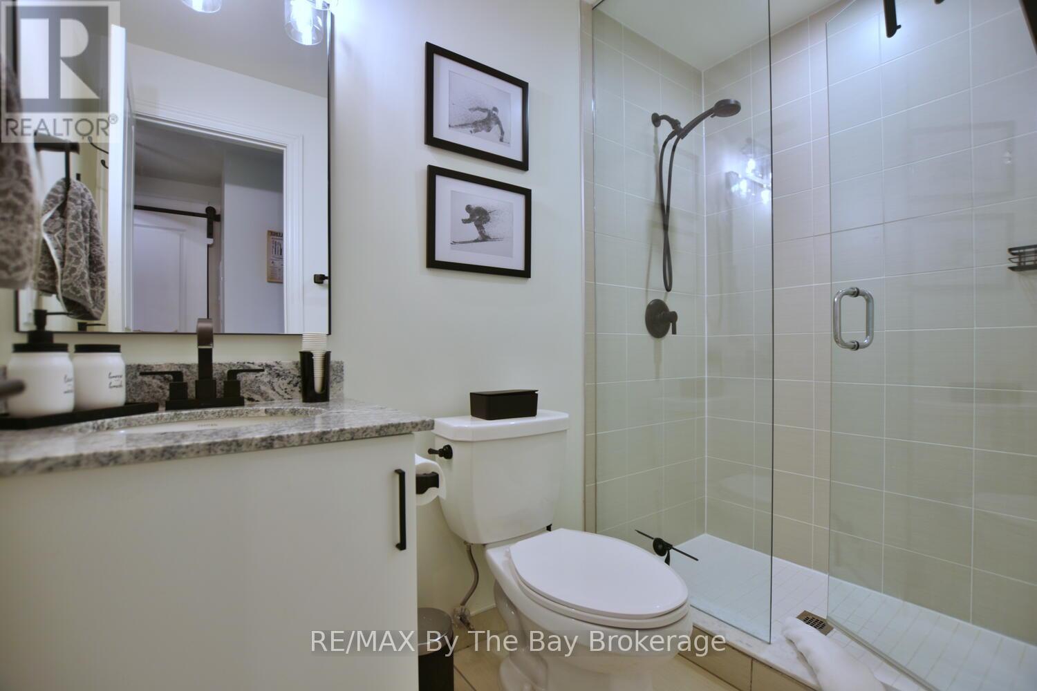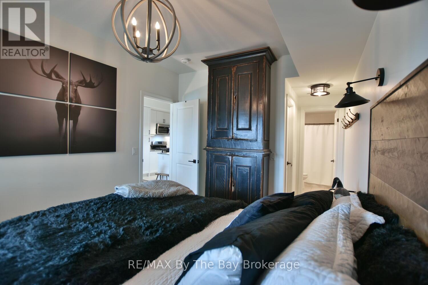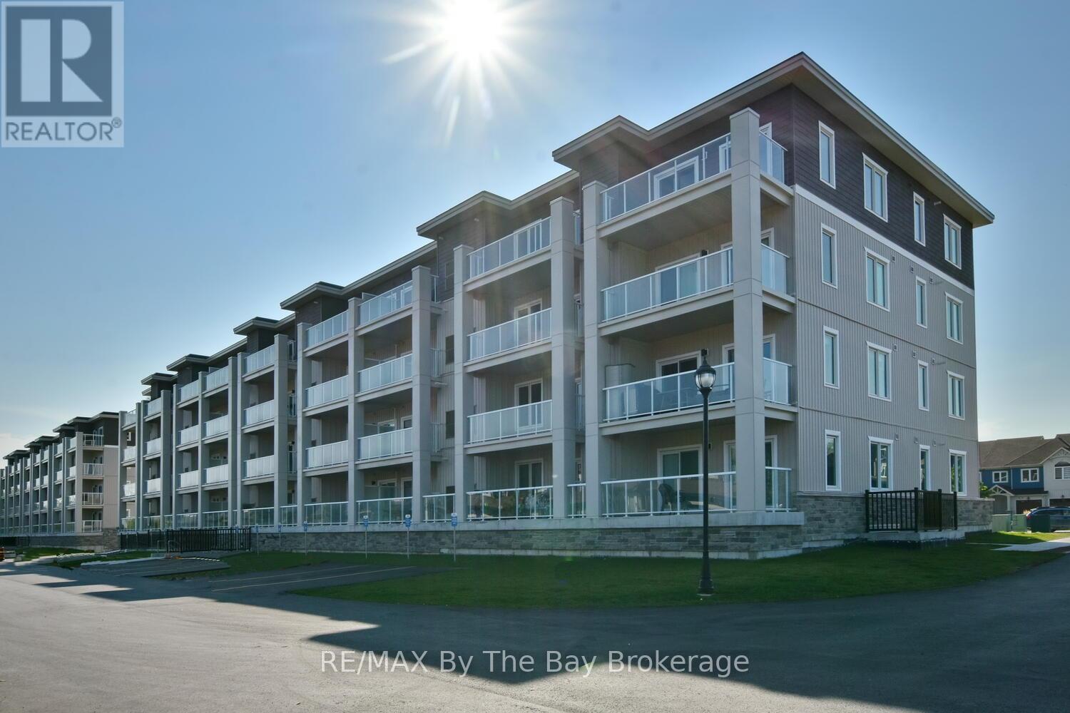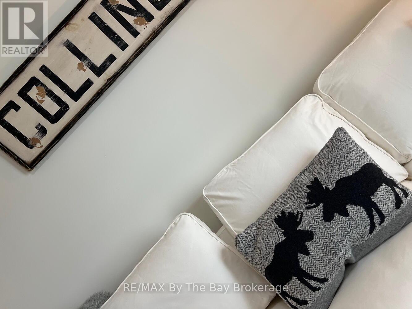 Welcome to Maintenance-Free Condo Living in the Heart of Collingwood. Discover the charm of Collingwood's sought-after Blue Fairway community with this beautifully appointed 2-bedroom, 2-bathroom condo. Perfectly situated just steps from the stunning Cranberry Golf Course, this condo offers the ultimate blend of luxury, comfort, and convenience. Step inside to an open-concept layout designed for modern living complete with beautiful upgraded lighting, barn doors and window coverings. The stylish upgraded kitchen features a large island, stainless steel appliances, accent lighting and custom cabinetry with updated hardware which is ideal for casual meals or entertaining guests. The bright living room with its cozy fireplace and dining area flows seamlessly together, creating a warm and inviting space. Both bedrooms are generously sized, and the spa-inspired bathrooms offer a touch of everyday indulgence. Extend your living outdoors on the spacious patio with serene distant views of the golf course and Blue Mountain in the distance. Practical touches include elevator access for easy grocery trips, underground parking, and a convenient storage locker. Residents enjoy exclusive access to the outdoor pool and recreation centre, making this the perfect four-season destination. Located close to restaurants, shopping, biking trails, golf, and skiing, this condo places the best of Collingwood right at your doorstep. (id:64974)