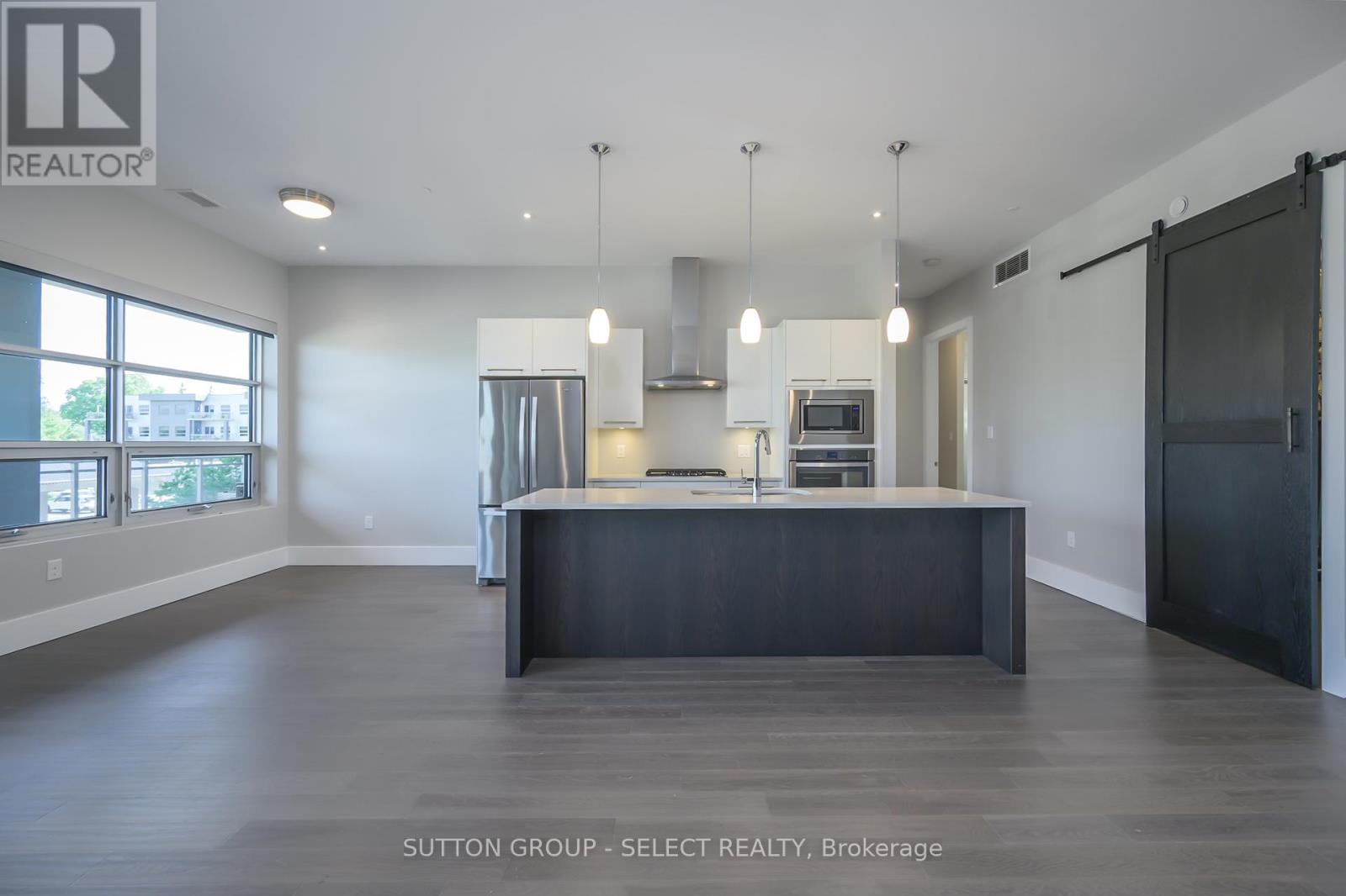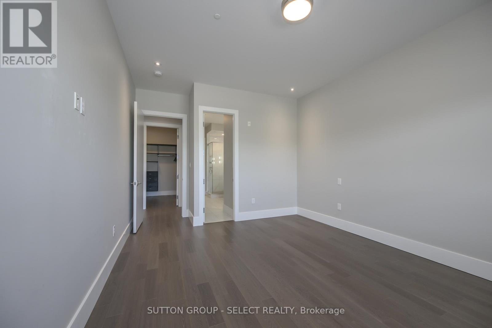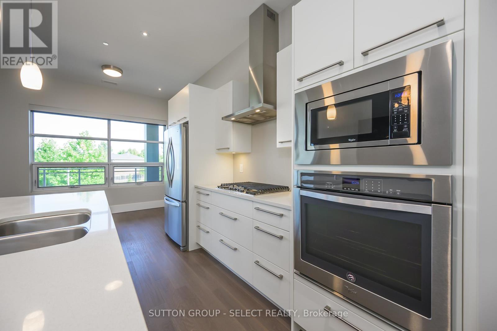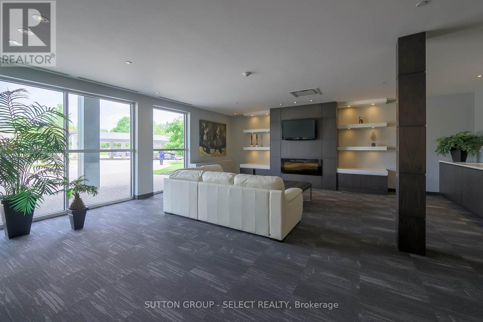 Perched in a quiet Richmond Hill cul-de-sac at North Point Lofts, this boutique high-rise offers 1950 sq. ft. of elevated living with the privacy of a residential setting and the convenience of exceptional proximity to LHSC, Western University, the shops and dining of Masonville Mall with an impressive Walk Score of 84, meaning most daily errands can be accomplished on foot. Inside, soaring 10-foot ceilings and expansive windows fill the open-concept interior with natural light. This residence claims the building's largest balcony, a remarkable 550 sq. ft., glass-panel enclosed with a BBQ hookup creating a seamless extension of your living space for entertaining or private outdoor retreat. The solid wood double-door entry opens to a living room anchored by a striking floor-to-ceiling tile-surround gas fireplace, complemented by rich hardwood flooring. The kitchen blends style and function with stainless steel appliances, marble surfaces, sleek white cabinetry, pendant lighting, and an island with seating. Two private bedroom suites each offer a spa-inspired ensuite with marble surfaces and custom-built closets. A discreet laundry area is tucked behind a sliding barn door, offering additional built-in storage, while a stylish powder room serves guests. For security and peace of mind, a multi-camera system provides real-time views of the entry, lobby, and more directly from your unit. One underground parking space and a storage locker in the temperature-controlled garage complete this rare offering in one of London's most desirable addresses. (id:64974)