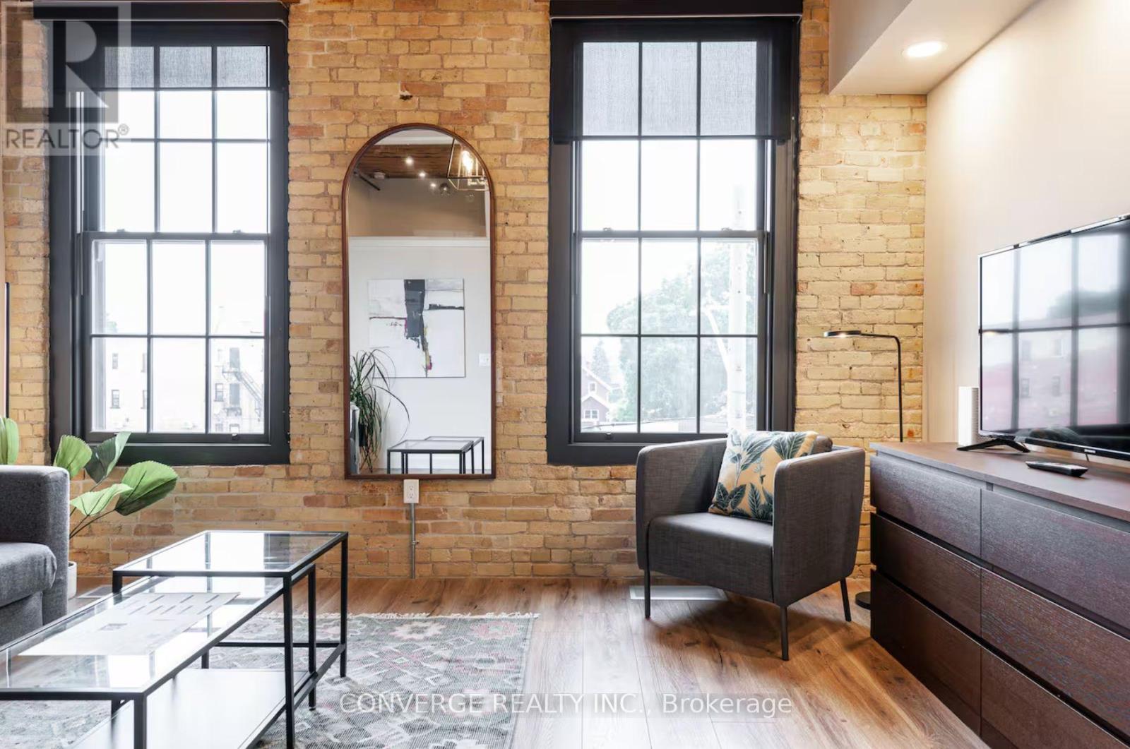 The property at 245 Downie Street, Unit 206, Stratford, Ontario N5A 1X5 is a charming 1-bedroom, 1-bathroom condominium located within the historic Bradshaw Lofts building. This unique residence offers approximately 460 square feet of thoughtfully designed living space, featuring high ceilings, exposed brick and beam construction, and hardwood flooring that create a warm and character-rich atmosphere.Situated in the heart of Stratford, this property provides exceptional walkability to the city's vibrant downtown core. Residents can enjoy easy access to restaurants, cafés, boutique shopping, theatres, and cultural attractions, including the renowned Stratford Festival. Nearby parks, libraries, and arts centres further enhance the lifestyle appeal of this central location.Public transit is readily accessible, and major routes connect conveniently to surrounding communities. The area offers a blend of heritage charm and modern convenience, making it well suited for professionals, downsizers, or investors seeking short-term rental potential in a high-demand location.This well-positioned condominium combines historic character with urban accessibility, offering an ideal opportunity for those seeking a low-maintenance home in one of Stratford's most desirable and culturally rich neighbourhoods. (id:64974)