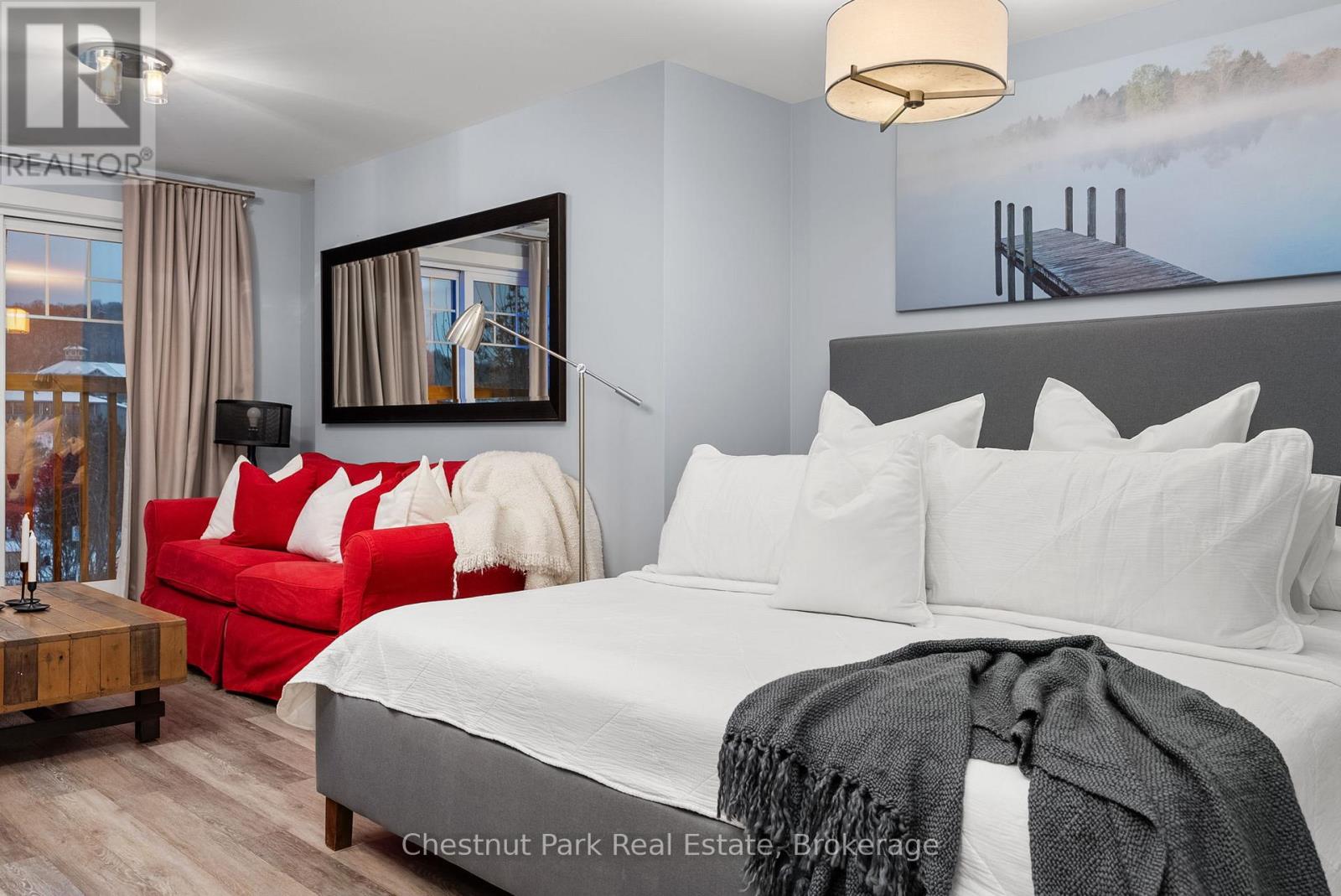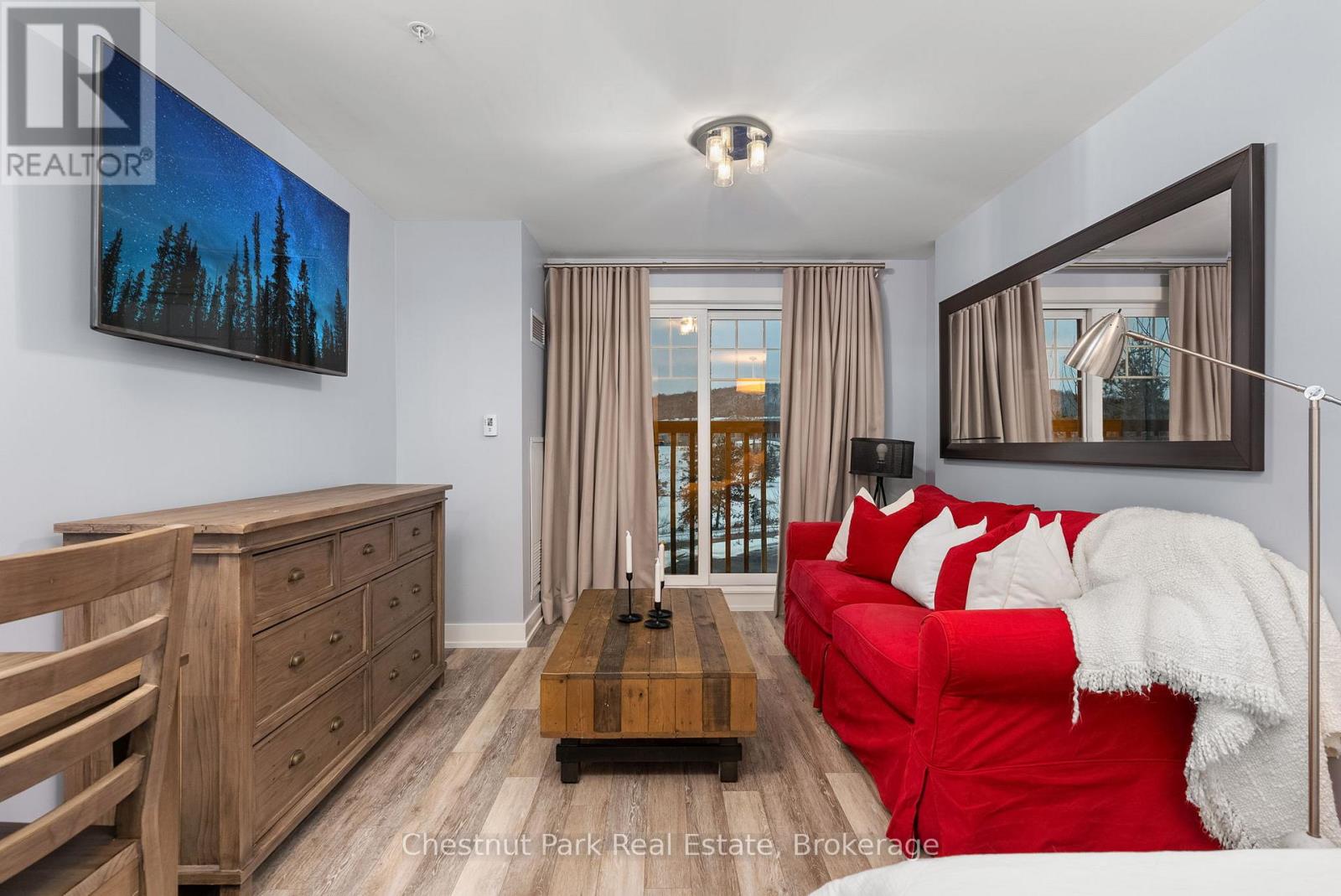 Welcome to effortless condo living at Lakeside Lodge at Deerhurst Resort. Unit 206 is a turnkey bachelor suite, built in 2019, offering a stylish, low-maintenance retreat designed to be enjoyed in every season. Whether you are a first-time buyer, investor, or looking for your own Muskoka escape, this unit offers flexibility, ease, and long-term value. Thoughtfully designed and move-in ready, it provides the option to generate income when not in personal use. While not currently enrolled in the rental program, the opportunity remains-allowing you to enjoy the property now while keeping future income potential open. Residents enjoy access to an in-building gym, laundry facilities, welcoming common areas, an outdoor pool, and waterfront access to Peninsula Lake. With Deerhurst Resort's extensive amenities just steps away and the shops and restaurants of Huntsville a short drive, everything you need is within easy reach. Monthly condo fees of $322.92 include all utilities and associated costs, with hydro as the only additional expense-making ownership simple and predictable. From lake days and golf in the warmer months to skiing, snowshoeing, and cross-country trails in the winter, this location offers something to enjoy year-round. With on-site trails, nearby golf courses, proximity to Hidden Valley Ski Club, and surrounding provincial parks, it's a true four-season destination. Unit 206 at Lakeside Lodge is a Muskoka opportunity-whether you're investing, escaping the city, or creating a place to return to, year after year. (id:64974)