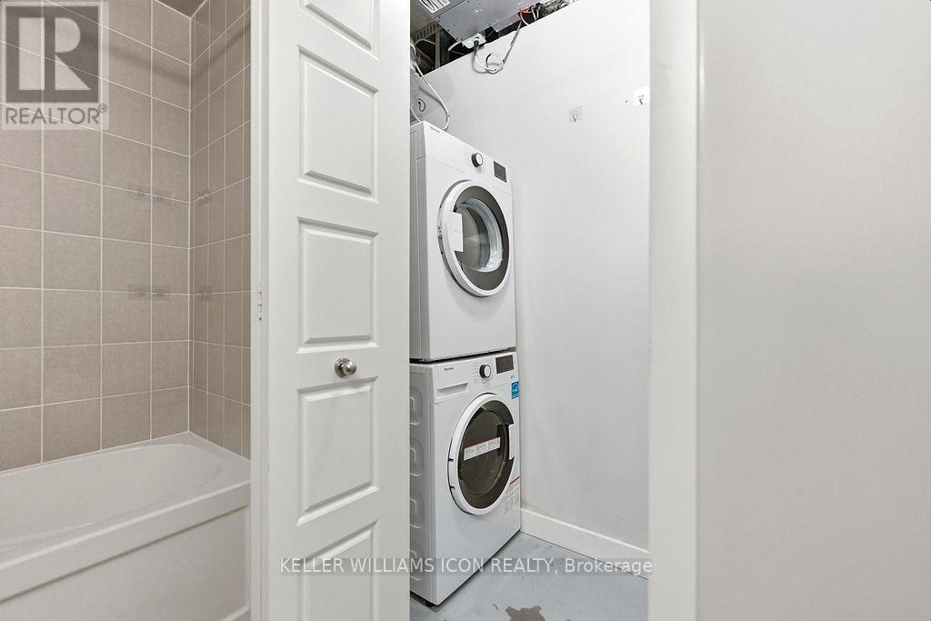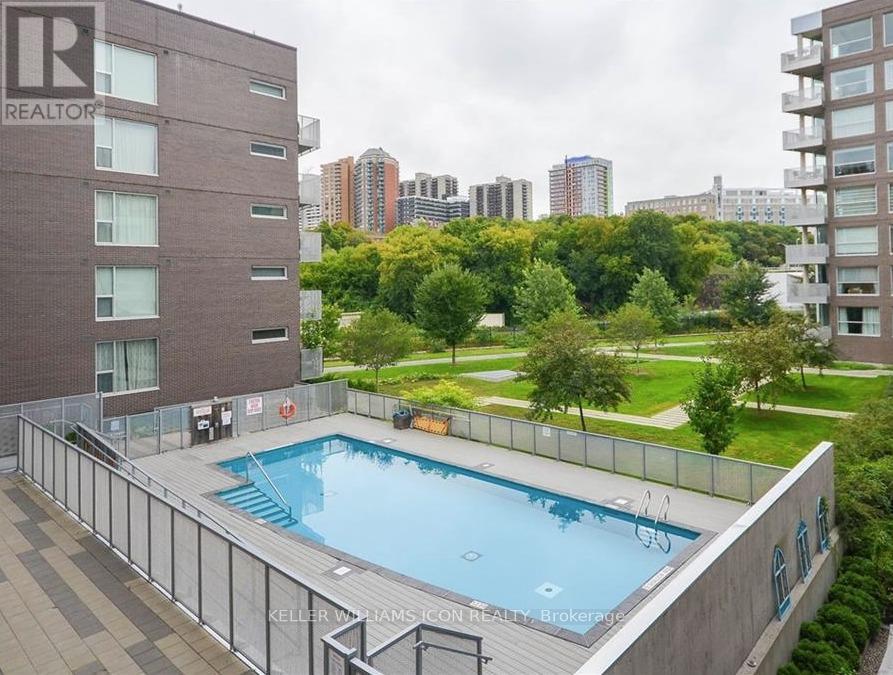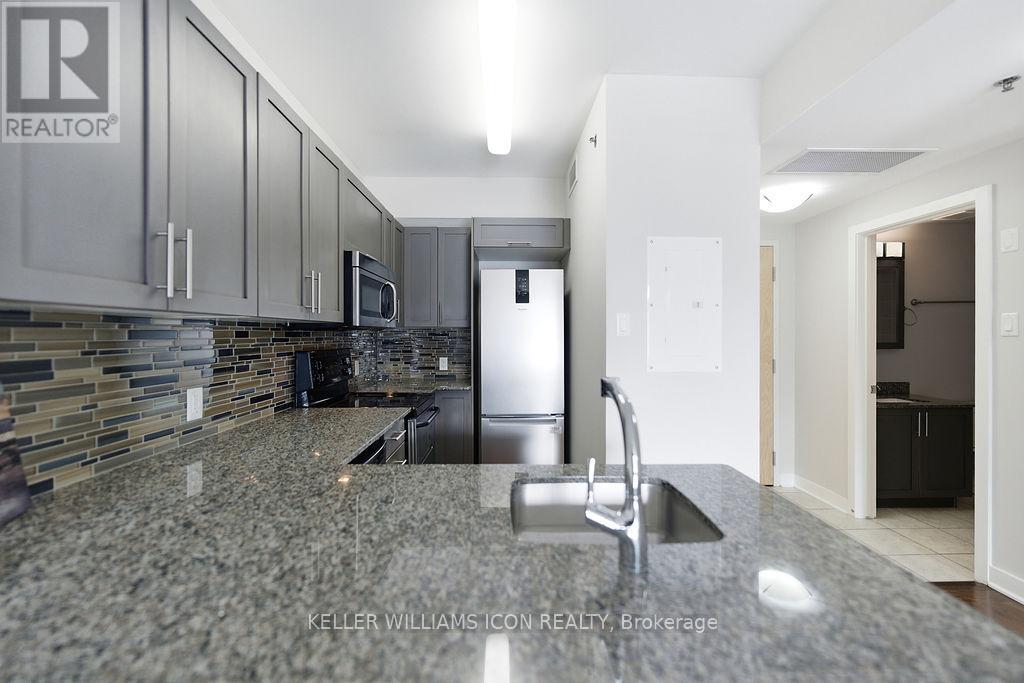 Welcome to Unit 206 at 300 Lett Street, a beautifully maintained "Lily" model condo offering approximately 613 sq. ft. of modern, efficient living in the heart of LeBreton Flats. This bright 1-bedroom, 1-bathroom suite features an open-concept layout designed for comfort and functionality-ideal for professionals, first-time buyers, downsizers, or investors. The upgraded kitchen showcases granite countertops, a breakfast bar, stainless steel appliances, and enhanced cabinetry, flowing seamlessly into the sun-filled living and dining area with floor-to-ceiling windows and access to a private balcony. Hardwood flooring and fresh paint add to the move-in-ready appeal. The spacious bedroom offers generous closet space and large windows, while the stylish bathroom features a quartz-topped vanity, a deep tub, and conveniently includes in-suite laundry. This LEED-certified building offers premium amenities including a rooftop terrace, outdoor pool with change rooms, a fully equipped fitness centre, and a party room with a kitchen. Unbeatable location just steps to Ottawa River pathways, parks, LRT, downtown, Parliament Hill, and the vibrant communities of Little Italy, Chinatown, and Hintonburg. (id:64974)