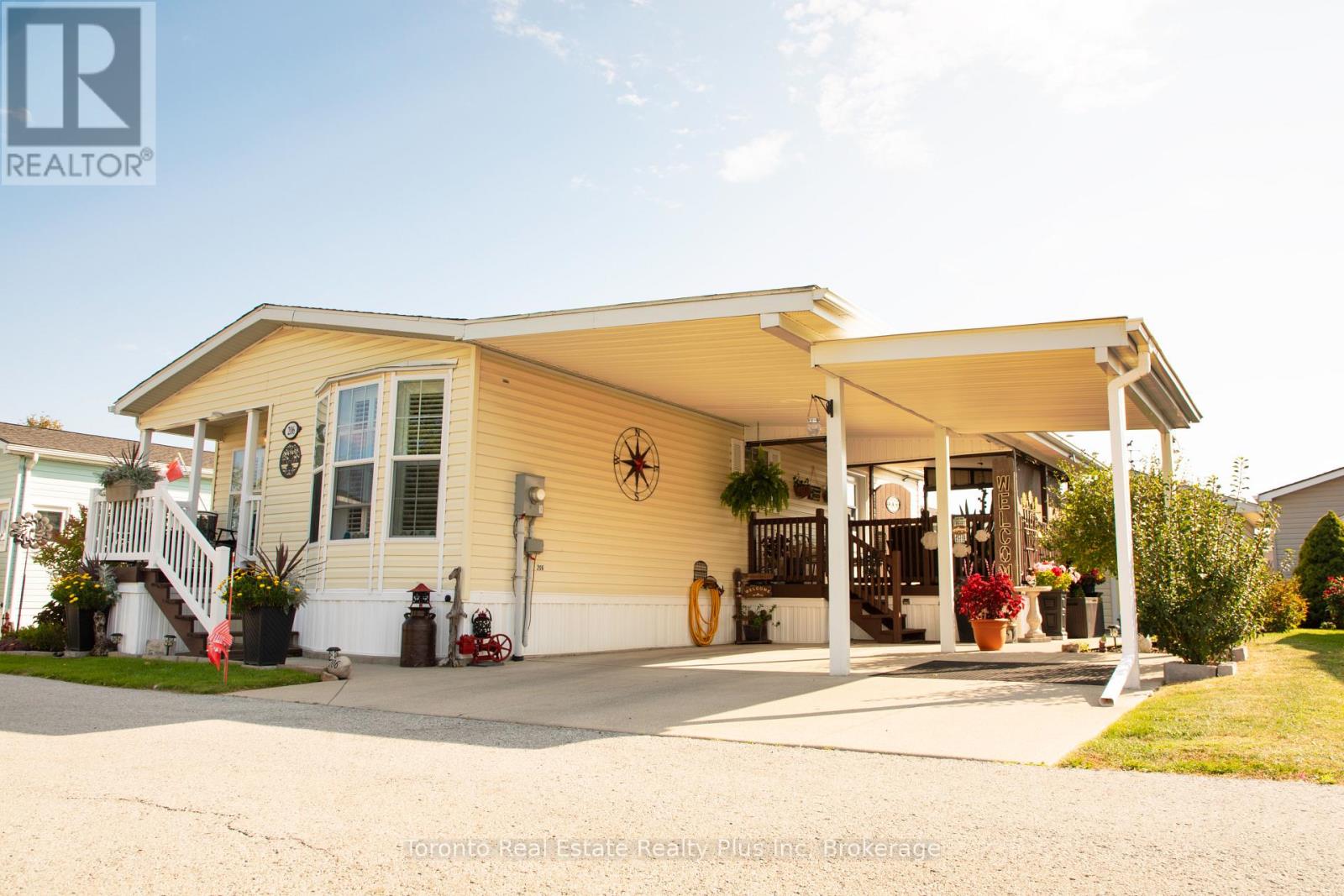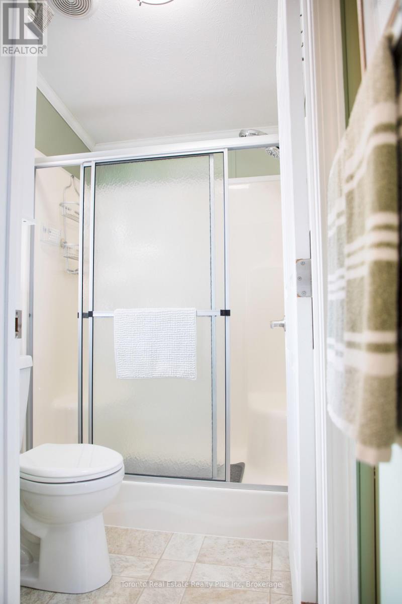 Welcome to 20603022 Townline Rd (Trillium Trail) - a beautiful updated 2-bedroom, 2-bath bungalow in the sought-after Parkbridge Black Creek Adult Lifestyle Community. This move-in ready home offers a concrete double driveway, carport, covered deck with back entrance, and a large shed on a Concrete Slab. The drive way was originally configured to accommodate two vehicles, including a pickup truck: the current owners later added an extended carport to house a golf cart, which can easily be removed if additional paring space is desired. Inside you'll find newer floors, California Shutters, and a bright open layout for easy living. The primary suite features a walk-in closet and ensuite, while the guest bedroom enjoys it own 4-piece bath. Recent upgrades include furnace (2022) owned electric hot water tank (6 yrs) roof (2022) and shed rood (4 yrs). Living here means more than just a home - it's a lifestyle. Enjoy a secure gated community with indoor and outdoor pools, sauna, library, tennis courts, community hall and over 20 social activities designed for active retirement living. Monthly Fees: Land Lease $825.00 + Taxes $222.58 = $1,047.68. (id:64974)