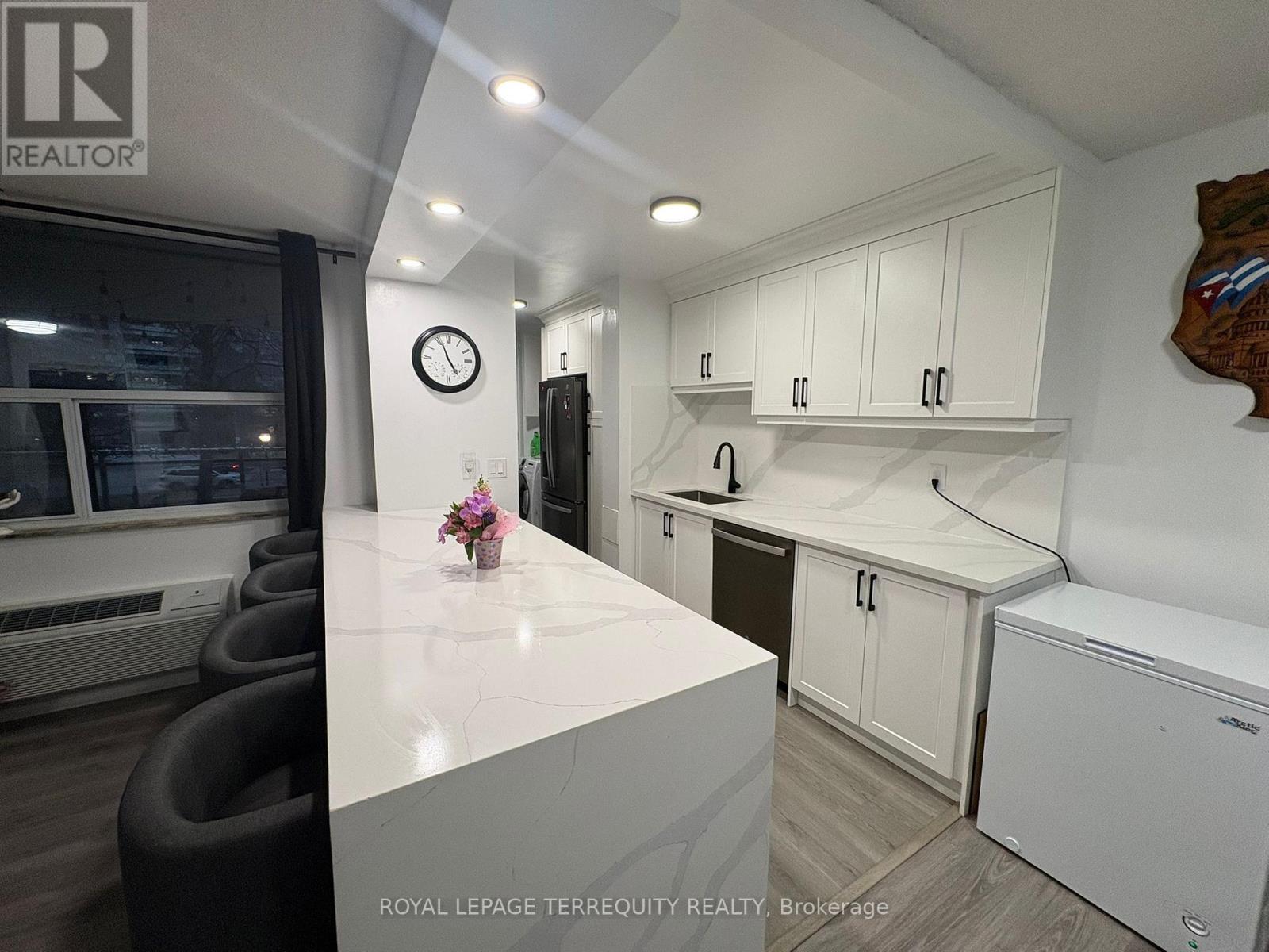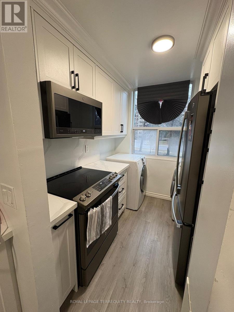 Clarkson Village Living at Its Finest. Step into one of the largest suites in the building-an impressive 1,111 sq. ft. of thoughtfully designed living space. Ideal for first-time buyers ready to grow or downsizers unwilling to compromise, this elegant 3-bedroom, 2-bath condo blends comfort, style, and convenience in one of South Mississauga's most desirable communities. The fully renovated open-concept kitchen (December 2024) is the heart of the home, featuring a massive island perfect for family gatherings and effortless entertaining. The spacious primary retreat offers a private 4-piece ensuite, while the additional bedrooms provide flexibility for guests, a home office, or a growing family. Enjoy in-suite laundry, a covered balcony where BBQs are permitted year-round, and unbeatable walkability-steps to transit, a short stroll to Clarkson GO, and surrounded by cafés, parks, and everyday amenities. Residents enjoy outstanding building features, including: Fitness center, Outdoor swimming pool, Tennis court, Ping pong room, Party room, Children's playground and Fenced, leash-free pet park. A rare opportunity to experience space, comfort, and community in the heart of Clarkson Village. Plenty of extra parking for your second vehicle. Maintenance fee includes Cable TV and Internet as well. (id:64974)